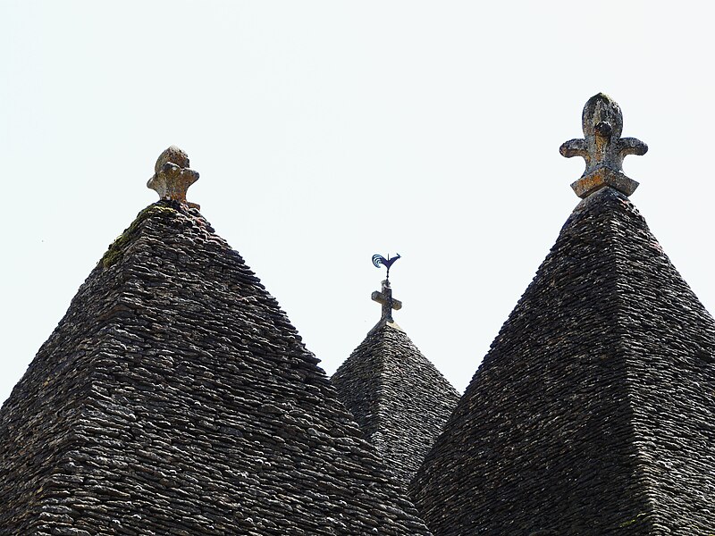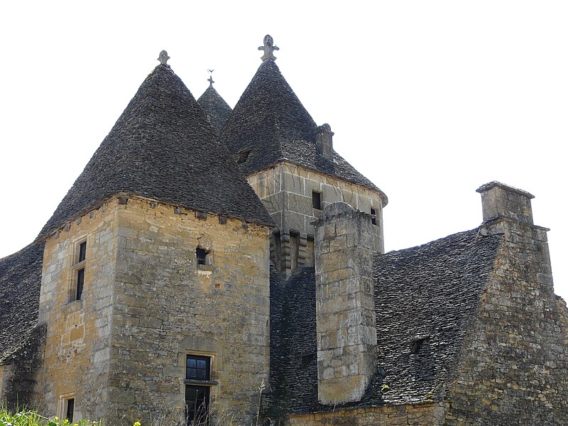 Les toitures sont entièrement couvertes de lauzes ; leur restauration a été réalisée par un artisan dont le savoir‑faire figure à l'Inventaire du patrimoine culturel immatériel en France. Des ressources iconographiques et des notices sont disponibles, notamment sur Wikimedia Commons et dans les listes consacrées aux châteaux et aux monuments historiques de la Dordogne.