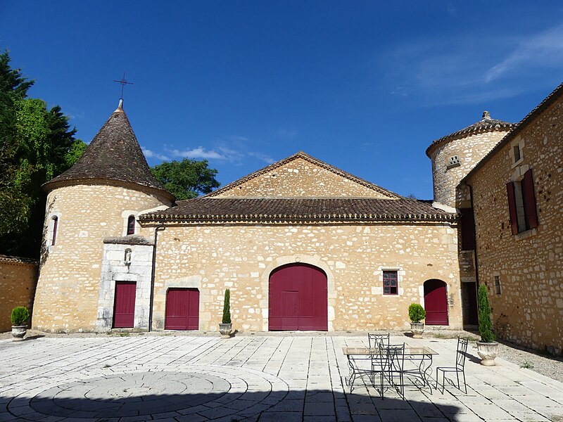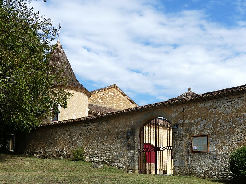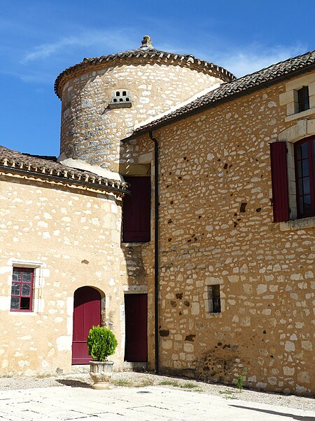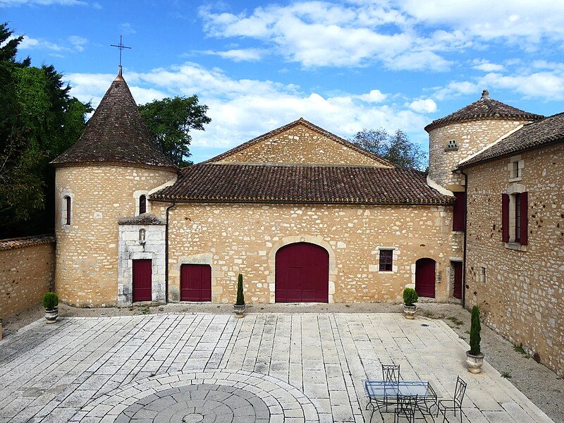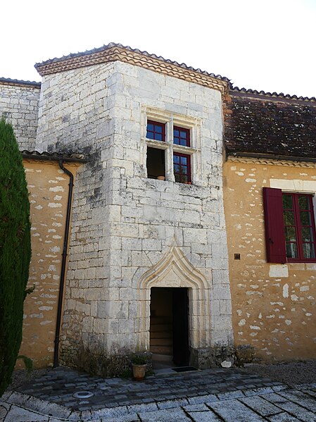 Le château Saint-Germain, situé à Gaugeac en Dordogne, se présente comme un fortin avancé du château de Biron, chargé de contrôler la circulation dans la vallée étroite du Dropt et le débouché d’un vallon venu du nord du plateau. Son plan ancien est aujourd’hui largement noyé sous des constructions des XVIIIe et XIXe siècles, mais une cour intérieure carrée subsiste, bordée au nord et à l’est par des bâtiments d’habitation et d’exploitation agricoles. Deux tours ont été élevées aux extrémités nord, l’une aménagée en pigeonnier, l’autre en chapelle, tandis que l’ouest est fermé par un grand mur de clôture et que le côté sud est occupé par le corps de logis principal flanqué de deux tours. Sur la façade nord, une tour hexagonale décapitée, englobée dans une construction plus récente, renferme un escalier à vis donnant accès à l’étage ; la petite tour octogonale intérieure est couverte par une coupole.