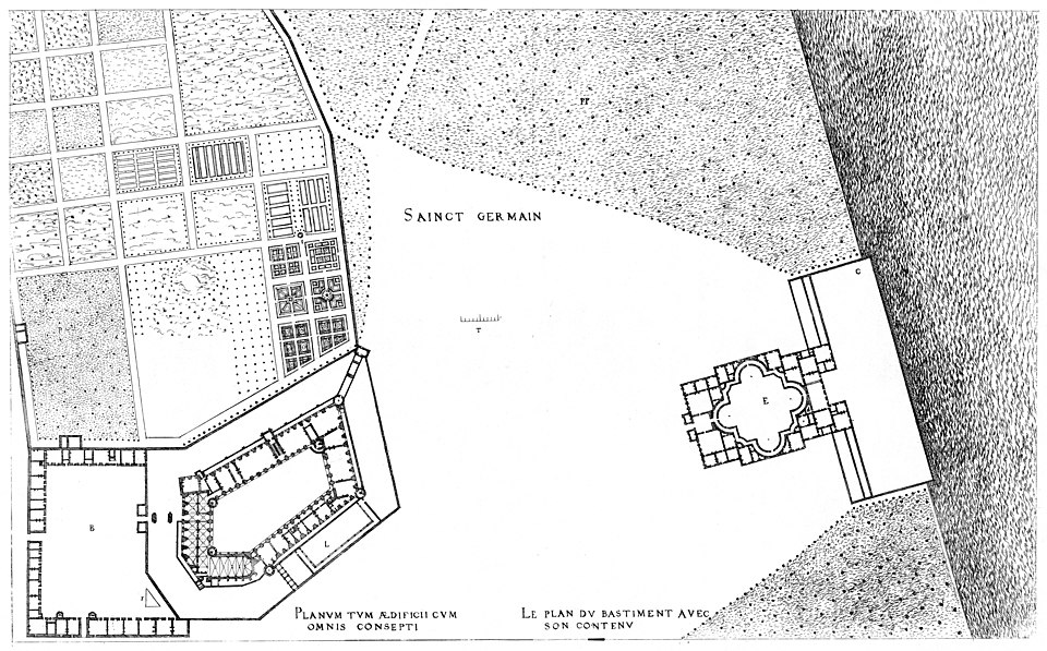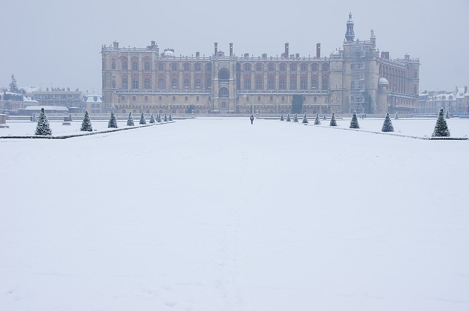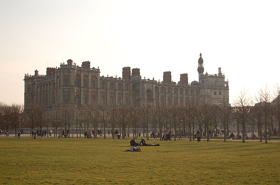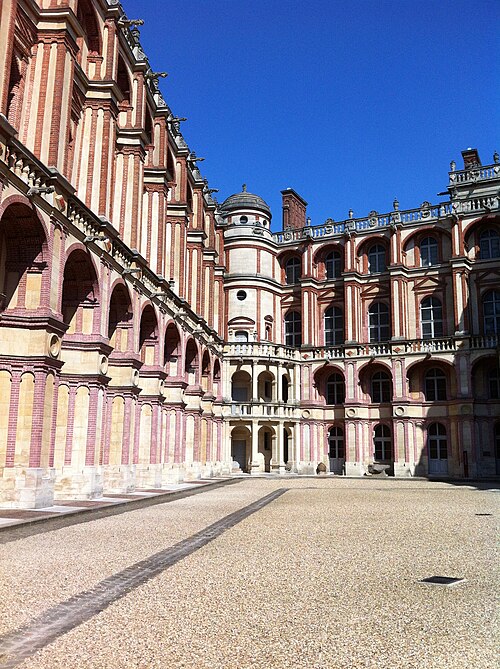 Le château de Saint-Germain-en-Laye, surnommé « Château Vieux » en opposition au Château Neuf, est une ancienne résidence des rois de France située au centre de Saint-Germain-en-Laye (Yvelines) et abritant aujourd'hui le Musée d'archéologie nationale. À l'origine du site se trouve, au début du XIe siècle, la fondation par le roi Robert le Pieux d'une église consacrée à saint Vincent et à saint Germain de Paris, installée dans la forêt de Laye sur un promontoire dominant la Seine. Cette église devint prieuré sous l'autorité d'abord de l'évêque de Paris et du chapitre Notre-Dame, puis de l'abbaye Notre-Dame de Coulombs. Vers 1124, Louis VI le Gros fit édifier en bois un palatium sur l'emplacement de la cour actuelle ; Philippe Auguste y substitua une tour-logis en pierre et des fortifications. À la fin du XIIe siècle, après un crime local, Philippe Auguste prit des mesures sévères à l'encontre de certains Juifs, épisode attesté par les sources. Saint Louis fit agrandir le château et fit construire, vraisemblablement sous la direction de Pierre de Montreuil, une chapelle castrale inaugurée en 1238, qui préfigure la Sainte-Chapelle de Paris. En 1346, lors de la chevauchée d'Édouard III, le prieuré et le château furent pillés et incendiés, seule la chapelle et la tour-logis échappant à la destruction ; Charles V fit ensuite reconstruire le donjon et restaurer la chapelle sous la conduite de Raymond du Temple. Après diverses vicissitudes, notamment une tempête en 1390 et une occupation anglaise de 1417 à 1440, le château redevint une résidence royale durable. Avec François Ier le site prit un nouvel essor : le roi épousa Claude de France dans la chapelle en 1514, et en 1539 il confia à Pierre Chambiges la transformation du château dans le style Renaissance qui caractérise encore l'édifice restauré au XIXe siècle. Le château actuel englobe des éléments plus anciens, comme le donjon de Louis VI et la Sainte-Chapelle élevée sous Saint Louis. Au XVIe siècle débuta la construction du Château Neuf, voulue sous Henri II et conduite par Philibert Delorme ; les travaux commencés en 1559 s'achèveront sous Henri IV. Plusieurs souverains et princes naquirent au château, qui fut le cadre d'événements historiques tels que le coup de Jarnac en 1547 et la signature de nombreux traités et édits. Louis XIV séjourna fréquemment à Saint-Germain entre 1661 et 1682 : il fit remanier les appartements par Le Brun et Le Vau, et confia à André Le Nôtre l'aménagement des jardins à la française et la création de la Grande Terrasse. Jules Hardouin-Mansart mena à partir de 1680 des travaux d'agrandissement qui donnèrent au château ses pavillons d'angle tardifs, tandis que la cour d'Angleterre en exil s'installa plus tard dans l'enceinte. Transformé sous l'Empire en école de cavalerie, puis employé comme pénitencier militaire de 1836 à 1855, le château connut enfin une reconversion muséale sous l'égide de Napoléon III, qui fit créer en 1862 le Musée des Antiquités celtiques et gallo-romaines. Classé monument historique et restauré par Eugène Millet, le château vit ses premières salles de musée inaugurées en 1867 ; la restauration chercha à restituer l'aspect Renaissance en supprimant des adjonctions postérieures. Le plan du château reprend le tracé de Charles V autour d'une cour trapézoïdale ; les ailes qui bordent la cour portent les dénominations traditionnelles d'aile du roi (nord), d'aile de la reine (est), d'aile des enfants du roi (sud-est), d'aile de la chapelle (sud-ouest) et d'aile de la salle des fêtes (ouest). La chapelle Saint-Louis, chef-d'œuvre du gothique rayonnant, se caractérise par une nef à vaisseau unique, de très hautes verrières, une grande rose occidentale et des ogives retombant sur des colonnettes ; sa construction et son rôle liturgique sont attestés par l'acte de 1238. La chapelle conserve une collection lapidaire comprenant des plaques gravées et des fragments de sarcophages ainsi que d'autres éléments médiévaux. La grande salle de bal, située dans l'aile ouest, achevée sous Henri II après des débuts sous François Ier, possède une vaste cheminée ornée de la salamandre de François Ier ; Louis XIV y fit établir une machinerie scénique et la salle accueillit de nombreuses représentations avant d'abriter aujourd'hui la salle d'archéologie comparée. Les jardins, conçus par André Le Nôtre à partir de 1663, comprennent de vastes parterres et la Grande Terrasse dominée par un panorama sur la vallée de la Seine, complétée par des aménagements successifs et des transformations au cours des siècles. Le grand parterre du Château-Vieux, remarquable par son étendue et ses fontaines, s'ouvrait autrefois vers la forêt par une perspective prolongée, tandis que le secteur du Château-Neuf s'organisait autour de terrasses monumentales et d'une vaste mise en perspective. Au XIXe siècle, un jardin paysager de style anglais fut aménagé par Alexandre Prosper Loaisel de Tréogate et une balustrade fut élevée le long de la Grande Terrasse sur projet de l'architecte des domaines. Les terrasses et les aménagements paysagers subsistent aujourd'hui, le domaine bénéficiant du label « Jardin remarquable » et conservant des traces de son rôle historique et paysager, tandis que le Château Neuf a en grande partie disparu et que ses terrasses ont été intégrées au tissu urbain.