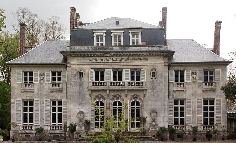 Le domaine de Saint-Gratien, situé sur la commune éponyme dans la Somme au nord‑est d'Amiens, comprend un château, des communs, une chapelle et un parc d'environ huit hectares. Le château fut d'abord le siège d'une seigneurie portant le même nom, puis appartint aux familles échevinales amiénoises May (XVe siècle) et Saint‑Delis (XVIe siècle), avant de passer aux Hirzel, protestants d'origine suisse. En 1778 Salomon d'Hirzel vendit le domaine à Jean‑Baptiste Jourdain de Thieulloy, issu d'une famille amiénoise anoblie en 1735. En 1786 Jourdain chargea l'ingénieur‑architecte amiénois Jean Rousseau de reconstruire le corps de logis ; l'ancienne demeure du XVIIe siècle fut partiellement conservée pour les communs. Le nouveau corps de logis, une « folie » de style néo‑classique, fut rapidement élevé et achevé en 1789 ; il est construit en craie extraite des carrières de Bavelincourt. Les sculptures des façades, d'après les dessins de Rousseau, furent exécutées par le sculpteur François‑Joseph Gruau ; elles étaient presque achevées en 1788 et furent payées 760 livres. La chapelle fut inaugurée en 1793. Depuis la fin du XVIIIe siècle, les modifications ont été limitées : le parc à la française d'origine fut transformé en parc à l'anglaise en 1826, ne conservant qu'une charmille, et en 1860 la partie supérieure du pigeonnier fut démolie puis reconstruite en briques ; une galerie, établie entre le corps de logis et la cuisine dans la cour des communs, subsista jusqu'en 1948. Le château est resté dans la descendance de son constructeur. Le 31 mai 1918, le général Monash y installa le quartier général de la 3e division australienne en vue de la bataille du Hamel. L'ensemble du château, les façades et toitures des communs ainsi que le parc sont protégés au titre des monuments historiques par arrêté du 21 décembre 1954. Architectoniquement, le bâtiment présente un plan rectangulaire avec un pavillon central légèrement saillant, bordé de chaque côté par des ailes plus basses ; il s'élève sur trois niveaux couronnés d'une toiture à la Mansart et le haut du pavillon est orné d'un entablement à triglyphes. Le décor sculpté des façades associe vases, feuillage et sphinx, œuvres de Gruau d'après Rousseau. À l'intérieur, la grande salle à manger, éclairée au nord par de larges fenêtres, est séparée par des colonnes d'ordre ionique de deux hémicycles latéraux ornés de vases logés dans des niches ; le grand salon conserve des lambris peints et sculptés et un plafond à sujets mythologiques évoquant le lever du jour. Le château a gardé son mobilier d'origine. Parmi les dépendances proches, un colombier et d'autres bâtiments en brique et pierre datent du XVIIe siècle. La chapelle, située près de l'entrée du parc et achevée en 1793, conserve un autel de style néoclassique, un décor en relief et des pierres tombales qui pavent le sol. Le parc, agrandi au XIXe siècle, offre devant le château une pelouse débouchant sur une prairie bordée de chênes pluriséculaires, vestiges du bois des Glands déboisé pour la construction du domaine, et à l'arrière un vaste parc arboré qui, en son extrémité, permet d'apercevoir le mémorial national australien de Villers‑Bretonneux. Parmi les sujets remarquables plantés vers 1825 figurent des châtaigniers, des chênes, des marronniers, un tulipier de Virginie et des pins noirs d'Autriche ; la charmille du XVIIIe siècle se réduit aujourd'hui à une unique allée côté nord.