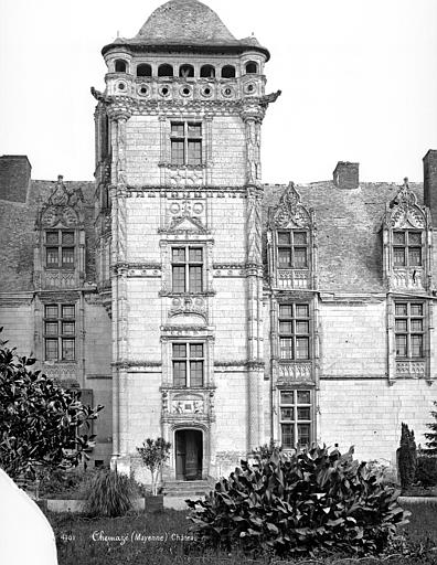 Le château de Saint-Ouen, édifice de style Louis XII situé à Chemazé (Mayenne), a d’abord été mentionné comme une chapelle dépendant de l’abbaye de la Roë et confirmé en 1184 sous l’appellation Capella Sancti Audoeni apud Chamazeium ; d’autres mentions ultérieures donnent diverses dénominations du lieu en 1505, 1522, 1584 et 1645, qui témoignent de son évolution entre chapelie, terre et seigneurie. À la fin du XIIe siècle une chapelle occupait l’emplacement du château ; elle fut restaurée au XVe siècle. Après la mort de l’abbé Yves de Scépeaux, les chanoines réguliers nommèrent abbé Guy Le Clerc de Coulaines (1493-1523), qui, voulant y établir sa résidence, conclut en 1505 des arrangements avec l’abbaye lui donnant la jouissance du domaine. Il entreprit alors la construction d’un manoir abbatial, d’abord modeste, auquel il ajouta au cours des travaux une tour carrée d’un luxe et d’une ampleur qui dominent l’ensemble ; selon Angot, Simon Hayeneuve aurait pu en donner le dessin et en diriger l’exécution. La tour abrite un vaste escalier et se caractérise par un parti architectural soigné : les fenêtres ont été disposées au milieu du bandeau séparant les étages afin de ne pas être coupées par la rampe, et l’escalier se termine par une tourelle en encorbellement donnant accès à une terrasse ceinte d’une balustrade, vestige du belvédère primitif. Guy Le Clerc fit graver son chiffre dans l’ornementation, tandis que des motifs comme les roues, armes parlantes de l’abbaye de la Roë, et les armoiries de France et de Bretagne figurent dans la décoration, signe de son attachement à sa souveraine. L’intérieur du logis suit le même goût raffiné : l’une des chambres conserve une cheminée finement sculptée ornée du chiffre répété de l’abbé et une frise largement travaillée. Guy Le Clerc s’y fixa définitivement deux ans avant sa mort et y mourut ; ses successeurs apprécièrent aussi la résidence. Un vitrail daté de 1604, portant l’inscription Beata maria de Rota, atteste que le château restait encore visité au début du XVIIe siècle. Par la suite, lorsque les abbés furent étrangers à la région, Saint-Ouen fut délaissé, affermé puis vendu comme bien national le 14 mars 1791 pour 28 000 livres. Il devint ensuite la propriété du comte de Sèze, qui entreprit des réparations pour lui rendre son lustre. Un dessin du château figure parmi les mémoires adressés à l’Académie des inscriptions et belles-lettres en 1818, selon une note du cabinet Grille à la bibliothèque d’Angers. Bien que quelquefois qualifié de prieuré, Saint-Ouen n’a jamais été qu’une chapelle rattachée à la Roë ; aucun prieur n’y est attesté, tandis qu’un fief mouvant de Château-Gontier y était attaché jusqu’au XVIIe siècle. Le logis et la tour ont fait l’objet d’un classement au titre des monuments historiques le 13 décembre 1923, puis le pavillon nord et la chapelle ont été classés le 4 mai 1944.