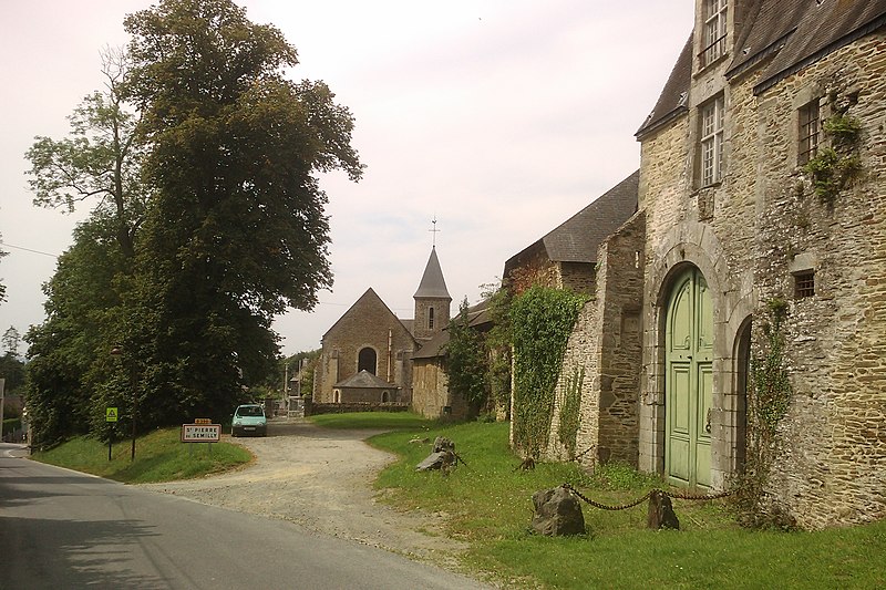 Le château de Saint-Pierre-de-Semilly, propriété privée non ouverte à la visite, se dresse à l'entrée du village de Saint-Pierre-de-Semilly, près de l'église paroissiale et à proximité de Saint-Lô, dans le département de la Manche en Normandie. Élevée au XVIe siècle, la demeure est inscrite au titre des monuments historiques par arrêté du 19 décembre 1944. Elle a été édifiée à côté des vestiges d'un ancien château vraisemblablement construit au XIe siècle et rasé après la guerre de Cent Ans. Jean de Semilly est probablement à l'origine de la première forteresse ; il signe en 1096, comme témoin, une charte d'Odon, évêque de Bayeux, en faveur du monastère Saint-Bénigne de Dijon. Plusieurs chartes royales datées de Semilly émanent des règnes d'Henri Ier Beauclerc, d'Henri II Plantagenêt et de Richard Cœur de Lion. Au milieu du XIIIe siècle, Saint Louis céda la seigneurie à titre de ferme perpétuelle à Charles de Parfouru. En 1330, le mariage de Jeanne de Parfouru, héritière de Richard, avec Jean III de Mathan transféra le domaine à la famille de Mathan, qui en reste propriétaire à ce jour. Le château Renaissance actuel a été construit en 1569 par Georges de Mathan, gouverneur de Saint-Lô, et son épouse Claude des Asses ; il a été remanié en 1766 et restauré après les dommages subis durant la Seconde Guerre mondiale. Architectoniquement, le château se présente comme un logis rectangulaire du XVIe siècle, coiffé d'une haute toiture en ardoise à quatre pans et percé de hautes lucarnes à fronton. Une tour octogonale occupe le fond de la cour, qui comprend des communs et un imposant pavillon d'entrée armorié percé de portes charretière et piétonne. Le bâtiment principal, orienté au sud, s'élève sur un entresol et compte deux étages ; sa toiture très pentue est surmontée de fortes souches de cheminées. Dans l'axe de la façade, un escalier mène à une terrasse à balustrade qui court sur toute la longueur du logis, tandis que la cour d'honneur, côté route, est fermée par une aile de communs en retour. Au nord, à l'intérieur de l'enceinte, une terrasse s'appuie sur l'ancien rempart et laisse place à une prairie et à un verger de pommiers. Les sources mentionnées comprennent un document émis par la DREAL de Basse-Normandie et des notices du patrimoine architectural, notamment la base Mérimée, qui fournissent des informations complémentaires.
