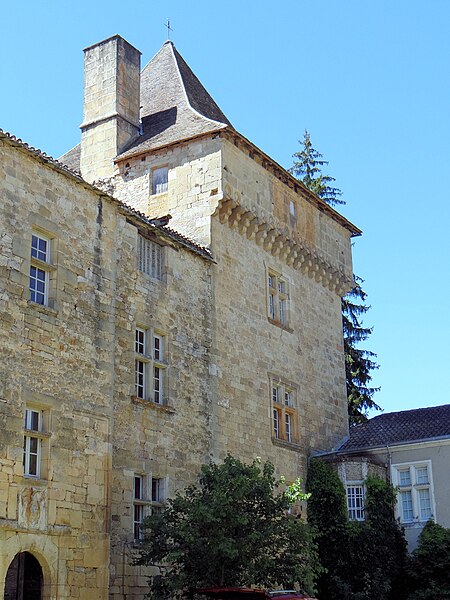 Le château de Saint-Pompon, implanté dans le village éponyme du Périgord noir, dans le sud-est de la Dordogne (Nouvelle-Aquitaine), est une ancienne commanderie de l'ordre de Saint-Jean de Jérusalem, attestée en 1269 sous le nom d'Hospotalis de Sancta Pomponia et anciennement appelée San Plainpon. Il présente une imposante tour carrée percée de mâchicoulis et couronnée d'un chemin de ronde remanié après la fin de la guerre de Cent Ans ; ce chemin de ronde repose sur des corbeaux ornés, et des sculptures en forme de trèfle se trouvent entre ces éléments. Un corps de logis du XVe siècle, pourvu de fenêtres à meneaux, est appuyé contre la tour. Dans la cour se voit un puits daté du XVIe siècle. Le château était relié à l'église du village par une poterne. Au XVe siècle la seigneurie appartenait à la famille Laroque (ou La Roque) de Saint-Pompont ; en 1464 Marguerite de La Roque épousa Jean II de Cugnac, et la seigneurie passa ensuite à la lignée des Cugnac, Jean III recevant une donation d'Hélie de La Roque en 1552. La famille de Cugnac est restée seigneur de Saint-Pompont jusqu'à la Révolution. En 1589, les protestants s'emparèrent du lieu où Marc de Cugnac était seigneur ; après leur installation dans l'église et leur expulsion par les Ligueurs, Geoffroy de Vivans revint, fit massacrer trente-cinq Ligueurs et brûla le château de Marc de Cugnac, à l'exception du donjon. Le château de Saint-Pompon fait l'objet d'une inscription au titre des monuments historiques depuis le 2 février 1948.