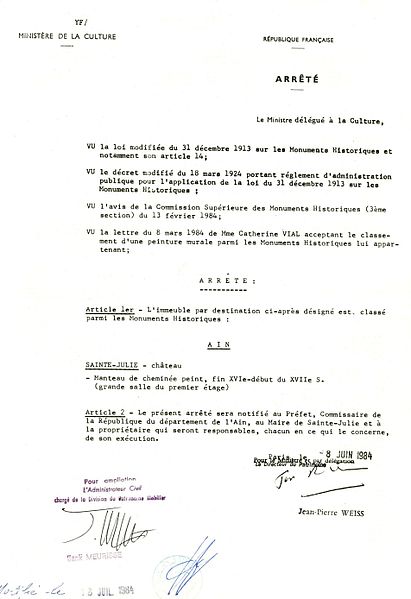 Le château de Sainte-Julie est une ancienne maison forte du XIIIe siècle, centre de la seigneurie de Sainte-Julie, située sur la commune de Sainte-Julie dans l'Ain (Auvergne-Rhône-Alpes). Il a été édifié par les sires de Coligny et passa aux La Tour du Pin par le mariage de Béatrix de Coligny avec Albert III. Le roi Jean et son fils Charles cédèrent la seigneurie au comte Amédée V de Savoie le 5 janvier 1354, qui l'inféoda à Guy de Torchefelon, lequel la vendit le 8 juin 1379 à Jean, seigneur de Crangeac et de Chazey. La terre connut ensuite plusieurs successions familiales (Crangeac, Varax) et fut donnée en 1462 à Philippe de Savoie, comte de Bresse. Par la suite elle appartint à André de Bignins, puis fut cédée le 4 février 1549 à Jacques de Savoie, qui l'intégra au marquisat de Saint-Sorlin (érigé en sa faveur en 1571); elle fut ensuite aliénée en 1579 à Béatrix Pacheco puis vendue en 1615 à Renaud de Cremeaux. Georges de Lyobard et sa descendance la conservèrent jusqu'à Prosper de Lyobard, qui la légua le 9 mars 1662 à René de Varanges; celui-ci la vendit le 24 août 1680 à André Balme, secrétaire honoraire au parlement de Metz, ennobli par lettres patentes en mars 1698, dont les armes figurent sur une peinture murale au-dessus de la cheminée. Sainte-Julie resta dans la famille Balme jusqu'à la vente du domaine par Charles-Auguste Balme en 1824 à Jean‑Marie Dupuis. L'ensemble des façades et des toitures, ainsi que la grande salle et l'oratoire du premier étage avec leurs peintures murales, font l'objet d'une inscription partielle au titre des monuments historiques par arrêté du 21 décembre 1984.