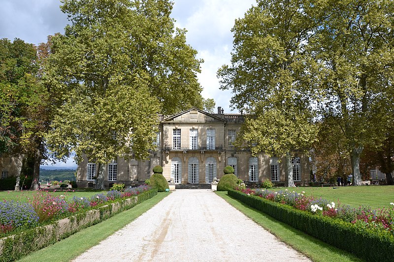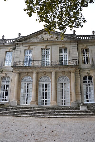 Les façades et toitures ; la cage d'escalier (cad. B 647) : classement par arrêté du 29 avril 1957 - Le château et ses dépendances en totalité, ainsi que le parc en totalité comprenant les terrasses, les murs de soutènement, les statues, les portails, les bassins, les fontaines, tout le système hydraulique et tous les autres éléments qui constituent le parc, y compris les parcelles qui entrent dans la composition d'origine notamment le potager et le fruitier (cad. ZD 25 à 28, 30 à 32, 36 à 40, 42 à 44) : inscription par arrêté du 30 juillet 2003