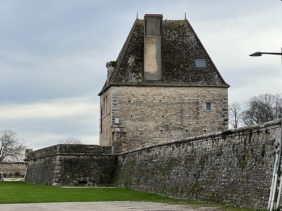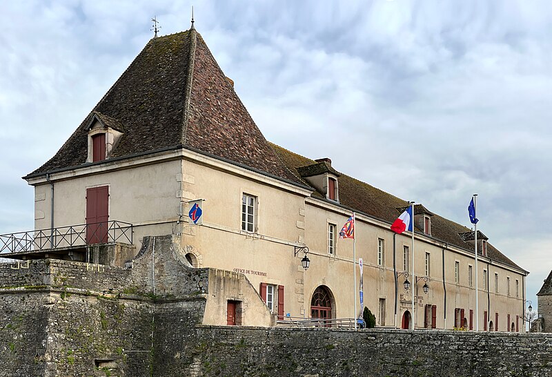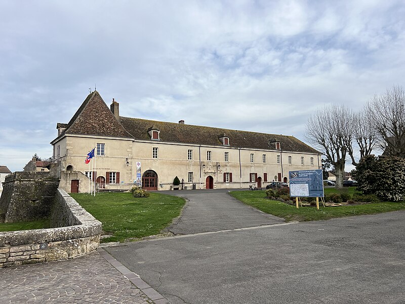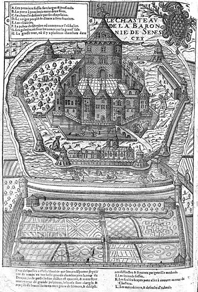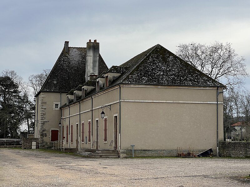 Le château de Sennecey-le-Grand, situé sur la commune du même nom en Saône-et-Loire, occupe un terrain plat au sud du bourg. Les vestiges des bâtiments sont inscrits au titre des monuments historiques depuis le 23 juin 1937 et l'esplanade est classée depuis le 12 avril 1938. Entouré autrefois de fossés, le château primitif avait un plan approximativement rectangulaire cantonné de tours circulaires. Au Xᵉ ou XIᵉ siècle, il se composait de bâtiments disposés autour d'une cour carrée, défendus par des tours rondes et un fossé large d'environ 15 mètres et profond de 7 mètres ; l'entrée, initialement orientée au sud-ouest, fut déplacée vers le nord au XVIᵉ siècle. Au XVe siècle des travaux de remaniement firent reconstruire ou consolider des tours, et deux grosses tours flanquaient alors la porte d'entrée ; ces dernières furent démolies au début du XIXᵉ siècle. Les guerres du XVe siècle causèrent d'importants dégâts et le château dut être relevé, notamment grâce au soutien financier du duc de Bourgogne ; les rénovations menées au cours du siècle s'achèvent autour de 1470. Au XVIᵉ siècle, les Bauffremont-Sennecey entreprirent une transformation profonde qui se termina en 1592 : percements de hautes fenêtres, réaménagement du grand corps de logis et élargissement de l'enceinte. Après le comblement des anciens fossés fut édifiée une vaste enceinte crénelée, cantonnée de bastions et entourée de douves en eau, englobant l'ancienne basse-cour et la chapelle ; la façade nord s'ouvrait par un pont de pierre menant à un corps de logis flanqué de pavillons coiffés de toits aiguës, ornés de statues de Jupiter, Vénus et Junon. Les façades étaient richement sculptées et l'intérieur comprenait des salles spacieuses, dont la « salle des Empereurs » ornée de toiles et d'une cheminée décorée, ainsi que des appartements d'apparat et des grands communs au rez-de-chaussée. La chapelle, située contre le « pavillon de Jupiter », avait été érigée en 1377 par Jean de Sennecey et restaurée au XVIᵉ siècle ; un document de 1113 mentionne déjà un chapelain de Sennecey, signe d'une présence religieuse antérieure. Le parc, prolongement du pont sud, était traversé d'avenues bordées d'ormes et de marronniers, agrémenté de parterres et d'une pièce d'eau circulaire, et faisait l'objet d'un entretien soigné. Aujourd'hui, il ne subsiste du grand ensemble que les quatre pavillons d'angle, les bases des murailles, une partie des douves, deux ponts de pierre et des communs, dont l'aile orientale abrite la mairie. Cette aile comporte une porte en plein cintre encadrée de pilastres cannelés et surmontée d'un entablement orné de bucranes, rosaces et triglyphes, couronné par un édicule à niche où figure la date de 1592 ; une porte similaire, ornée de médaillons, ouvre l'aile occidentale. Les pavillons nord, édifiés sur des bastions, conservent des chaînages d'angles, des bandeaux et des encadrements de baies en bossage troué, et l'un d'eux porte encore un cartouche aux armes des Bauffremont. Les armoiries des seigneurs successifs comprennent celles de Jean II de Toulongeon, des Bauffremont, des Foix-Béarn, des Talleyrand-Périgord et des Noailles, ainsi que des familles Vieux-Pont (d'argent à dix annelets de gueules), Ailly (de gueules au chef échiqueté d'argent et d'azur) et Olivier de Senozan de Viriville (d'argent à un olivier de sinople, écartelé de Grolée-Viriville). Le château est actuellement la propriété de la commune.