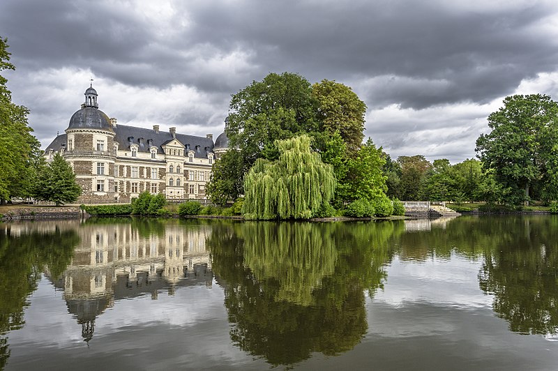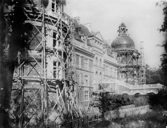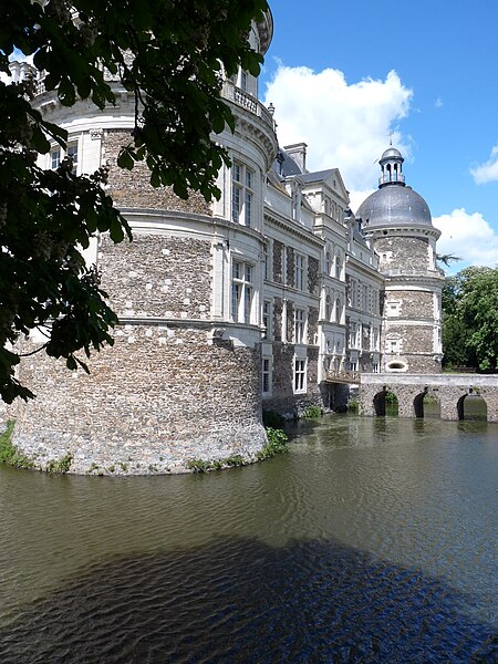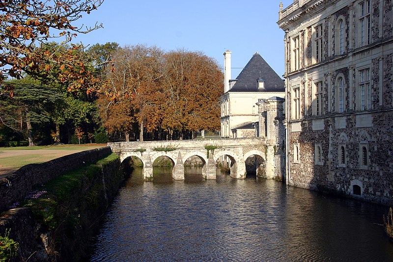 Le château de Serrant se situe à Saint-Georges-sur-Loire, dans le Maine-et-Loire, à une quinzaine de kilomètres à l'ouest d'Angers ; propriété familiale, il est ouvert au public depuis 1954. Outre un mobilier familial, la demeure conserve le fonds Duchâtel, archives du comte Tanneguy Duchâtel, et abrite le tombeau en marbre du marquis de Vaubrun, sculpté par Coysevox et placé en 1703, inscrit aux monuments historiques par arrêté du 29 septembre 1948. Le mobilier, la bibliothèque et les archives ont fait l'objet d'un classement distinct le 29 mars 2001. Édifié en grande partie dans le style Renaissance, le château remplace un édifice médiéval en schiste ardoisier dont les douves subsistent et rappellent la fonction défensive du site pour surveiller le passage de la Loire. Dans les années 1530 l'architecte angevin Jean Delespine construisit le logis autour d'un escalier à double volée contrariée, puis les travaux furent poursuivis par la famille de Brie, qui dut cependant interrompre l'achèvement en raison de difficultés financières et de conflits. Après plusieurs changements de propriétaires, le domaine passa au début du XVIIe siècle à la famille de Rohan, puis fut acquis en 1636 par Guillaume Bautru, qui reprit les travaux en respectant les plans anciens, prolongea la façade et fit édifier la tour sud; deux ailes en retour furent ajoutées et allongées par la suite. Guillaume Bautru constitua la première bibliothèque de Serrant et fit venir des éléments remarquables, dont un cabinet d'ébène attribué à Pierre Gole ; le château reçut la visite de Louis XIV en 1661. Marguerite-Thérèse de Bautru fit prolonger l'aile sud par Jules Hardouin-Mansart pour y recevoir un mausolée dessiné par Charles Le Brun et sculpté par Antoine Coysevox, qui y fut installé au début du XVIIIe siècle. En 1749 Antoine Walsh acquit le domaine, puis le revendit à son frère François-Jacques en 1751 ; la famille Walsh réaménagea les intérieurs, créa un parc à l'anglaise et fit poser des boiseries par un ébéniste nantais. La seigneurie fut érigée en comté en 1755 ; au XIXe siècle des membres de la famille Walsh entreprirent des travaux d'aménagement et des recherches sur l'art du vitrail, aboutissant à la production de vitraux montés sur châssis en 1826. Par mariage, Serrant passa ensuite à la maison de La Trémoïlle; Louis-Charles de La Trémoïlle, héritier par son épouse Marguerite Duchâtel des collections et archives du comte Duchâtel, confia la restauration générale du château à l'architecte Lucien Magne, qui procéda à des retouches en 1894 et fit installer des équipements modernes pour l'époque, tels que chauffage central, électricité, eau courante et ascenseur. La bibliothèque du château se développa pour atteindre environ 20 000 ouvrages imprimés, dont quelque 12 000 sont conservés sur place. En 1939 la duchesse de La Trémoïlle mit Serrant à la disposition de l'État pour abriter des œuvres des musées nationaux ; la propriété fut ensuite partagée au sein de la famille et, par héritage, revint à la branche de Ligne. En 2005 la princesse Hedwige de Ligne‑La Trémoïlle hérita du domaine et s'y installa avec son époux, le prince Charles‑Guillaume de Merode ; la famille poursuit les campagnes d'entretien, de restauration et d'animation culturelle du château. Sur le plan architectural, le logis s'organise autour de l'escalier central en pierre aux voûtes à caissons ; les façades témoignent de l'association des matériaux régionaux, tuffeau pour la cour d'honneur et schiste ardoisier pour les tours et les façades côté parc, complétés par des chaînages, un fronton et une balustrade en tuffeau. Le parc à l'anglaise du XVIIIe siècle entoure la demeure et ses dépendances, parmi lesquelles figurent le colombier, l'orangerie, les écuries et divers communs. De nombreuses sépultures et tombeaux des seigneurs de Serrant se trouvaient dans l'abbaye de Saint‑Georges‑sur‑Loire; certaines de ces sépultures ont été relevées par Gaignières et leurs dessins sont conservés à la BnF ou à la Bodleian. Parmi les noms associés à la seigneurie figurent, entre autres, Isabeau de Maillé et Jean de Brie (mort en 1441) ainsi qu'Anger de Brie (mort en 1381).