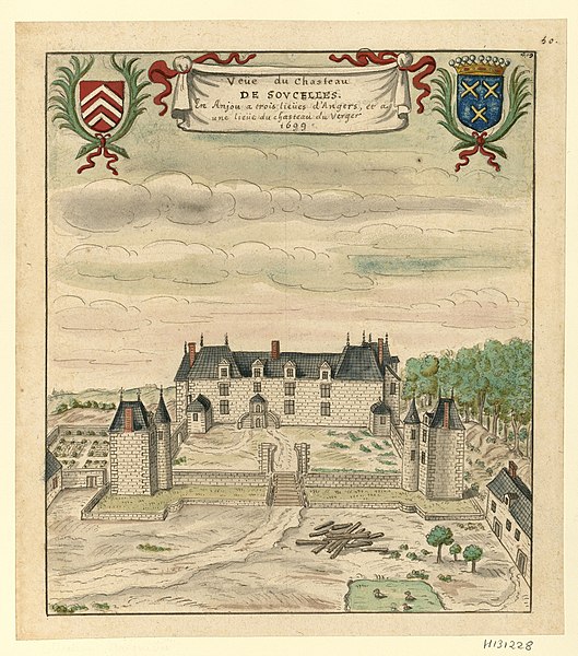 Le château de Soucelles, situé sur la commune de Soucelles dans le Maine-et-Loire, est un château fort d'origine médiévale reconstruit à la fin du XVIe ou au début du XVIIe siècle. Le 21 octobre 1560, le duc de Montpensier, gouverneur de l'Anjou, Touraine, Maine et Blésois, ordonna une répression sévère contre les protestants à Angers : les comptes évoquent la confection d'instruments pour raser les maisons des seigneurs de Soucelles et du bois de Soulerre, et le château ainsi qu'une maison à Angers appartenant à la famille furent incendiés. En 1563, Charles IX accorda la restitution de dîmes à titre de dédommagement pour la reconstruction du château. Au XVIIe siècle, Samson, petit-neveu des frères Marc et Anceau, connut de graves difficultés financières et tenta d'aliéner ses biens. Le 10 septembre 1691, une estimation dressée par Jean Le Jeune et François Buret évalua l'ensemble, comprenant la chapelle du Petit-Saint-Martin, à 143 847 livres. Le 1er avril 1692, trente et un créanciers hypothécaires furent reconnus à Samson par le notaire Pierre Bory ; à sa mort, la succession fut répudiée, le château et les terres restantes furent mis en vente, et une partie de la famille s'installa dans l'hôtel particulier qu'elle possédait à Angers. Après de longues négociations, la famille de Boylesve obtint l'acte d'acquisition le 3 septembre 1699 devant Pierre Bory, un arrangement laissant toutefois une part du château à la veuve de Samson. À la mort de cette dernière, le 28 janvier 1718, l'inventaire mentionna de nombreuses œuvres d'art : tableaux représentant saint François de Sales, la Vierge à l'Enfant et l'Adoration des mages, plusieurs portraits de femmes, ainsi que deux tentures de haute lisse, l'une composée de sept pièces et l'autre représentant une scène de chasse tendue dans le salon. La terre de Soucelles reprit de l'importance sous la famille de Boylesve. Pour assurer la desservance des chapelles de la Bodinière, du Petit-Saint-Martin et de Saint-Georges, le chapelain Simon Roussier abandonna quatorze quartiers de prés en signe de reconnaissance, geste qui suscita des murmures parmi les habitants. En butte à des difficultés financières, Charles Louis de Boylesve vendit la propriété le 10 mars 1771 à Jean Baptiste Ménage pour 300 000 livres. En 1772, les nouveaux propriétaires recomposèrent l'ensemble bâti et le parc d'agrément. Le château présente un décor intérieur de très grande qualité. L'édifice, ses dépendances, la chapelle du Petit-Saint-Martin et le temple de Diane ont été inscrits au titre des monuments historiques en 2006.