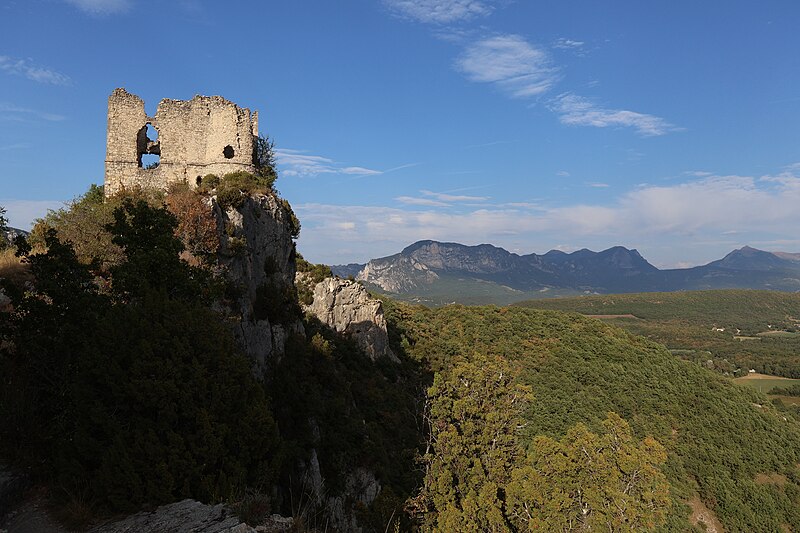 Le château de Soyans, édifié entre 892 et 912, domine la commune de Soyans dans la Drôme depuis un promontoire rocheux. Il subit des déprédations à la fin du XIVe siècle. Au cours de la première moitié du XVIe siècle, la demeure est rebâtie selon un plan en U, dans le style de la Renaissance italienne, avec terrasses et jardins ; de cette reconstruction, peu ou aucun élément médiéval semble avoir été préservé. En 1796, le château est incendié et se présente depuis sous forme de ruines. Les vestiges, la chapelle Saint‑Marcel et les parcelles du promontoire qui les portent ont été inscrits au titre des monuments historiques par arrêté du 12 décembre 2013. Le site s'élève sur une falaise qui domine le village et le Roubion de part et d'autre.