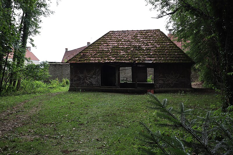 La cour intérieure présente un décor Renaissance remarquable : bossages au rez‑de‑chaussée, pilastres ioniques et groupes de fenêtres à l'étage, niches plates surmontées de têtes ou de médaillons, frises et médaillons à bustes en haut‑relief, ainsi que des traces de peintures allégoriques dans les niches. Derrière la façade orientale subsiste en partie un mur plus ancien percé de portes et de fenêtres, témoin d'une construction du XVe siècle intégrée à l'ensemble. Certaines salles voûtées et les tours d'angle semblent conserver des éléments médiévaux.