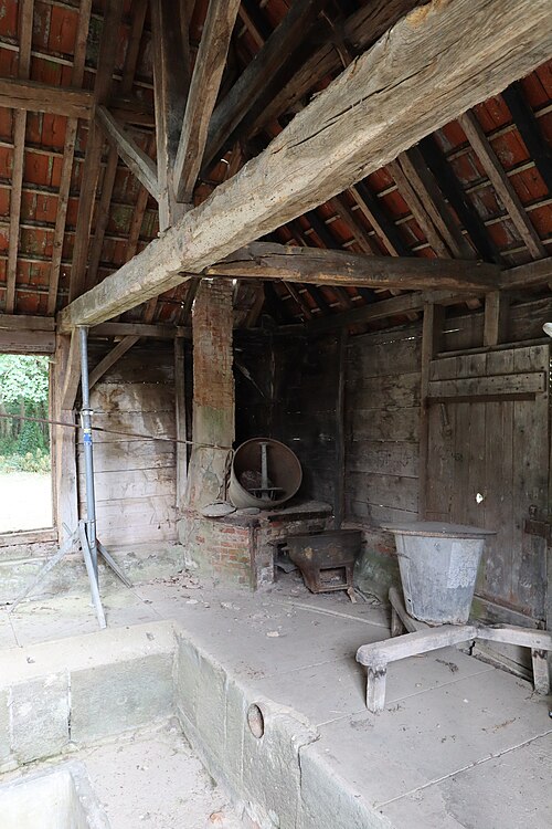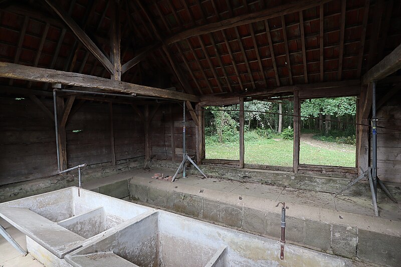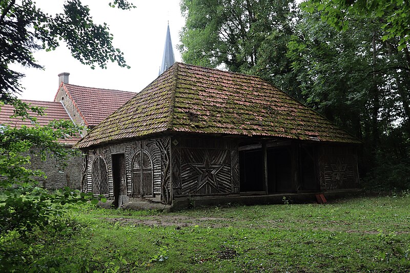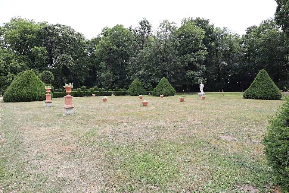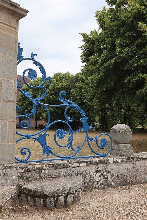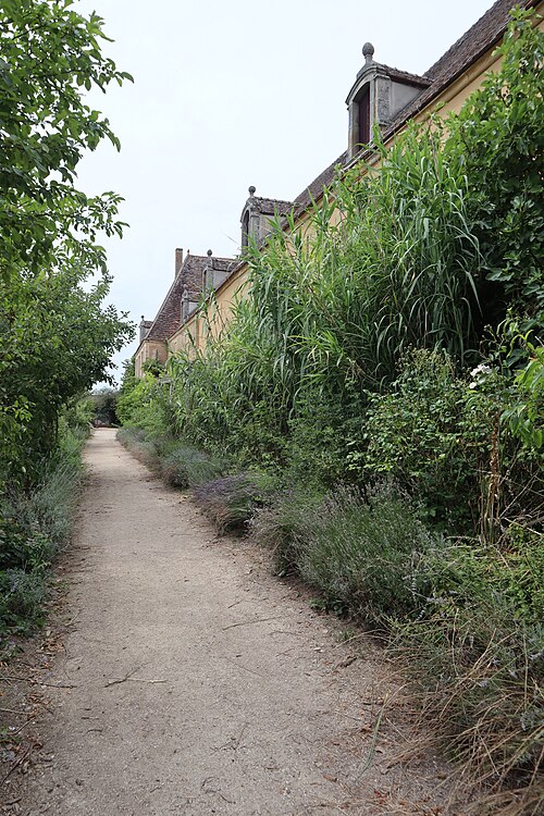 Les communs s'allongent en avant du château et comprennent un bâtiment entre deux pavillons ; l'aile des écuries au nord, signalée par une tête de cheval sculptée au‑dessus de la porte centrale, s'ajoute à un ensemble de bâtiments groupés autour d'une cour. L'un d'eux abrite un théâtre aménagé vers 1840, aujourd'hui transformé en atelier après la destruction de la scène et l'obturation de l'ouverture de scène. L'intérieur du château a été fortement remanié au XIXe siècle et le jardin paysager a été aménagé vers 1890.