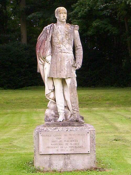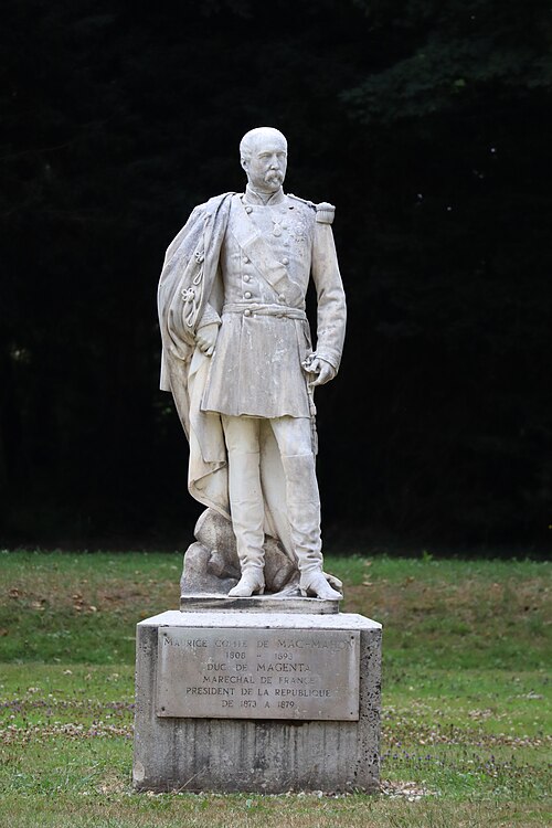 Sols et constructions du domaine, comprenant : le château, les douves, les ponts, l'assiette du château, les terrasses et escaliers ; la chapelle située dans le parc ; les dépendances, y compris le théâtre, les écuries, l'orangerie ; la ferme ; le colombier, le lavoir-isba ; l'avenue ouest d'accès au château ; le parterre d'entrée et ses allées ; la demi-lune et le portail d'entrée ; le potager, le verger, le vivier, le parc, y compris les deux glacières, la statue du maréchal de Mac-Mahon ; les murs de clôture (cad. C 2, 3, 5 à 15, 17 à 25) : classement par arrêté du 4 juillet 1995