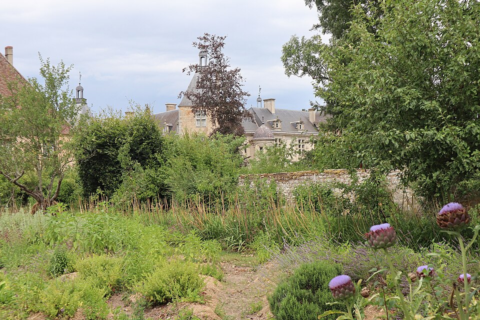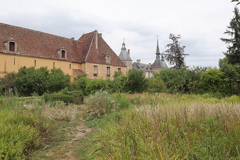La construction principale a été entreprise au XVIe siècle par l'architecte Nicolas Ribonnier et achevée entre 1616 et 1621. En plan, le château forme un vaste quadrilatère composé de quatre corps de logis en retour d'équerre qui encadrent une cour centrale, flanqué de quatre tours carrées plantées en biais. L'ensemble est entouré de douves alimentées par la Drée et précédé d'une longue cour bordée de buis taillés et encadrée par les communs.