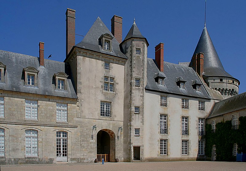 Le plan du château distingue deux ensembles principaux : le donjon et le « petit château », fermant la cour au sud du donjon. Le donjon rectangulaire, cantonné de quatre tours circulaires et pourvu d’une porte flanquée de deux tours vers le sud, correspond aux travaux menés par Guy de La Trémoille ; sa charpente en berceau brisé, sous comble, est un ouvrage remarquable du XIVe siècle. L’intérieur du donjon, profondément réaménagé par Maximilien de Béthune, offre au premier étage une grande salle dotée de portes en bois du XVIIe siècle, une cheminée ornée d’une peinture et la porte de fer qui mène au « cabinet » de Sully ; l’ensemble illustre la distinction entre espaces d’apparat et logis privé. Le petit château, composé d’un logis et de deux tours, comprend la tour d’entrée carrée et une tour du sud-est reconstruite au XVe siècle sur une construction plus ancienne ; le logis, bâti dans la première moitié du XVe siècle, devient à partir du XVIe siècle la résidence habituelle des seigneurs et reçoit des décors et du mobilier remaniés à la fin du XIXe siècle. Le corps qui relie le petit château au donjon date du XVIIIe siècle et a été refait après l’incendie de 1918. Des travaux récents, notamment l’ouverture des Appartements de Psyché en 2007 et des campagnes de remeublement menées avec le Mobilier national et le Centre des monuments nationaux, ont permis de valoriser les intérieurs, parmi lesquels la Salle d’Honneur, la Chambre de Psyché avec sa tapisserie du XVIIe siècle, plusieurs salles meublées et la charpente médiévale du donjon.
