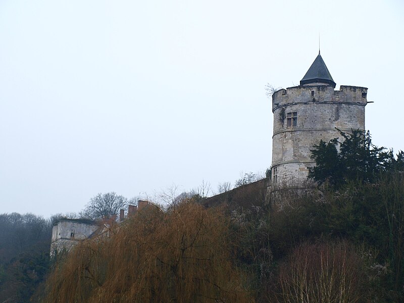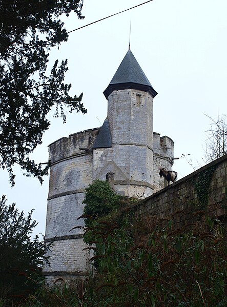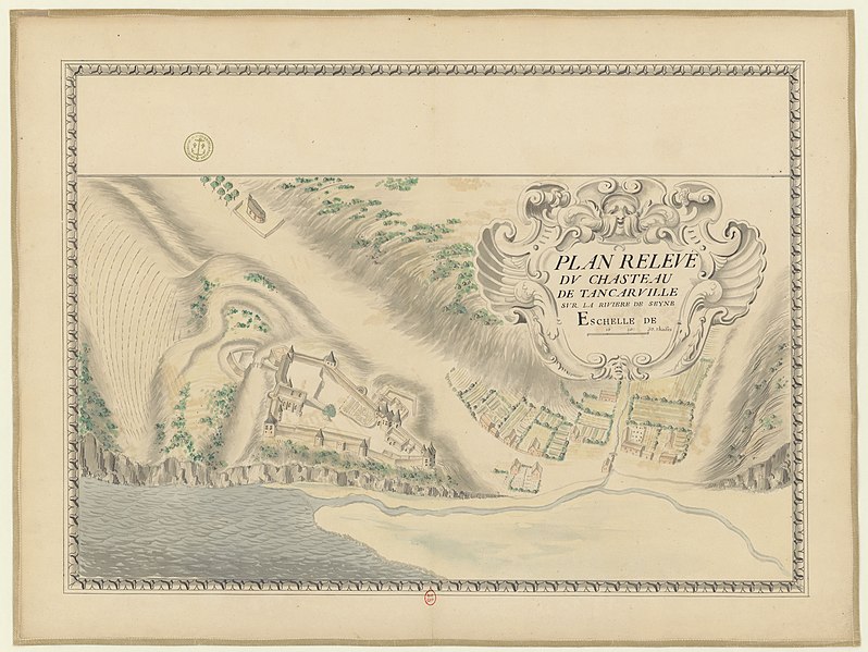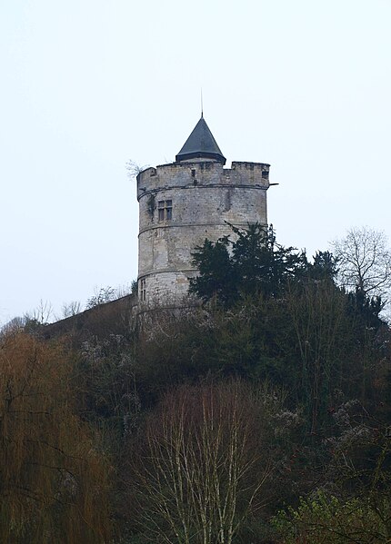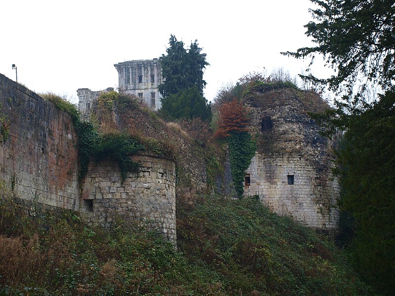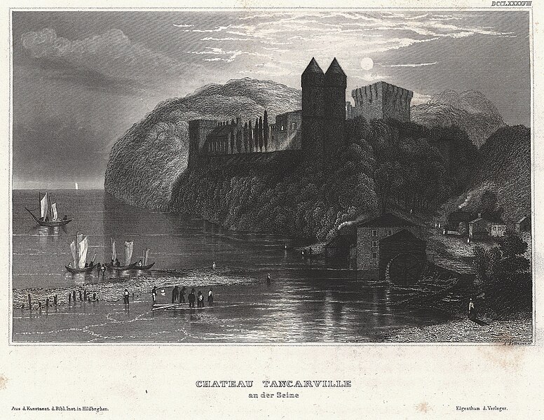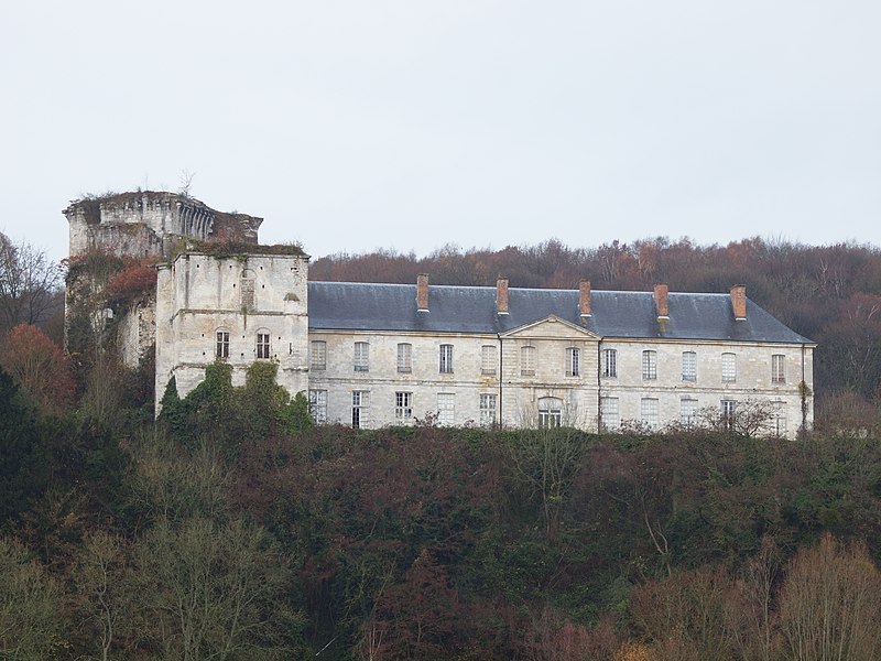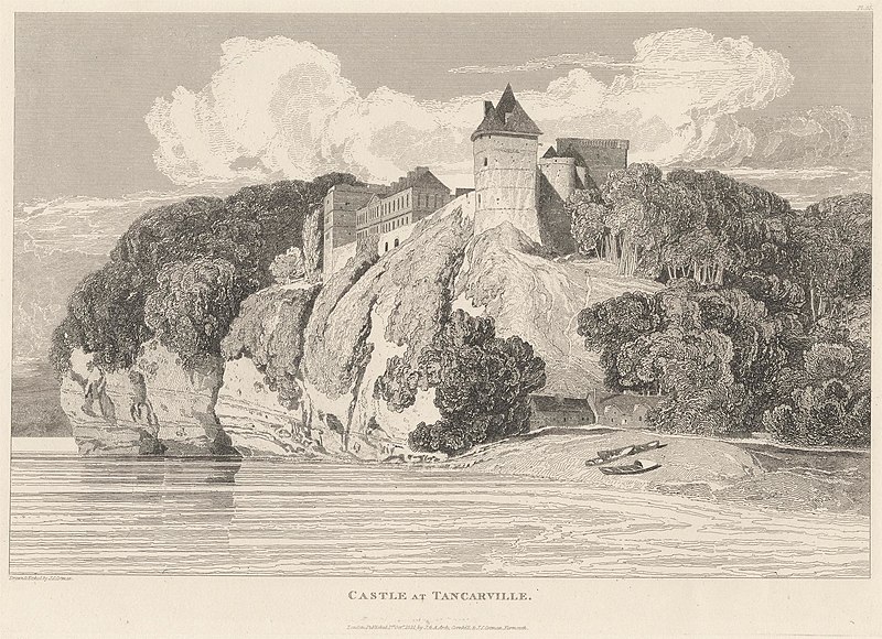 Le château de Tancarville, ancien château fort daté du XIe siècle, présente aujourd’hui des vestiges perchés sur un éperon triangulaire dominant la Seine, sur la commune de Tancarville en Seine‑Maritime, en Normandie. Propriété privée, il est classé au titre des monuments historiques. Implanté sur une falaise crayeuse à un kilomètre au sud‑est de l’église Saint‑Michel, il contrôlait autrefois l’entrée de la Seine. Le domaine doit son nom au premier seigneur, Tancrède ; son petit‑fils Raoul de Tancarville, précepteur puis chambellan du duc Guillaume le Bâtard, obtint l’autorisation de bâtir un château et fonda l’abbaye Saint‑Georges de Boscherville en 1050. L’ouvrage fut complété au début du XIIe siècle par la tour Carrée du sud‑ouest, probablement le donjon roman, dont les murs ont 1,65 mètre d’épaisseur. Au fil des siècles, la seigneurie change de mains par alliances et héritages : en 1316 Jeanne de Tancarville épouse Jean II de Melun, puis le comté est distinct de Longueville en 1364 ; en 1417 Marguerite de Tancarville épouse Jacques d’Harcourt. Lors de la conquête de la Normandie par Henri V, le titre d’Earl of Tankerville fut attribué à John Grey, tandis que la famille d’Harcourt porta le comté dans le royaume de France et récupéra le château après le départ des Anglais. Une salle de réception est ajoutée en 1468 ; en 1488 le domaine revient à François Ier d’Orléans‑Longueville, et en 1505 Louis XII élève le comté de Longueville au rang de duché, reléguant Tancarville au statut de comté annexe. On retrouve Jean III d’Aché comme capitaine en 1590. Le château passe ensuite aux familles des Montmorency puis des La Tour d’Auvergne ; Louis de La Tour d’Auvergne (1679‑1753) fait édifier en 1709 le « Château Neuf », un grand bâtiment de style classique adossé aux parties médiévales. Après 1789, l’ensemble est pillé et partiellement incendié. Loué de 1910 à 1939 par Fernand Prat et son épouse Jehanne Leblanc, il a accueilli des personnalités des arts et des lettres telles que Maurice Maeterlinck, Georgette Leblanc, Colette, Margaret Anderson, James Joyce, Bertrand de Jouvenel, Pierre Lecomte de Noüy et Louis Fabulet. Dans les années 1960, il a servi de colonie de vacances pour des enfants de la région. Le château appartient aujourd’hui à la société civile immobilière Saqqara, domiciliée à Mérignac, qui propose depuis 2001 d’y aménager des appartements de grand standing ; en attendant sa réhabilitation, il reste fermé au public et certaines parties se dégradent. Selon la presse, un groupe d’une dizaine de footballeurs aurait racheté le château en 2013 via des intermédiaires, projetant une restauration liée à des avantages fiscaux au titre de la loi Malraux ; en 2019, seuls quelques travaux de toiture avaient été effectués et la mairie a interdit l’accès du public pour des raisons de sécurité. Le château reconstruit au XIIe siècle puis renforcé au XVe siècle par la famille d’Harcourt se répartit autour d’une vaste enceinte triangulaire flanquée de tours, le logis seigneurial s’appuyant sur la courtine occidentale. À l’est se trouvaient le châtelet, la tour du Lion et la tour Coquessart ; la tour de l’Aigle défendait le front nord. Le donjon en amande, isolé au bout d’une rampe, n’existe plus que sous forme de ruines. Le rempart côté sud, qui domine la Seine, est une courtine renforcée par des contreforts et reliée à la grosse tour Carrée, haute de 20 mètres et répartie en quatre niveaux desservis par une tourelle d’escalier. À la pointe nord‑est, la tour de l’Aigle s’élève en éperon sur trois niveaux marqués par des bandeaux de pierre et est accessible par une petite tour polygonale. Le front nord était défendu par un châtelet à deux tours jumelles et par la tour du Lion, qui servit de magasin à munitions. À l’ouest se trouvaient les logis seigneuriaux et le donjon construit au XVe siècle par les d’Harcourt, aujourd’hui disparu ; la rampe d’accès, autrefois commandée par deux tourelles, était fermée par la tour Coquessart, de plan hexagonal, et la Vieille Tour du XIIe siècle, de plan rectangulaire, encore debout mais très ruinée. Des vestiges du logis subsistent : la chapelle de 1131, située en avant de la Vieille Tour, la salle des chevaliers de 1410 avec des restes de cheminées et des arcades ogivales au rez‑de‑chaussée, ainsi qu’une grande salle à façade alternant briques et pierres qui donne accès à la tour de la Collecte construite sur le rempart. Le Château Neuf, adossé au rempart sud et en masquant partiellement la face extérieure, est un bâtiment classique pourvu d’un avant‑corps légèrement saillant surmonté d’un fronton triangulaire. Parmi les anecdotes liées au site, Maurice Leblanc a écrit Le Bouchon de cristal dans la tour de l’Aigle, datée du XVe siècle ; en janvier 1933, un sanglier surnommé « le solitaire » fut chassé dans le bois du château, sa hure étant conservée au manoir du Clap ; les seigneurs de Tancarville pratiquaient la chasse au héron et possédaient une héronnière, et les registres mentionnent un paiement fait à Jehan de Livet le 13 juin 1411 pour avoir déniché un nid d’aigle qui causait des ravages dans la héronnière. Le château est classé sur la liste des monuments historiques dès 1862.