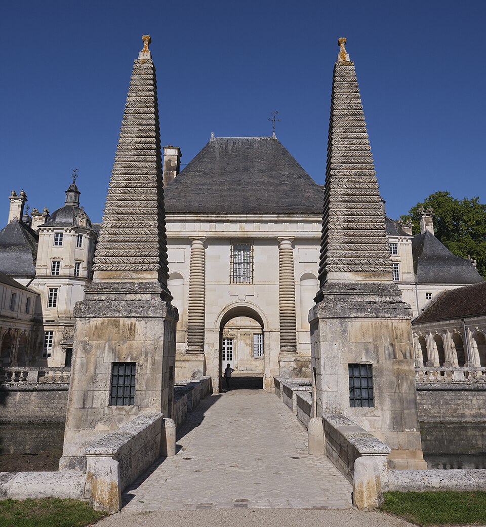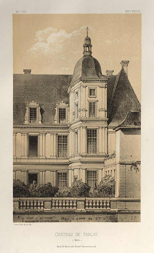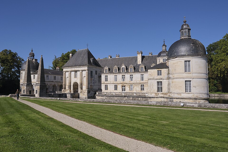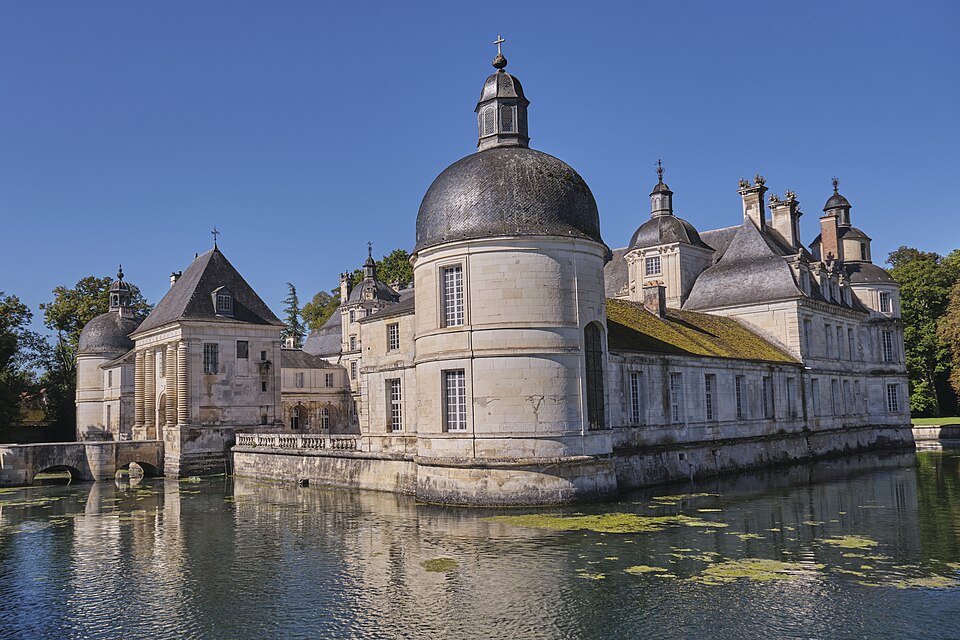 Le Domaine de Tanlay est un château de la Renaissance, classé monument historique, situé à Tanlay dans l'Yonne, en Bourgogne‑Franche‑Comté. Son origine remonte à une forteresse médiévale liée aux seigneuries locales, puis la propriété passa entre plusieurs familles nobles avant d'être acquise vers 1533/1535 par Louise de Montmorency. La construction d'un nouveau château débute au XVIe siècle sur les fondations de l'ancienne forteresse ; François de Coligny d'Andelot fait édifier le grand château de 1550 à 1568 et le petit château à partir de 1558, avec le soutien financier de son frère Gaspard de Coligny. Pendant les guerres de Religion, Tanlay accueille des réunions de chefs protestants, notamment autour de l'amiral de Coligny et du prince de Condé. Après la mort de François d'Andelot en 1569, Jacques Chabot poursuit les travaux et ajoute la Tour de la Ligue et la Tour Coligny, tandis que le petit château est achevé en 1610. En 1642 Michel Particelli d'Émery achète la seigneurie et confie à l'architecte Pierre Le Muet l'achèvement du château : entre 1642 et 1650 il élève l'aile droite et met en place un plan symétrique en U, complète les façades, décore les appartements et fait construire des communs d'ordonnance classique. Des travaux hydrauliques importants donnent naissance au système de douves et au grand canal qui traverse le parc. Le domaine passe ensuite aux Phelypeaux, érigé en marquisat en 1671, puis au XVIIe–XVIIIe siècle il revient à la famille Thévenin, dont les descendants conservent le château. Au XXe siècle Tanlay sert de décor de cinéma en 1963 et le château, ainsi qu'une partie de son environnement, est classé au titre des monuments historiques le 20 décembre 1994 ; le parc bénéficie d'un classement depuis le 27 décembre 1927. Depuis 1998, le Centre d'art de l'Yonne organise des expositions d'art contemporain dans les communs.