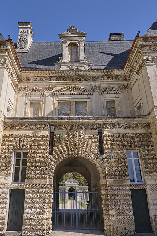 Le château, le "petit château", les communs et la chapelle Saint-Emilian, en totalité ; les douves et les ponts dormants ; la cour verte et les murs qui l'encadrent ; le parc et les éléments qu'il contient : le canal et la "perspective", les ponts, le moulin, le portail d'entrée ; tous les murs de clôture (cad. AB 16, 18, 20 à 25, 28, 29, 568, 569, 572, 628 ; B 286 à 293, 295, 297, 299 à 306, 487) : classement par arrêté du 20 décembre 1994