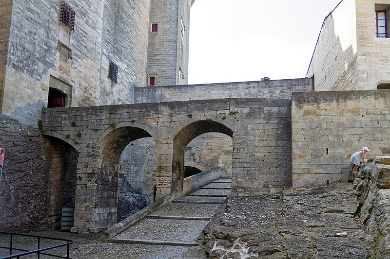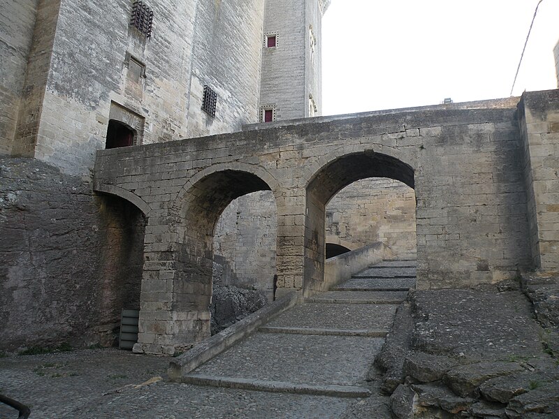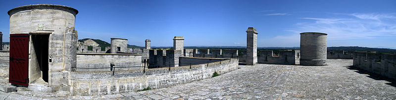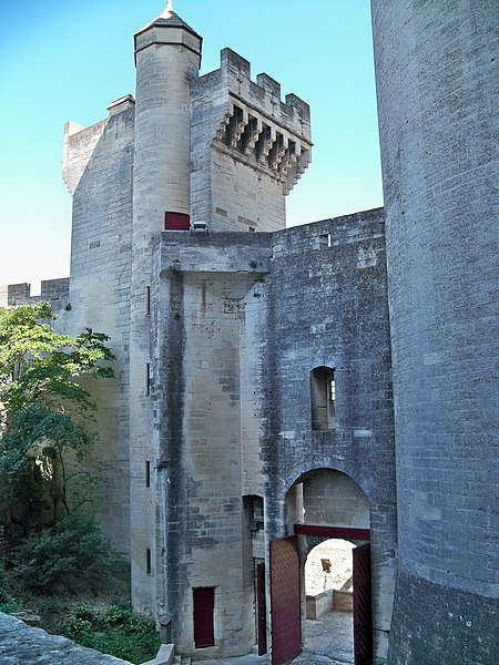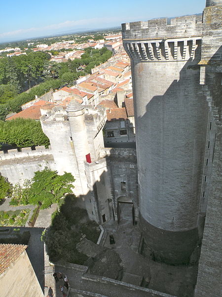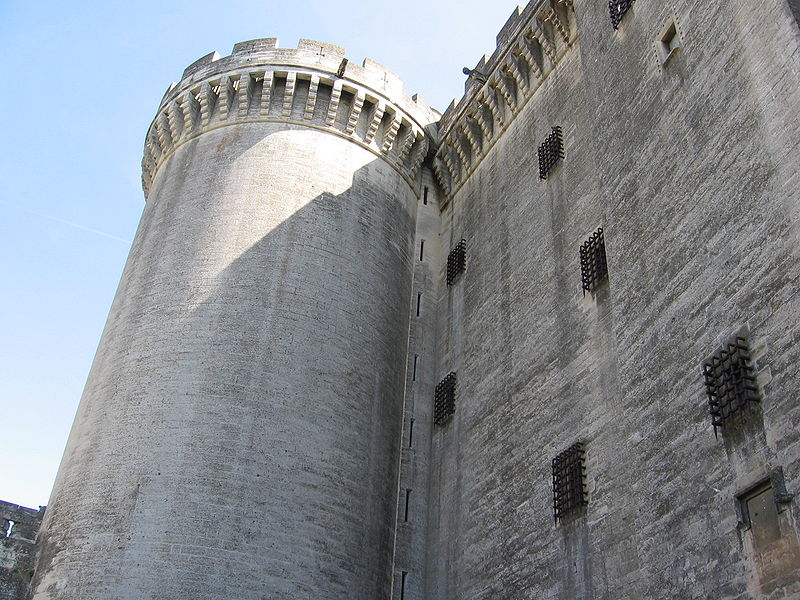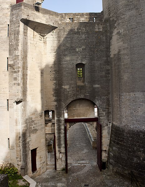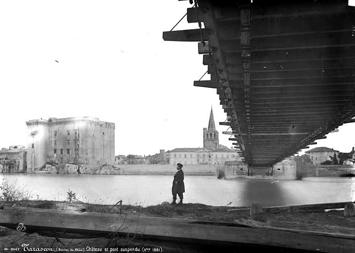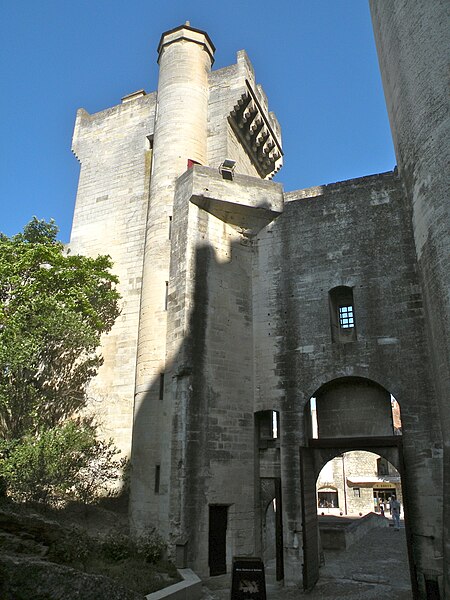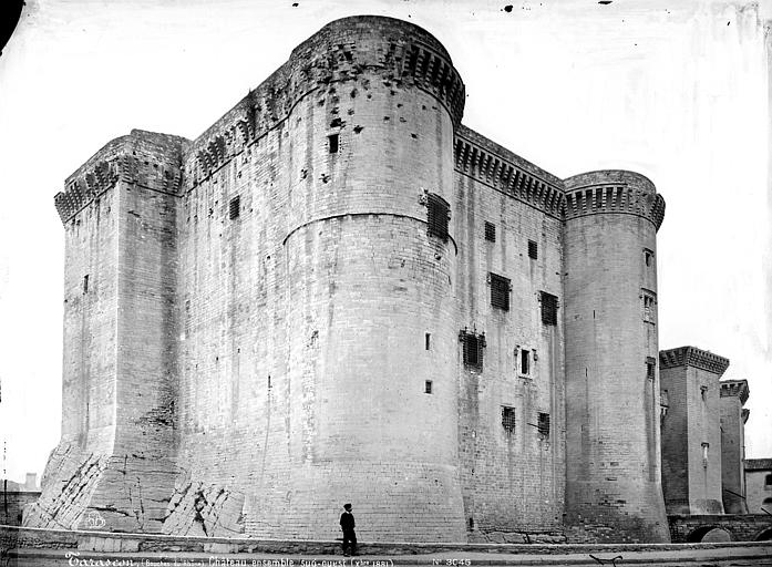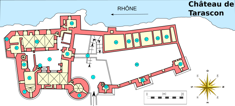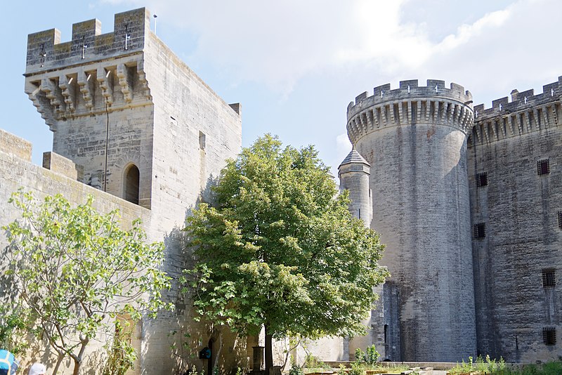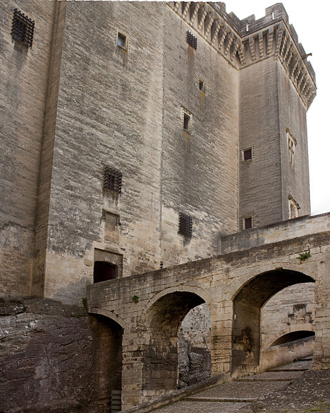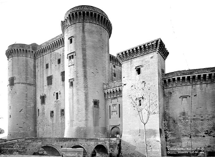 Le château de Tarascon, dit Château du Roi René, est un ancien château fort situé à Tarascon, en bordure du Rhône, dans les Bouches-du-Rhône (Provence-Alpes-Côte d'Azur). Ancienne propriété de l'État (ministère de la Culture), la propriété a été transférée à la commune par convention signée le 1er janvier 2008. Reconstruit dans la première moitié du XVe siècle dans un style mêlant gothique et renaissance, il fut le cadre des séjours, des fêtes et des rencontres du roi René, et accueillit également Jacques Cœur, fugitif après sa condamnation par Charles VII. Le château se dresse sur un îlot rocheux bordé par le Rhône et contrôla jusqu'en 1481 la frontière politique que forme le fleuve ; haut de 45 mètres, il domine le paysage au nord d'Arles. Un premier château existait à cet emplacement ; il aurait été édifié par Roubaud II, marquis de Provence, entre 994 et 1010. Partiellement détruit puis reconstruit, il fut occupé au milieu du XIIIe siècle par Charles d'Anjou et restauré en 1291 par son fils Charles II, dit « le Boiteux ». En 1367, le duc Louis d'Anjou tenta de s'imposer en Provence et confia le siège de Tarascon à Bertrand Du Guesclin, qui entreprit le siège en 1368 ; la ville capitula en mars 1368 mais fut reprise en septembre 1370. La reconstruction du château actuel fut entreprise par Louis II d'Anjou, les travaux débutant le 27 novembre 1400, puis repris de 1428 à 1435 par Louis III d'Anjou. L'architecte Jean Robert travailla avec les sculpteurs Simon de Beaujeu et Jacques Morel, et les matériaux provenaient de carrières de Beaucaire. Le roi René n'effectua que de petites modifications entre 1447 et 1449 sous la conduite de Jean de Serocourt et Regnault de Serocourt, et fit placer dans une niche de la cour d'honneur les bustes de lui-même et de la reine Jeanne de Laval. En 1471, Tarascon fut équipée d'artillerie, avec vingt bombardes et trois autres pièces probablement installées sur les terrasses du château, et quelques travaux supplémentaires eurent lieu de 1476 à 1479, dont le remplacement du pont-levis par un pont fixe. Après 1481, le château n'eut qu'un usage occasionnel par les représentants royaux ; du XVIIIe siècle à 1926 il servit de prison, notamment pour des marins ennemis. Les dégradations liées à cette utilisation furent réparées par les architectes Henri Antoine Révoil et Jean Camille Formigé, qui rétablirent notamment le crénelage. Bâti sur un îlot rocheux, le château est séparé de la ville par un fossé taillé dans le roc pouvant recevoir les eaux du Rhône et se compose de deux parties distinctes : la basse-cour au nord, dédiée aux communs et aux hommes d'armes, et le logis seigneurial au sud. L'accès se fait par une porte entre la première tour carrée de la basse-cour et la tour ronde dite de l'Horloge ; on pénètre alors dans une cour fermée située entre la basse-cour et le château, formant une véritable souricière en cas d'attaque. La basse-cour est un massif polygonal entouré d'une muraille moins haute que celle du château ; elle est flanquée vers la ville par trois tours barlongues et possède une tour plus petite côté Rhône. Les communs abritent l'apothicairerie de l'hôpital Saint-Nicolas, où sont exposés plus de deux cents pots en faïence de Saint-Jean-du-Désert et de Montpellier dans une boiserie du XVIIIe siècle. Le logis seigneurial, véritable château proprement dit, présente des courtines de 3 à 4 mètres d'épaisseur et des murailles culminant à 45 mètres, avec deux tours rondes à l'est (tour de l'Horloge et tour des Chapelles) et deux tours carrées à l'ouest, côté Rhône. Les architectes ont privilégié des tours rondes sur la façade la plus exposée pour leur résistance, mais la persistance des tours carrées témoigne d'un certain archaïsme ; les courtines ont la même hauteur que les tours, assurant un niveau de défense et de circulation continu, à la manière de la Bastille. Au centre, la cour d'honneur est entourée de bâtiments d'habitation de trois étages, les deux premiers plafonnés « à la française » et le dernier voûté ; ils sont desservis par des escaliers en vis, le principal étant logé dans une tourelle en saillie sur la façade orientale. Sur le côté oriental se trouve un escalier polygonal et, sur la façade sud, la niche qui abrite les bustes mutilés du roi René et de la reine, œuvres probablement attribuées à Francesco Laurana. La tour des Chapelles, semi-circulaire et datée de la première moitié du XVe siècle, contient deux chapelles superposées : la chapelle basse des Chantres, rectangulaire avec abside semi-circulaire et voûtes d'ogive en deux travées, et la grande chapelle à l'étage, de même plan mais moins élevée ; leurs ouvertures limitées à des meurtrières favorisaient la défense. L'aile méridionale, la plus exposée, n'ouvre pas côté sud et ne reçoit des fenêtres que sur la cour d'honneur, tandis que l'aile ouest, en bordure du Rhône, comporte de grandes fenêtres donnant sur le fleuve et des salles uniques à chaque étage destinées aux réceptions et banquets. Si la décoration est réduite en raison de la vocation militaire, on observe des consoles sculptées (chimères, aigles, chauves-souris) supportant les voûtes d'ogive et de nombreux décors peints de la première moitié du XVe siècle représentant animaux réels et fantastiques ainsi que des personnages humains, thèmes repris dans le décor sculpté. De nombreux graffitis jalonnent les salles du château, y compris les pièces d'apparat et les communs depuis son usage pénitentiaire à partir du XVIIe siècle ; leur recensement a permis d'établir une typologie des détenus selon leur nationalité, leur provenance ou la date d'emprisonnement. Une chambre utilisée comme cachot au XVe siècle est remarquable pour ses graffitis de bateaux et de galères, gravés par un ou plusieurs marins catalans, a