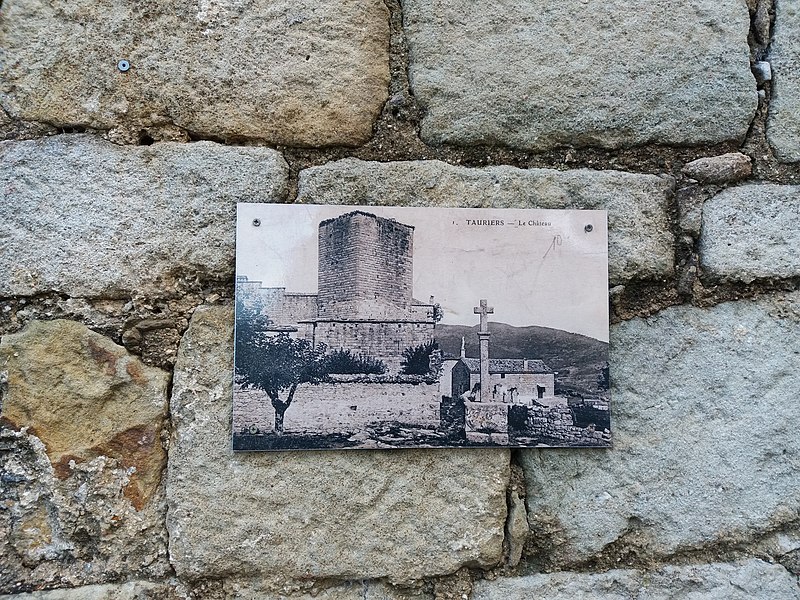 Le château de Tauriers se trouve sur la commune de Tauriers, dans le département de l'Ardèche. Du Moyen Âge subsiste principalement le donjon, situé à proximité d'un logis daté du XVIIe siècle. L'édifice a été inscrit au titre des monuments historiques en 1926. Le portail est surmonté des armes et de la couronne comtale de la famille Comte de Tauriers. Des ressources documentaires et iconographiques sont disponibles, notamment dans la base Mérimée et sur Wikimedia Commons, ainsi que sur les portails consacrés à l'Ardèche, aux monuments historiques et aux châteaux de France.