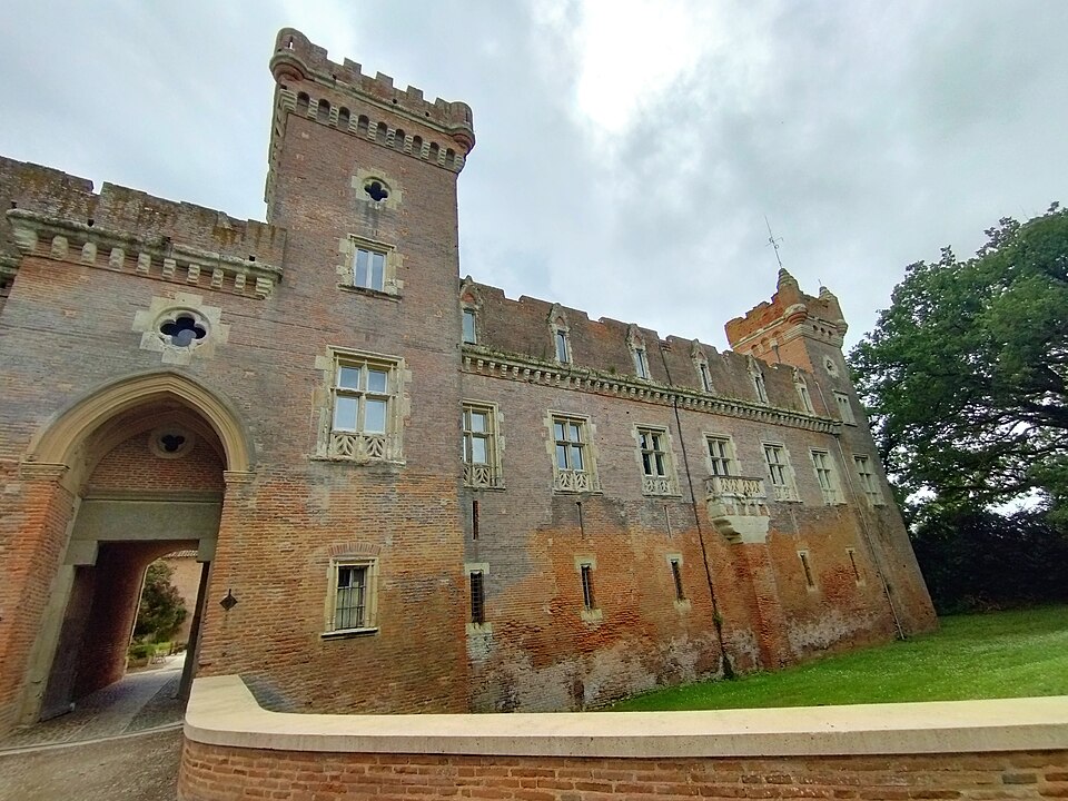 Le château, construit en briques, se rejoint par un petit pont qui enjambe des douves asséchées et donne sur la façade principale. L'ensemble présente un plan rectangulaire ceinturant une large cour d'honneur aujourd'hui équipée d'une piscine. La façade est rythmée par trois tours sur trois étages, toutes différentes et pourvues d'échauguettes ; la tour d'extrémité gauche porte une tourelle d'escalier. Le rez-de-chaussée est percé de fines fenêtres proches de meurtrières, l'étage noble s'ouvre sur de larges baies à meneaux, parfois dotées de balcons, caractéristiques d'un remaniement Renaissance, et le dernier niveau est logé sous une toiture en mansarde munie de lucarnes. Le domaine s'étend sur 92 hectares, dont une partie boisée et un lac, et comprend une chapelle.