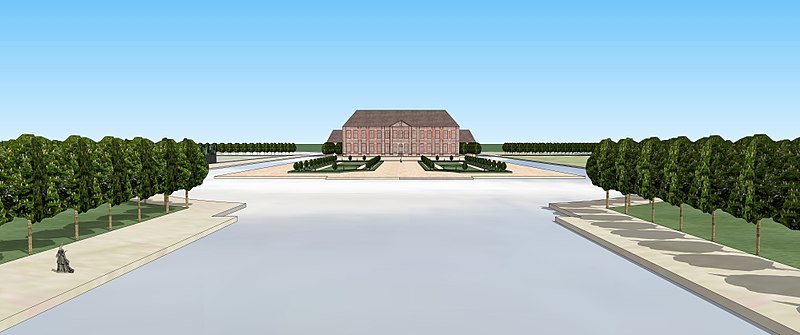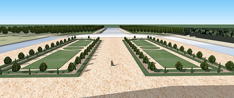Le jardin ordonnancé avec les canaux, bassins, fossés, potager, parterres, quinconces (cad. F 19 à 33, 108 à 112, 446, 447, 449 à 451, 454, 456 à 460, 510) : inscription par arrêté du 7 février 1995 - Le jardin de l'ancien château, y compris les murs de clôture, les pilastres en brique, les ponts, les allées d'eau et les bassins (cad. F 18, 463, 1044, 1045, 1061 à 1064) : inscription par arrêté du 25 mars 2002