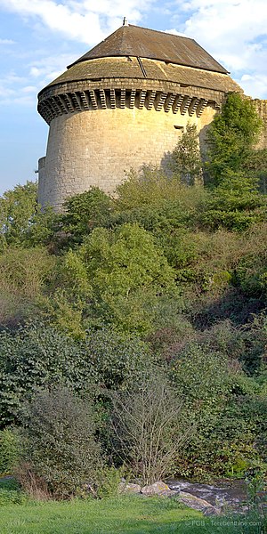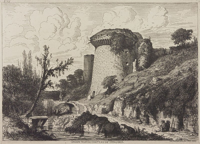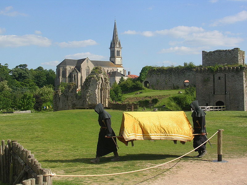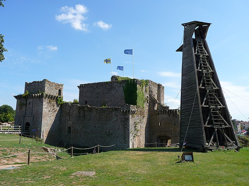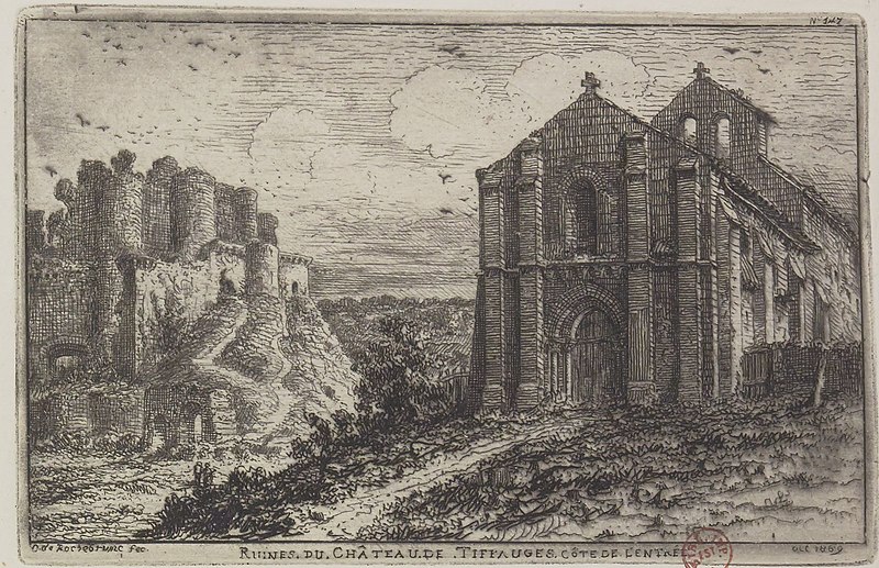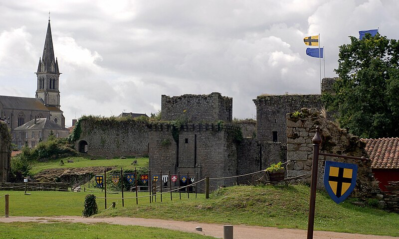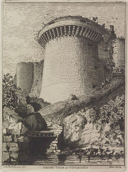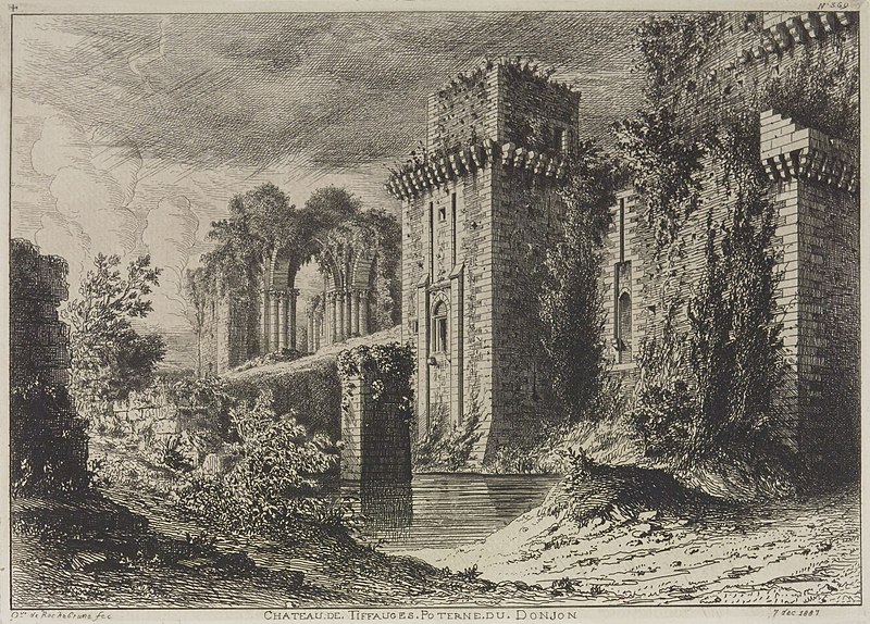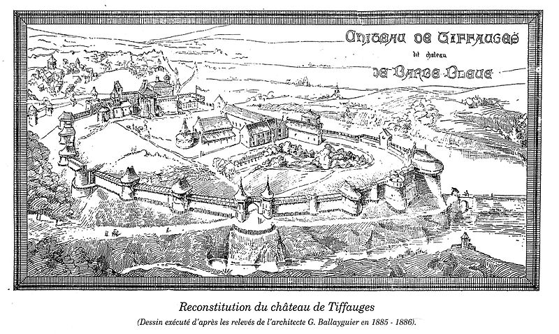 Le château de Tiffauges, ancien château fort aujourd’hui en ruines, s’élève sur la commune de Tiffauges (Vendée, Pays de la Loire) et est parfois surnommé château de Barbe bleue en référence à Gilles de Rais, son résident le plus célèbre. Il est protégé au titre des monuments historiques. Bâti sur une butte à la confluence de la Sèvre Nantaise et de la Crûme, face à l’Anjou, son emplacement lui offre une protection naturelle renforçant ses défenses. Geoffroy de Thouars fait édifier l’ouvrage au XIIe siècle ; le village implanté au pied du promontoire est alors protégé par un rempart pourvu de tours. Le château entre dans la famille de Gilles de Rais par le mariage de ce dernier avec Catherine de Thouars en 1420, et la tradition attribue à Gilles des crimes commis dans les catacombes du lieu. Après la mort de Gilles de Rais le 26 octobre 1440, Catherine de Thouars épouse Jean II de Vendôme, vidame de Chartres, qui fait édifier la tour dite du Vidame vers 1520. Le fief passe ensuite entre plusieurs mains — notamment à Jean III, puis au duc de Thouars en 1563, avant d’être cédé à Bérande de Ferrière puis à son frère Jean de Ferrière — et le château est attaqué à plusieurs reprises, incendié en 1569 pendant les guerres de Religion. Une ordonnance royale de démantèlement de 1626 semble n’avoir eu qu’un effet limité ; les fortifications sont toutefois en ruine lorsque Esprit Jousseaume de La Bretesche en devient propriétaire en 1702, et sa famille conserve le site pendant environ deux siècles et demi. Le château joue encore un rôle lors de la bataille de Torfou le 19 septembre 1793. Des dégagements et relevés sont effectués par l’architecte Georges‑Eugène Balleyguier en 1885, le château est vendu à la mairie pour un franc symbolique en 1955, puis des travaux archéologiques et des restaurations débutent à la fin des années 1980.