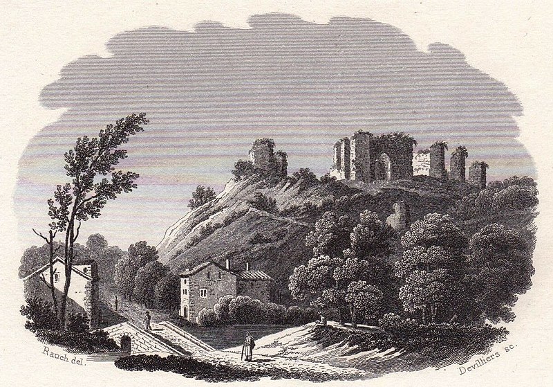 Château (ensemble des vestiges) avec les vestiges de la chapelle et la crypte (cad. B 517 à 525, 534, 536, 778) : classement par arrêté du 9 juillet 1957 ; Les éléments suivants de la digue du château : la digue aménagée avec sa chaussée sur le cours de la Crûme (parcelle B 533) ; ses aménagements situés en amont et en aval (prises d’eau, déversoir, canaux de dérivation et d’irrigation, bonde, dalles de couvertures) ainsi que les parcelles attenantes B 530 à 532, selon l’emprise délimitée par un trait rouge sur le plan annexé à l’arrêté : inscription par arrêté du 14 septembre 2018.