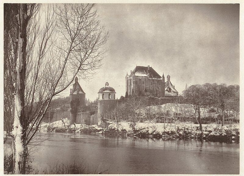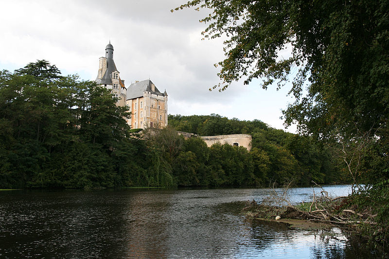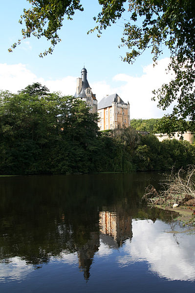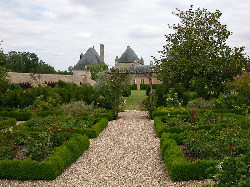 Situé sur la rive gauche de la Vienne, à Bonnes (Vienne), le château de Touffou occupe une terrasse artificielle précédée au sud d'une avenue en pente étayée par un mur côté Vienne et bordée au nord par un ravin. L’ensemble associe des éléments romans et gothiques — notamment un double donjon — et des aménagements de la Renaissance comme la tour Saint-Jean et l’aile ouest. Le double donjon, vraisemblablement implanté dès le XIIe siècle par la famille des Oger mentionnée en 1127, était protégé par fossés, tours bastions et remparts ponctués de tours carrées, un plan défensif qui demeure visible. Le donjon principal, rectangulaire, mesure 27 m de long sur 13 m de large et 18 m de haut ; il comporte cinq niveaux, chacun occupé par une salle unique, et la salle du deuxième étage conserve une polychromie héraldique du XIIIe siècle. Au XVe siècle les deux donjons sont réunis et l’enceinte fortifiée, avec ses tours (Saint-Jean, de la Chapelle, de l’Hostellerie et Saint-Georges), est édifiée ; c’est à cette époque que commencent les transformations vers une résidence plus confortable. En 1560 une grande aile renaissance est bâtie entre la tour Saint-Georges et le donjon, reliée par un corps de bâtiment contenant un escalier, tandis que la tour et le pavillon de l’Hostellerie sont remaniés; au cours du XVIe siècle l’escalier de la tour Saint-Jean est refait et divers aménagements se poursuivent aux XVIIe et siècles suivants. Le château repose encore sur des murs de soutènement qui prolongent l’enceinte au nord pour maintenir l’aumônerie et le jardin, et une allée sous bois longeant le ravin semble correspondre à l’entrée originelle. Deux tours arasées occupent un angle du parc qui a la forme d’un quadrilatère irrégulier ; les dépendances ferment une cour précédée d’un portail daté de 1784, auquel sont sans doute contemporains les communs situés hors les douves. À la veille de la Révolution, les biens du seigneur comprenaient une ferme, seize métairies et une borderie, deux moulins à eau, une maison ainsi que terres et prés répartis sur les communes voisines. En 1794 les scellés sont apposés sur le domaine, qui est rendu à l’héritier en 1803 puis vendu en 1821 à la famille de Gréaulme; après plusieurs changements de propriétaires, la famille de Vergie acquiert Touffou en 1897 et l’occupe jusqu’en 1966, année où il devient la propriété de David Ogilvy. Classé monument historique en 1923, le site a fait l’objet d’entretiens et de restaurations régulières : restauration du grand escalier entre 1905 et 1936, reconstruction des niveaux supérieurs de la tour de l’Hostellerie entre 1937 et 1940 et consolidation des murs de soutènement en 1999. Les terrasses et le parc, dont un jardin clos est attesté dès la Révolution, ont fait l’objet d’inscriptions et classements complémentaires dans les années 1990 et d’aménagements paysagers à la fin du XXe siècle sur l’emplacement du potager figurant sur le cadastre de 1819. Les jardins contemporains, réalisés progressivement depuis 1966 et labellisés "Jardin remarquable" en 2004, comprennent un jardin de style anglais organisé en espaces clos d’ifs avec une roseraie et une grande allée plantée, un jardin de l’Aumônerie en contrebas composé de carrés bordés de buis, et un jardin en terrasse de style italien nommé "Jardin de la Terrasse des Tournois", conçu par l’architecte paysagiste Paolo Perjoné.