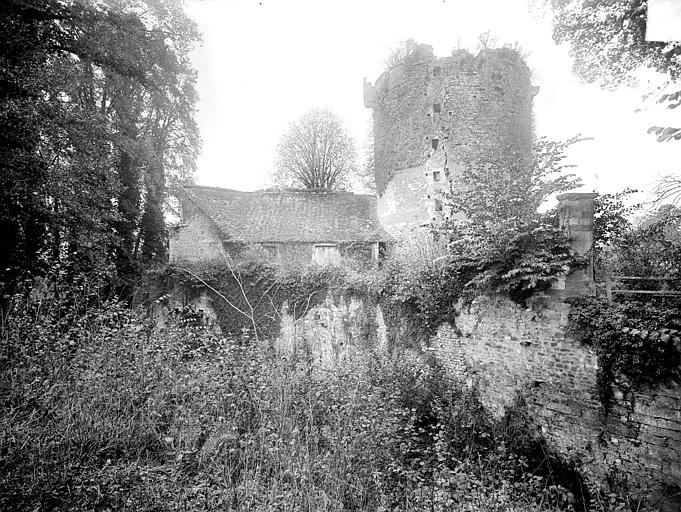 Les restes du château de Tournebu, propriété privée non ouverte à la visite, se dressent dans le Cinglais sur la commune nouvelle de Cesny‑les‑Sources (Calvados). Ils comprennent principalement un donjon cylindrique situé à 280 mètres au nord‑ouest de l'église Saint‑Hilaire, au fond d'une cour de ferme. Selon les sources, l'édifice remonte aux XIIe–début du XIIIe siècle et fut édifié pour la famille de Tournebu. Les seigneurs de Tournebu prirent part aux luttes franco‑anglaises des XIVe et XVe siècles. Le château passa par héritage à la famille de Thère en 1452, puis à diverses familles avant d'être racheté en 1701 par Pierre de Tournebu. En 1806, Marie‑Pierre de Tournebu le légua à son petit‑neveu Jean Jacques Luc Edmond de Foucault, dont la descendance conserva la propriété jusqu'en 2012. Le donjon est le dernier vestige d'un château fort partiellement détruit après la Révolution et utilisé comme carrière par son propriétaire. Cylindrique et bâti sur une motte plus ancienne, il mesure 21 mètres de haut pour 12 mètres de diamètre et s'élève sur trois étages. Il a été coiffé d'un toit au XVIe siècle et, à la fin du XVIe ou au début du XVIIe siècle, l'ensemble du site fut converti en fortification bastionnée. Le donjon fut alors enfermé dans un fortin enterré au plan en étoile, dont chaque branche formait un grand bastion, et relié à ceux‑ci par des souterrains. La cave creusée sous la tour et les fossés remontent à cette phase, la cave ayant en outre fragilisé le sol après l'effondrement de l'escalier. L'intérieur, principalement remanié aux XVe et XVIIe siècles, conserve le gros œuvre, la répartition des niveaux, le puits, des latrines et de belles cheminées de style Louis XIII. La tour présente une organisation intérieure quadrangulaire et une façade extérieure circulaire, avec des rangées de gros appareil formant des cerclages entre les étages. Des marques de tâcherons — croix, traits, triangles ou lettres — sont visibles en façade, témoins du travail des tailleurs de pierre. Les vestiges ont été inscrits au titre des monuments historiques par arrêté du 21 juin 1927. Pour approfondir, on peut consulter notamment l'étude d'Arcisse de Caumont publiée dans le Bulletin Monumental (1849) et l'ouvrage de Michel Fixot sur les fortifications de terre dans le Cinglais (1968).