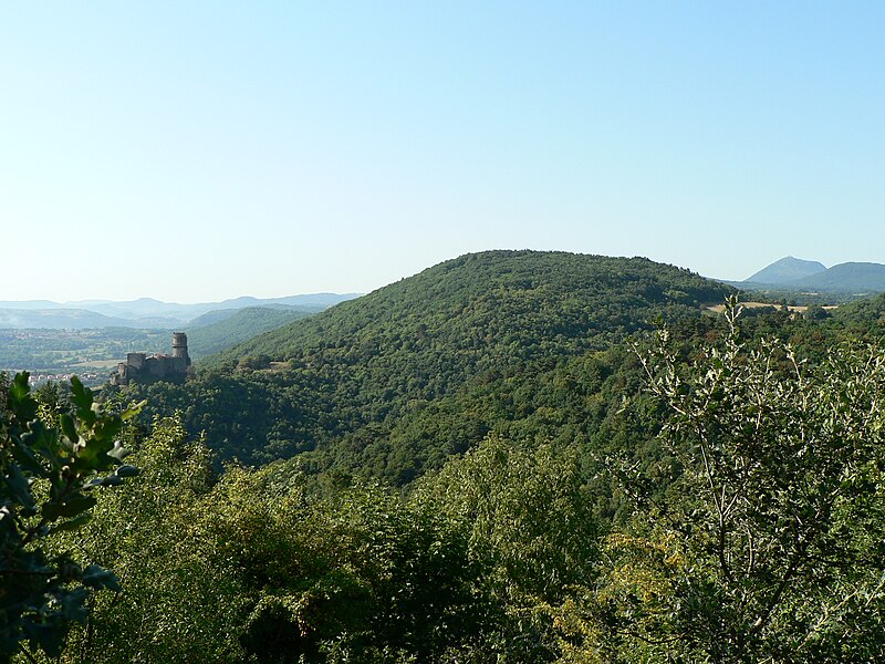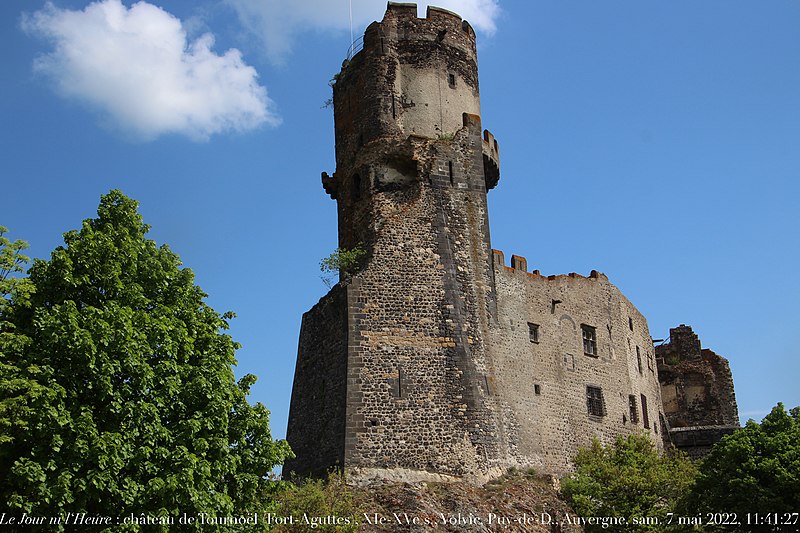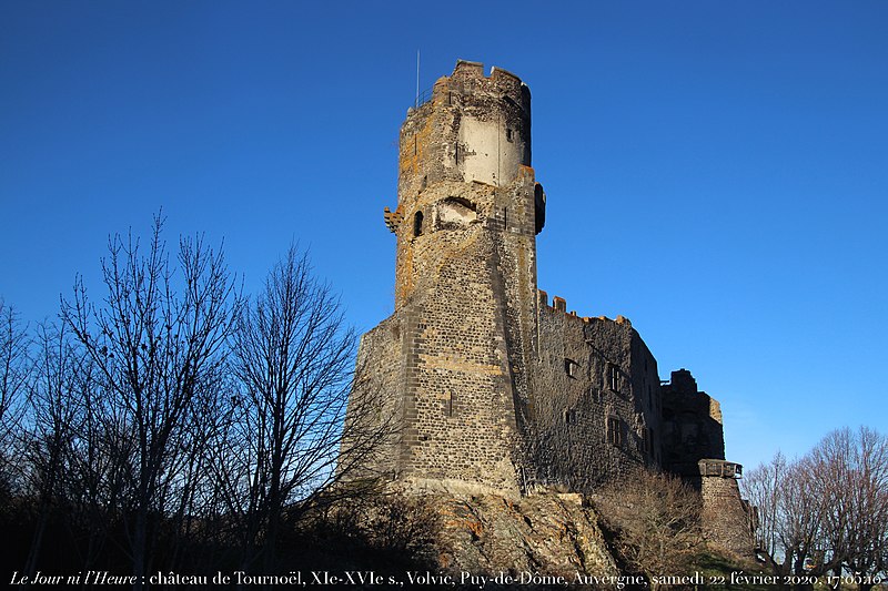 Le château fort de Tournoël, situé à Volvic dans le Puy-de-Dôme, est classé monument historique depuis la liste de 1889. Il occupe un éperon rocheux à 594 m d'altitude, sur un contrefort du puy de la Bannière, à 1,5 km au nord de Volvic, et domine la plaine de la Limagne. Sa position volcanique isolée offrait une protection naturelle et permettait de surveiller la région, notamment la ville marchande et judiciaire de Riom et l'abbaye de Mozac ; dans un rayon d'environ cinq kilomètres, Tournoël constituait ainsi un contre-pouvoir seigneurial face aux autorités consulaires, royales et religieuses. Dès le début du XIIIe siècle Guillaume Le Breton le décrivait comme « inexpugnable », en raison de ses fortes pentes, de ses vallées profondes, de ses murs et tours multipliés, de sa garnison et de ses provisions. Le nom « Tournoël » dérive du gaulois Turno ialon, « la hauteur au-dessus de la plaine » ; les formes écrites varient du XIe siècle au XIXe siècle selon les documents.