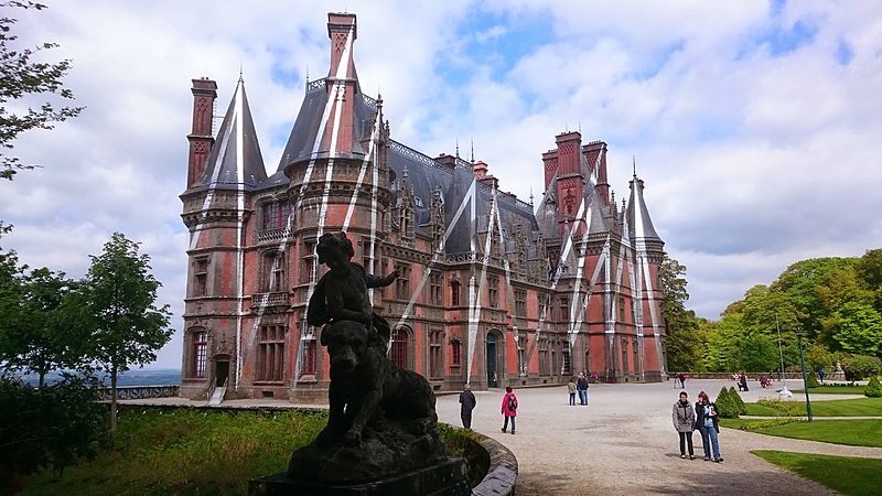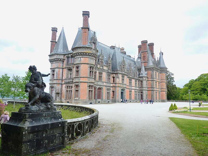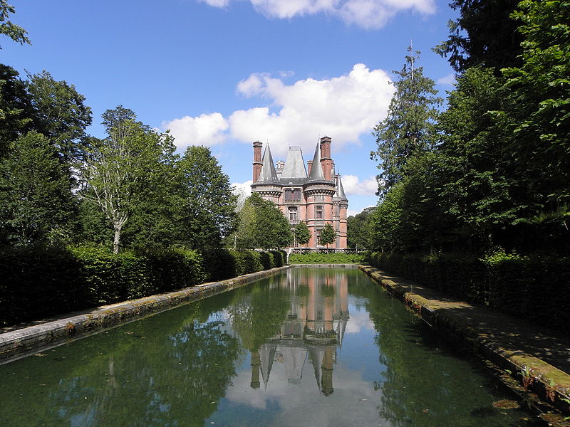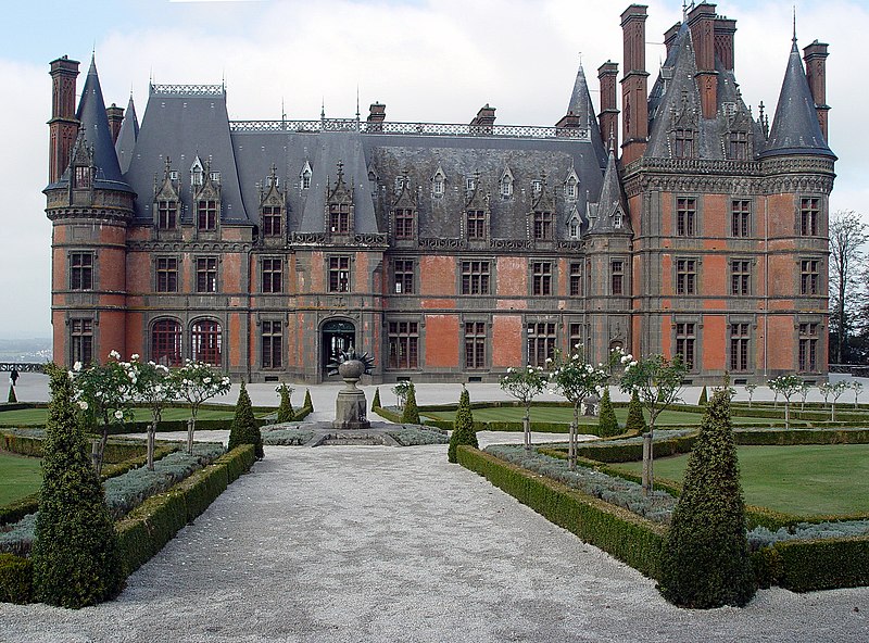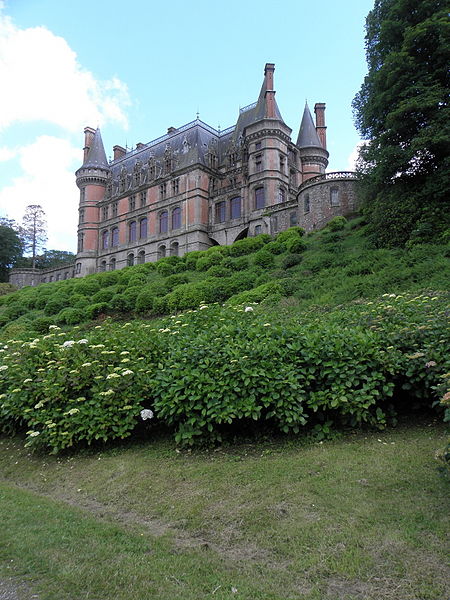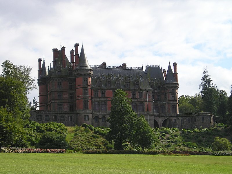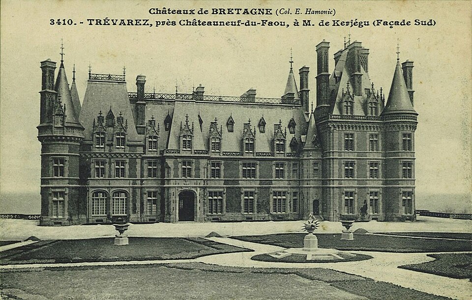 Le domaine de Trévarez, situé à Saint-Goazec dans le Finistère, domine la vallée de l'Aulne et a été construit de 1893 à 1907 non loin d'un ancien manoir. Son commanditaire, James de Kerjégu, ancien diplomate et président du Conseil général, confia la réalisation à l'atelier parisien dirigé par Walter-André Destailleur, aboutissant à des constructions exécutées avec un grand soin. Le château, élevé en kersantite et en brique, illustre un style éclectique mêlant influences victoriennes, néogothiques et motifs de la Renaissance, et rappelle certaines grandes résidences urbaines de l'époque. La majeure partie du chantier fut confiée à des entreprises parisiennes, tandis que la maçonnerie et la sculpture furent exécutées localement ; l'ouvrage allie savoir-faire traditionnel et techniques modernes comme la charpente métallique et les installations électriques. L'édifice était équipé des dernières innovations : ascenseurs, chauffage central, eau courante, électricité, serres chauffées et installations de cuisine très sophistiquées pour l'époque ; sa grille en fer forgé, œuvre d'Achille Busson, fut exposée et primée au Grand Palais en 1903. De vastes travaux de terrassement et d'aménagement paysager permirent de créer une plateforme en mi-pente, un étang et un parc à l'anglaise planté d'espèces exotiques importées. Le chantier, qui mobilisa une cinquantaine d'artisans, coûta presque cinq millions de francs-or. Du passé seigneurial subsistent le manoir remanié, la chapelle Saint-Hubert datée de 1699 et la fontaine Saint-Hubert. Sous la direction de James de Kerjégu, la vie au château fut brillante : réceptions, parties de chasse et un important personnel domestique bénéficiant d'installations jusque-là rares. Pendant la Seconde Guerre mondiale, le domaine accueillit des collections de musées dès 1939, fut réquisitionné par les forces d'occupation en 1940 et subit en 1944 d'importants dommages par bombardement, touchant notamment une aile, les cuisines et des salons de réception. Après une longue période d'abandon et de pillages, le domaine fut mis en vente en 1968 puis acquis par le Conseil général du Finistère, qui entreprit une restauration progressive ; le parc fut rouvert en 1971 et la toiture restaurée en 1993. Aujourd'hui seules certaines parties du château, principalement le rez-de-chaussée et une partie du premier étage, sont accessibles au public en raison du coût des travaux. Le parc, d'un grand intérêt botanique, rassemble des jardins réguliers et paysagers, des fabriques, serres, potager et vivier, la chapelle Saint-Hubert et un cimetière préhistorique ; il abrite de vastes collections végétales, notamment une Collection nationale des cultivars de Rhododendron et de nombreuses camélias centenaires, ainsi que de grands arbres exotiques. Les tracés du parc ont été reconstitués et réaménagés depuis 1968, organisés en secteurs thématiques, et enrichis après l'ouragan de 1987 par de nouvelles allées et aménagements. Le domaine est inscrit au titre des monuments historiques en 2009 et a reçu les labels « Patrimoine du XXe siècle » et « Jardin remarquable ». Depuis 2006, Trévarez fait partie de l'établissement public de coopération culturelle « Chemins du patrimoine en Finistère ». Le domaine accueille des manifestations culturelles et horticoles et reste un site majeur du patrimoine breton ; en 2024 il figure parmi les candidats à l'élection du monument préféré des Français.