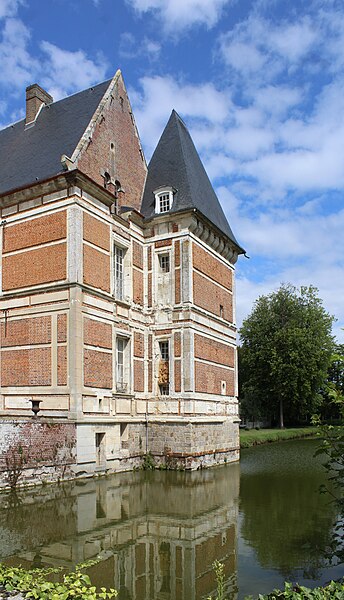 Le château de Troissereux, situé sur la commune de Troissereux (Oise, Hauts-de-France), est un édifice de style Renaissance édifié principalement aux XVe et XVIe siècles sur l’emplacement d’un château du XIIe siècle. Construit en brique et calcaire blanc, il présente un corps en L composé d’une aile principale, d’une aile basse (galerie) et de la Tour du Temps, qui abrite un escalier à vis en brique et une horloge médiévale classée au sommet de laquelle se dresse une girouette astrale. Le domaine comprend des communs, un ancien moulin et trois moulins implantés sur la rivière du Thérain. Le parc, qui s’étend sur 12 hectares et a été créé au XVIe siècle, est également classé au titre des monuments historiques ; il est divisé en trois parcelles dont deux sont boisées et la troisième forme une grande pelouse. On y trouve un arboretum regroupant 45 espèces d’arbres et d’arbustes, des platanes âgés de 150 à 400 ans, des cyprès chauves plantés en 1786, ainsi que des douves, un grand canal de 330 mètres et un petit canal. Ce jardin, attribué à Bernard Palissy, est parfois présenté comme un exemple de « jardin protestant » qu’il aurait proposé. Le parc constitue par ailleurs une réserve ornithologique où l’on observe hérons, cygnes, oies et martins-pêcheurs, et il sert de lieu de passage à de nombreux oiseaux migrateurs. De nombreux éléments du château et du domaine ont fait l’objet de protections successives au titre des monuments historiques : le portail, les façades et toitures, la cour, les douves et les plans d’eau ont été classés par arrêté du 25 février 1983. Le même arrêté a porté l’inscription du grand escalier, de l’escalier à vis de la tour, du grand salon et de la salle à manger avec leur décor ; le parc et ses éléments ont été classés et inscrits par arrêté du 10 avril 1992, et diverses installations hydrauliques, le canal partiellement comblé et certaines parties des plans d’eau ont été inscrits le 23 septembre 2003. Le château est ouvert au public et plusieurs salles de l’aile principale sont accessibles à la visite, notamment la salle à manger, la bibliothèque, une chambre, le boudoir, le salon et l’escalier d’apparat. D’importants travaux de restauration des intérieurs ont été effectués en 1791.