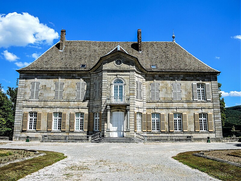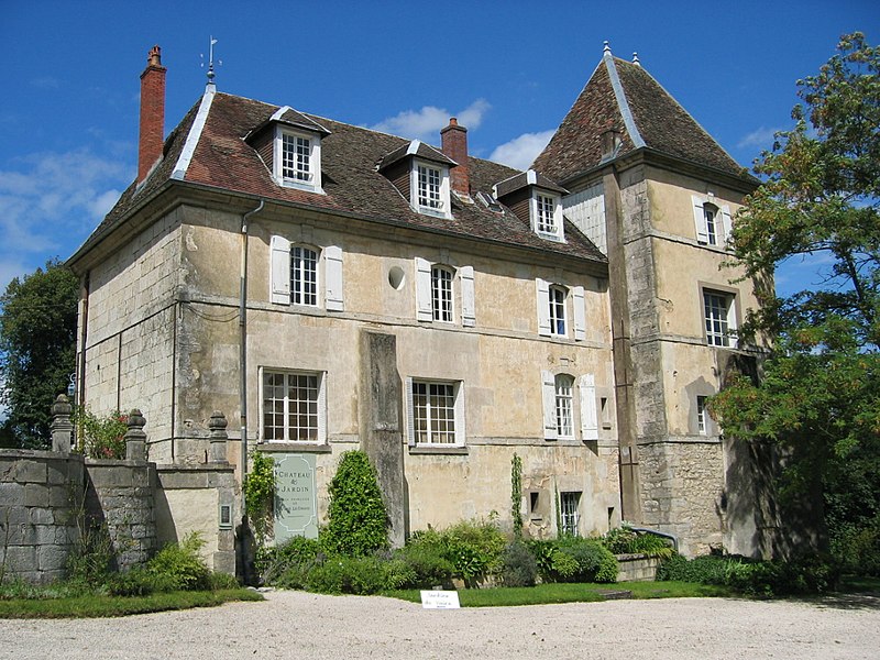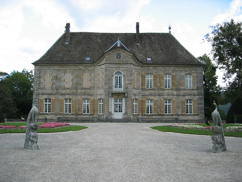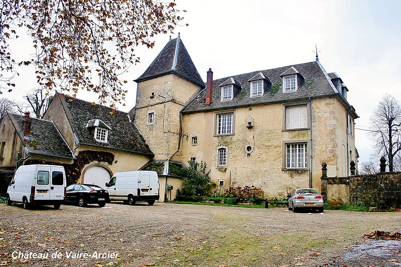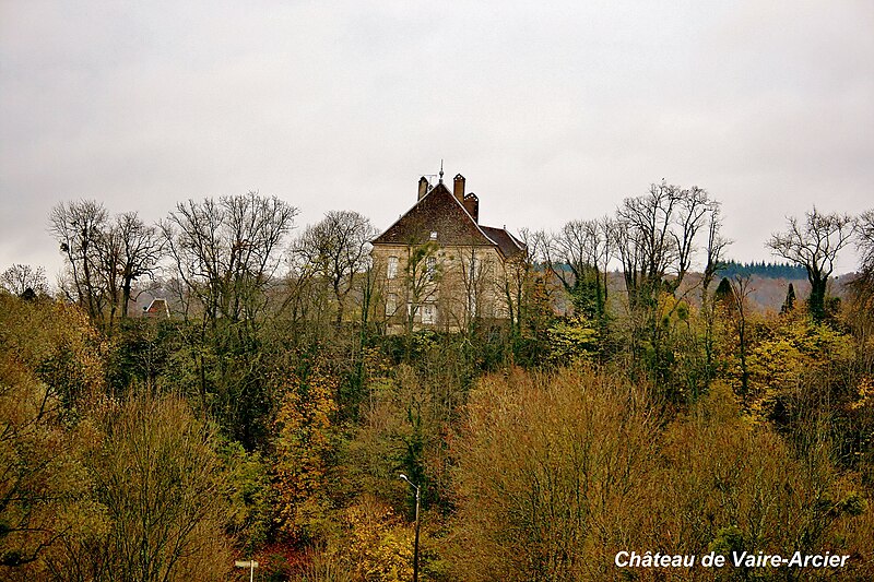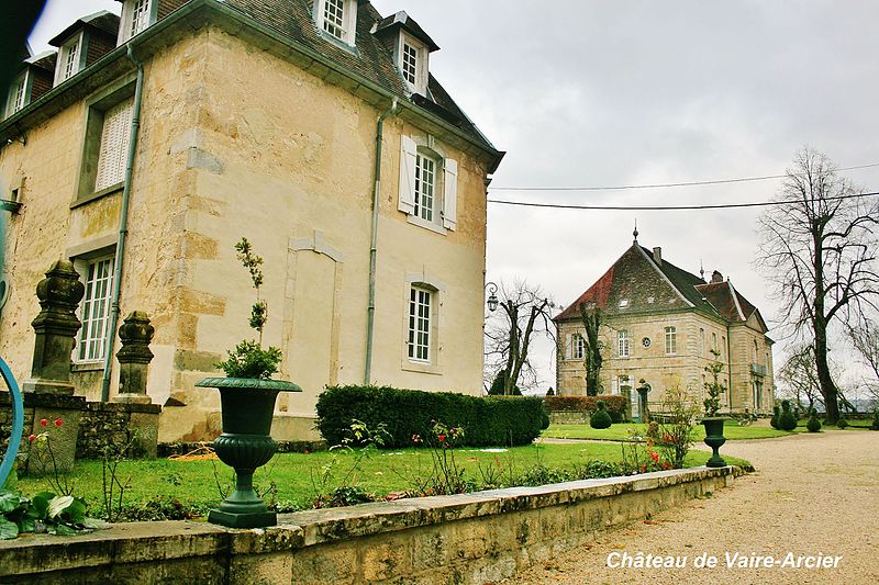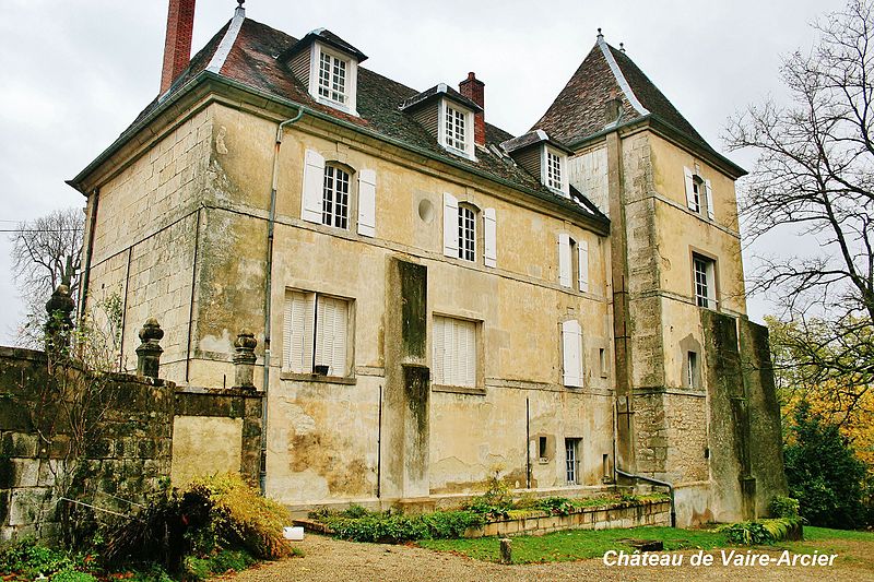 Le site est occupé depuis l'époque romaine : un castrum couronnait la butte rocheuse qui domine la vallée du Doubs, endroit où est édifié l'actuel château. Un château fort, attesté au XIe siècle, subsistait encore au XVIe siècle mais était en ruines en 1632. La seigneurie fut acquise par Gabriel Boisot, qui réaménagea une partie de l'ancien château pour compléter son hôtel urbain. Son fils, Jean-Antoine Boisot, fit construire le château actuel entre 1713 et 1718, en s'inspirant de modèles parisiens tels qu'Issy et Champs-sur-Marne. Au milieu du XVIIIe siècle, une nouvelle série de travaux fut menée sous la conduite de l'architecte Claude-Antoine Colombot. Après la Seconde Guerre mondiale, la société Boussac transforma le château en colonie de vacances. Une importante restauration a ensuite été conduite et, depuis 1992, le château, le parc et le jardin à la française sont ouverts au tourisme durant l'été. De style classique, le bâtiment présente un corps de logis avec avant-corps central, un étage sur sous-sol et des combles éclairés par des lucarnes sous une toiture de tuiles plates. Les façades, soigneusement traitées, donnent à l'ouest sur le parc et ses bassins; au rez-de-chaussée subsistent des pièces lambrissées et des cheminées. L'accès se fait par un portail encadré de deux pavillons symétriques menant à une terrasse qui offre une vue dégagée sur le bourg de Vaire et la vallée du Doubs. Le jardin se développe devant le logis en trois terrasses centrées par deux bassins, ornées de parterres, de boulingrins et d'ifs taillés, et se prolonge par un jardin régulier. Le château, le parc et les jardins sont protégés au titre des monuments historiques : les premières inscriptions datent de 1985, les classements ont été prononcés en 2011-2012 et les jardins ont été inscrits en 2012.