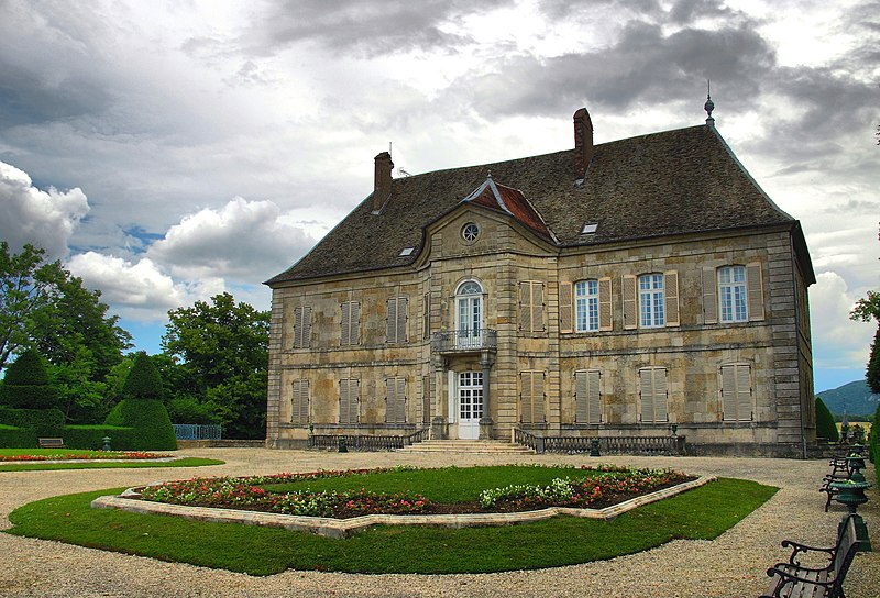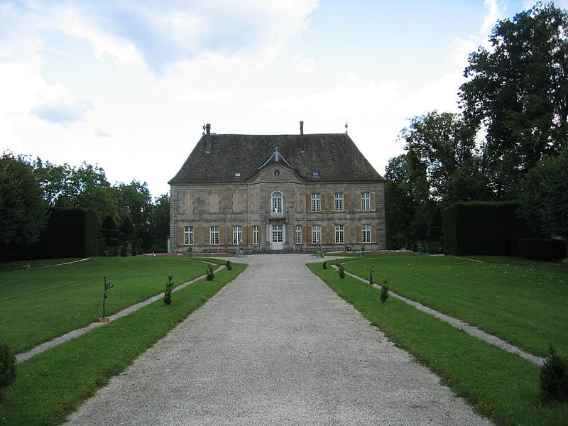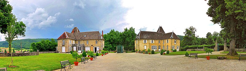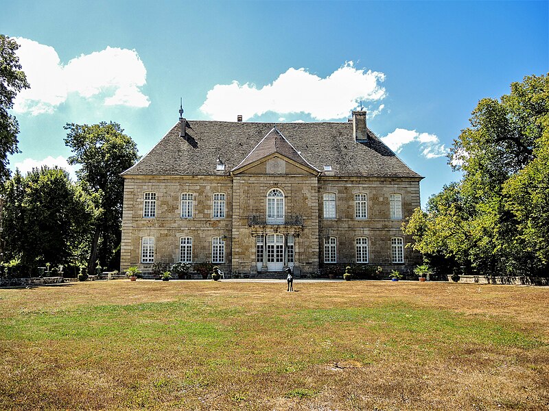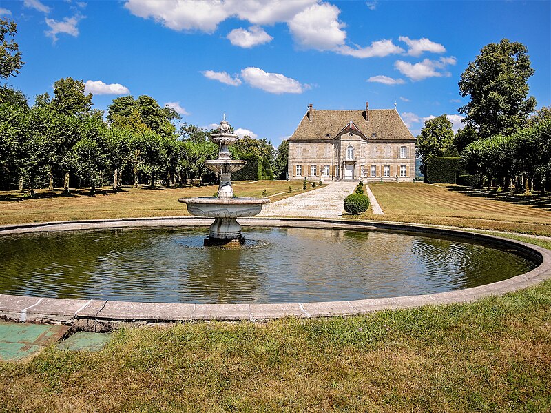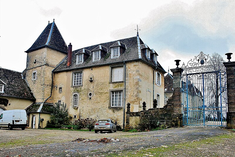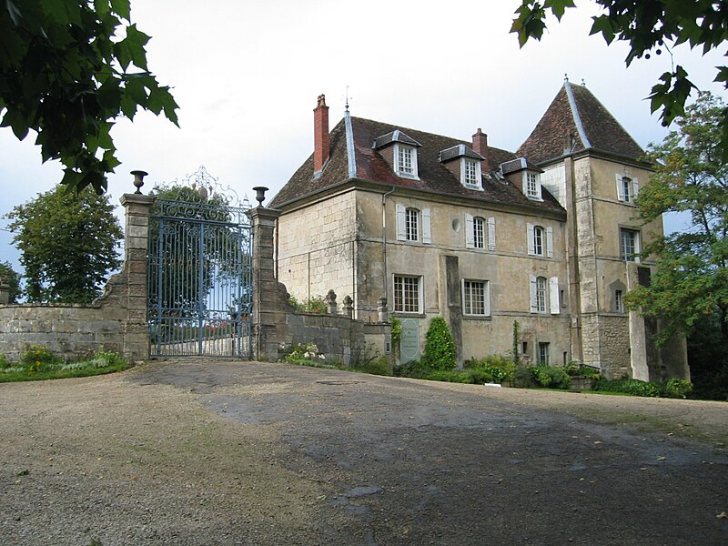 Le site est occupé depuis l'époque romaine : un castrum couronnait la butte rocheuse qui domine la vallée du Doubs, endroit où est édifié l'actuel château. Un château fort, attesté au XIe siècle, subsistait encore au XVIe siècle mais était en ruines en 1632. La seigneurie fut acquise par Gabriel Boisot, qui réaménagea une partie de l'ancien château pour compléter son hôtel urbain. Son fils, Jean-Antoine Boisot, fit construire le château actuel entre 1713 et 1718, en s'inspirant de modèles parisiens tels qu'Issy et Champs-sur-Marne. Au milieu du XVIIIe siècle, une nouvelle série de travaux fut menée sous la conduite de l'architecte Claude-Antoine Colombot. Après la Seconde Guerre mondiale, la société Boussac transforma le château en colonie de vacances. Une importante restauration a ensuite été conduite et, depuis 1992, le château, le parc et le jardin à la française sont ouverts au tourisme durant l'été. De style classique, le bâtiment présente un corps de logis avec avant-corps central, un étage sur sous-sol et des combles éclairés par des lucarnes sous une toiture de tuiles plates. Les façades, soigneusement traitées, donnent à l'ouest sur le parc et ses bassins; au rez-de-chaussée subsistent des pièces lambrissées et des cheminées. L'accès se fait par un portail encadré de deux pavillons symétriques menant à une terrasse qui offre une vue dégagée sur le bourg de Vaire et la vallée du Doubs. Le jardin se développe devant le logis en trois terrasses centrées par deux bassins, ornées de parterres, de boulingrins et d'ifs taillés, et se prolonge par un jardin régulier. Le château, le parc et les jardins sont protégés au titre des monuments historiques : les premières inscriptions datent de 1985, les classements ont été prononcés en 2011-2012 et les jardins ont été inscrits en 2012.
