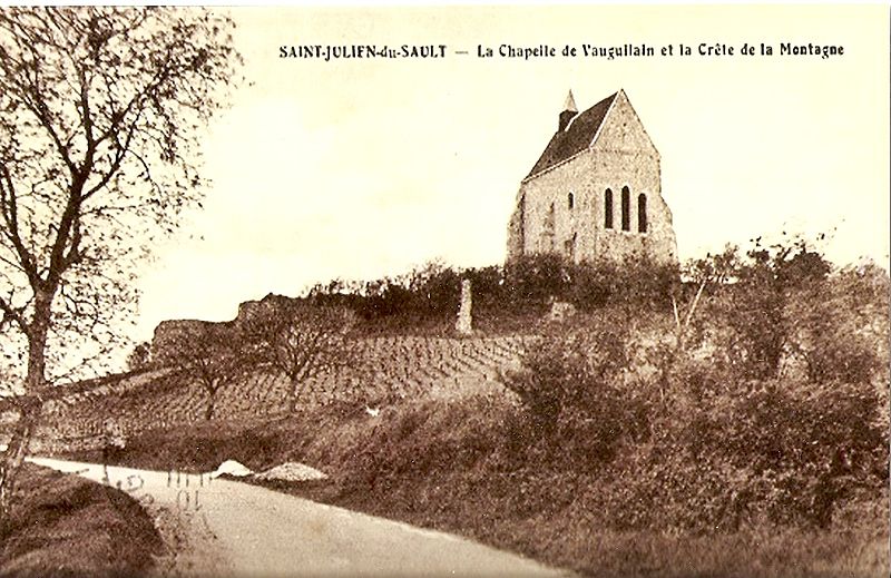 Le château de Vauguillain se dresse sur une hauteur dominant le bourg de Saint-Julien-du-Sault et la vallée de l'Yonne, dans le département de l'Yonne. Seuls subsistent aujourd'hui la chapelle dédiée à saint Julien et des vestiges des remparts. Le toponyme Vauguillain est apparenté à des formes telles que Vauquilin, Monguillin, Quilin ou Guillain, employées pour des lieux donnant sur une vallée. Le château, qui a pris le nom de sa chapelle, a été édifié à la fin du XIIe siècle, mais la découverte en 1850 d'un sarcophage gallo-romain près de l'ancien cimetière atteste d'une occupation ancienne et continue du site. L'enceinte comprenait la maison seigneuriale, reliée à la chapelle par une porte, ainsi qu'un puits creusé au nord de celle-ci; en 1492 l'archevêque Tristan de Salazar fit également construire des remises et des écuries. Le premier gouverneur connu par les sources est Symon de Jussemicourt en 1363. Pendant la guerre de Cent Ans, au XIVe siècle, les murs d'enceinte furent détruits puis relevés par les habitants; des reconstructions similaires eurent lieu en 1406 et en 1492. Le site servait de résidence aux archevêques de Sens; on peut encore voir les ruines de l'ancienne enceinte et la grosse tour ronde dite "tour Baron", autrefois reliée à une tour carrée. Le censier de 1521-1522 décrit le château au centre d'un réseau de chemins vers Verlin et Précy, entouré de sept maisons et d'un emplacement à bâtir, avec des vignes qui dégagent la vue sur d'éventuels assaillants et une pente de 70 mètres rendant l'accès difficile. Démantelé en 1630 en application de l'ordonnance royale de 1626, il fut abandonné, mais la chapelle continua d'être entretenue par les villageois jusqu'à la fin du XVIIIe siècle. Les restes de l'enceinte ont été inscrits au titre des monuments historiques en 1925 et la chapelle classée en 1959.