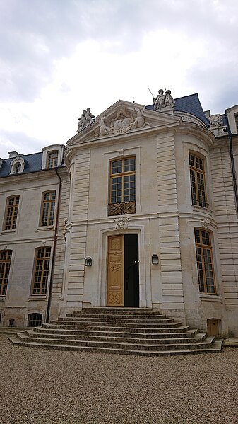 Le château de Vaux, parfois nommé château de Vaux en Champagne, est situé à Fouchères dans l'Aube, à proximité du parc naturel régional de la forêt d'Orient et à 20 km de Troyes. Bâti en pierre de taille blanche de Tonnerre, il comprend un étage sur rez-de-chaussée et soubassement, surmonté de combles à la Mansart à coyau prononcé, ponctués de lucarnes cintrées et d'œils-de-bœuf. Les façades, tant côté cour d'honneur que côté parc, présentent un avant-corps central et deux avant-corps latéraux en saillie. Côté cour d'honneur, l'avant-corps central, composé de trois pans dont deux cintrés, est surmonté d'une balustrade en pierre à décor d'anneaux entrelacés qui prolonge le fronton triangulaire orné des armoiries de Maupas et de son épouse, encadrées d'une draperie en baldaquin et soutenues par deux licornes en haut-relief faisant référence à Thibault de Champagne. Aux angles de la balustrade se trouvent des bas-reliefs représentant des trophées de chasse; le fronton est flanqué de putti et les clés des arcs du rez-de-chaussée sont richement sculptées, avec au-dessus de la porte centrale un masque acrotère figurant une tête d'homme barbu coiffée de la dépouille d'un lion, probablement Héraclès, encadrée par deux têtes de femme aux attributs distinctifs. Côté parc, l'avant-corps central rectiligne, précédé d'un escalier, présente trois arcades en plein-cintre dont les clés sont ornées d'une tête d'homme au centre et de têtes de femme sur les côtés; la balustrade sommitale est flanquée de vases décorés de têtes de bélier. Les façades latérales comportent deux rangées de trois fenêtres. L'intérieur conserve des éléments remarquables tels que boiseries, cheminées en marbre surmontées de trumeaux, parquets à la Versailles et tomettes.