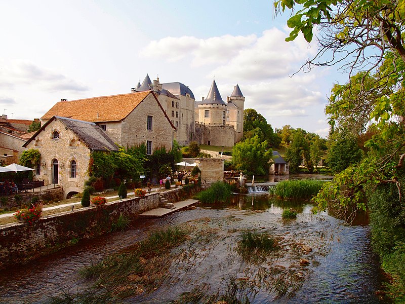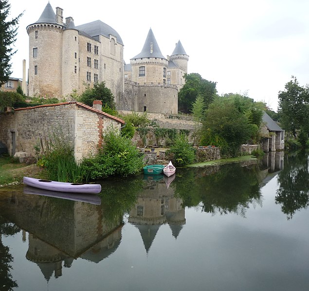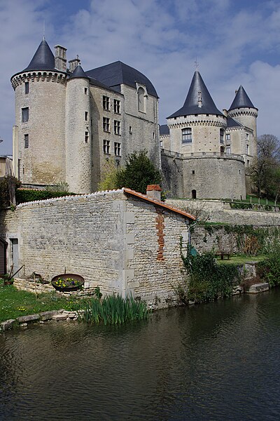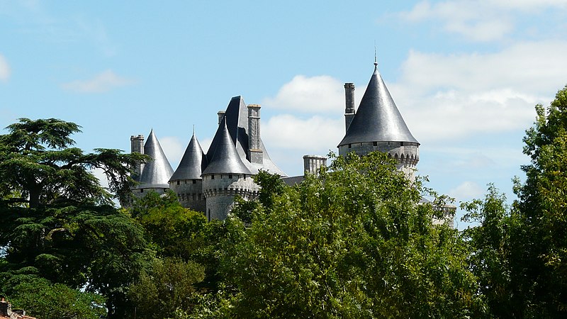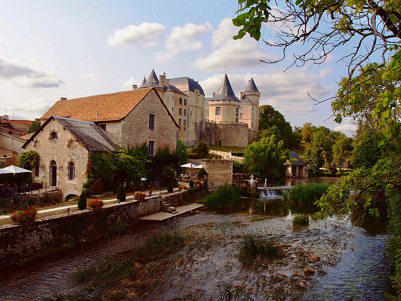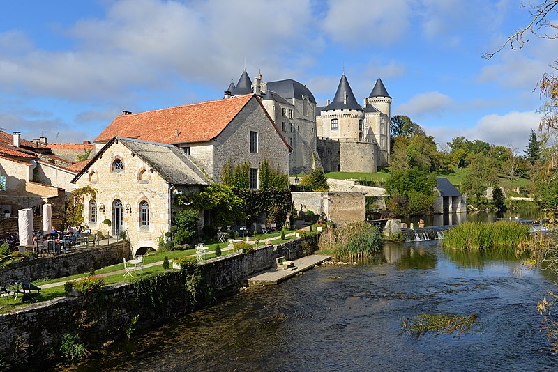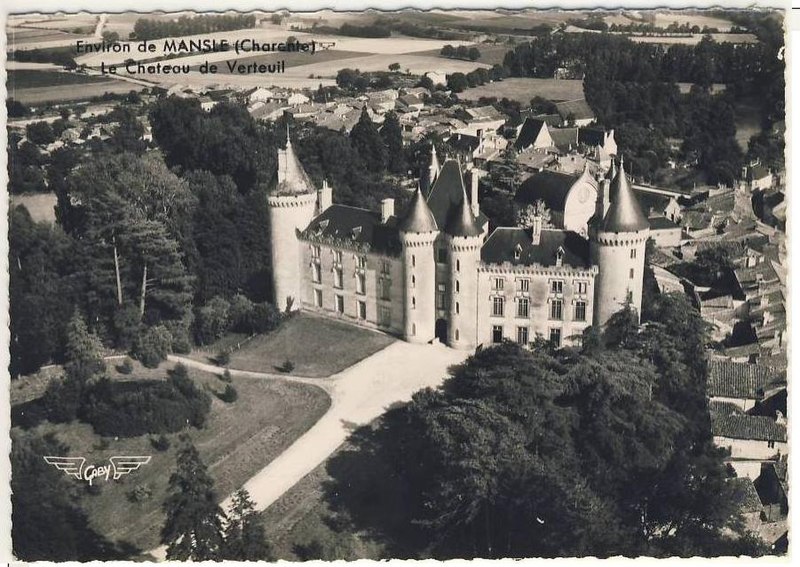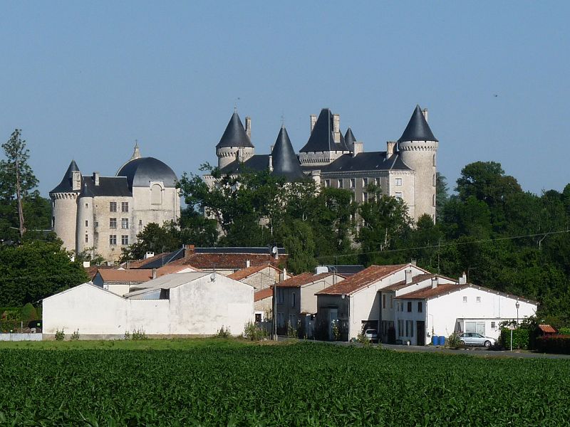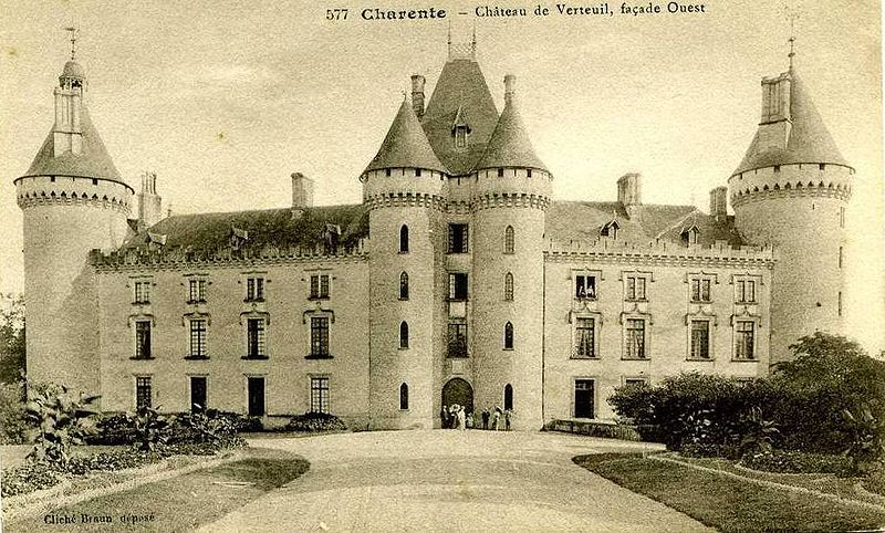 Le château de Verteuil est mentionné dès 1080 comme propriété de la famille de La Rochefoucauld, qui en fut presque toujours propriétaire. Implanté sur une position stratégique dominant le village et la vallée de la Charente, il contrôlait autrefois la route de Limoges à La Rochelle. Au Moyen Âge il subit sièges et prises : il est notamment pris en 1135, reçoit le roi Philippe VI en 1332, puis passe aux mains des Anglais après le traité de Brétigny ; il est finalement reconquis par Charles VII en 1442. Partiellement détruit au cours des conflits, l’édifice fut relevé sur l’emplacement du château féodal et renforcé au XVe siècle ; Guillaume de La Rochefoucauld obtint le droit de rétablir des défenses pour protéger le bourg. Aux XVIe et XVIIe siècles le château constitue un foyer d’importance pendant les guerres de religion : il accueille des synodes réformés et sert de point de ralliement aux troupes huguenotes, tout en recevant de nombreuses personnalités royales. Lors de la Fronde, en 1650, des troupes royales l’assaillent et démantèlent partiellement des éléments défensifs et des dépendances. La Révolution entraîne un incendie et des pillages en 1793 qui détruisent la grande galerie, des toitures, la chapelle et une grande partie des boiseries, la crypte restant intacte. Racheté et restauré au XIXe siècle dans un goût romantique, le domaine fait l’objet d’aménagements et de remaniements (fausses meurtrières, lucarnes, balustrades, retouches à la chapelle) menés par la famille, sous l’influence des goûts de la Restauration et du Second Empire. En 1893 Frantz Jourdain réaménage une tour en bibliothèque, transformant l’intérieur pour accueillir la collection familiale. Des fouilles et travaux conduits au XXe siècle ont mis au jour des vestiges enfouis des XIIe et XIIIe siècles, un escalier du XIIe siècle conduisant à une basse chapelle romane dont l’existence était inconnue avant 1958, ainsi que d’autres fondations. Les célèbres tapisseries de la Chasse à la licorne, retrouvées au XIXe siècle, furent restaurées, exposées au château puis vendues en 1923 à John D. Rockefeller Jr. et transférées au Cloisters. Pendant la Seconde Guerre mondiale le château héberge des troupes et des réfugiés, connaît une occupation partielle par les forces allemandes et sert de refuge à des résistants. Classé au titre des monuments historiques en 1966 pour ses façades, toitures et charpentes, le site a reçu une protection étendue en 2010 ; la cour et les terrains attenants peuvent receler des vestiges archéologiques. Conçu sur un plan triangulaire, l’ensemble conserve une grande tour d’entrée médiévale, plusieurs tours coniques, une tour isolée désormais bibliothèque, des murs remontant en partie au XIIe siècle et des traces d’une chapelle romane. Le parc, repensé au XIXe siècle, a perdu ses clôtures en pierres sèches et la luxuriance des jardins du XVIIIe siècle, mais quelques éléments subsistent (bosquets de buis, allées, bassins en terrasses, rocaille). Propriété familiale meublée et habitée jusqu’au début du XXIe siècle, la demeure a été mise en vente en 2020 puis cédée en 2021, une partie du mobilier ayant été dispersée ensuite.
