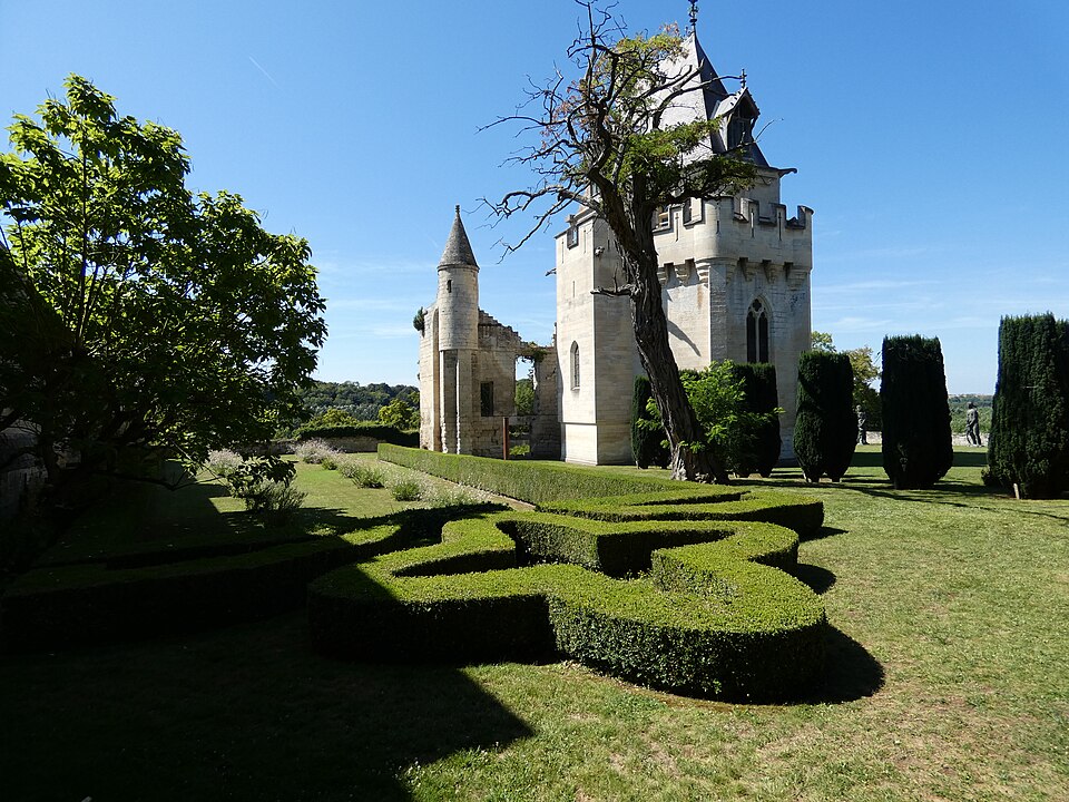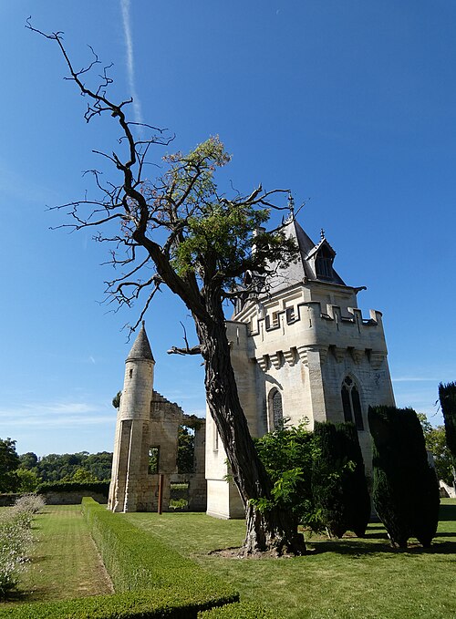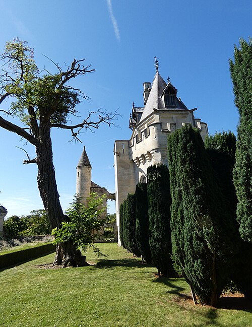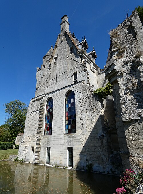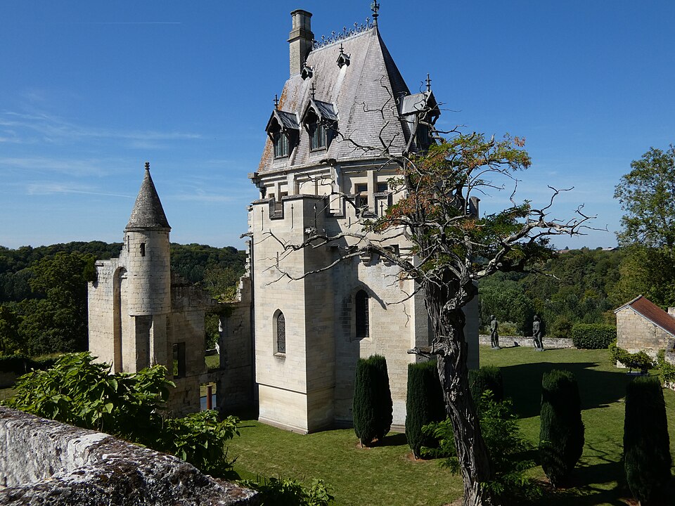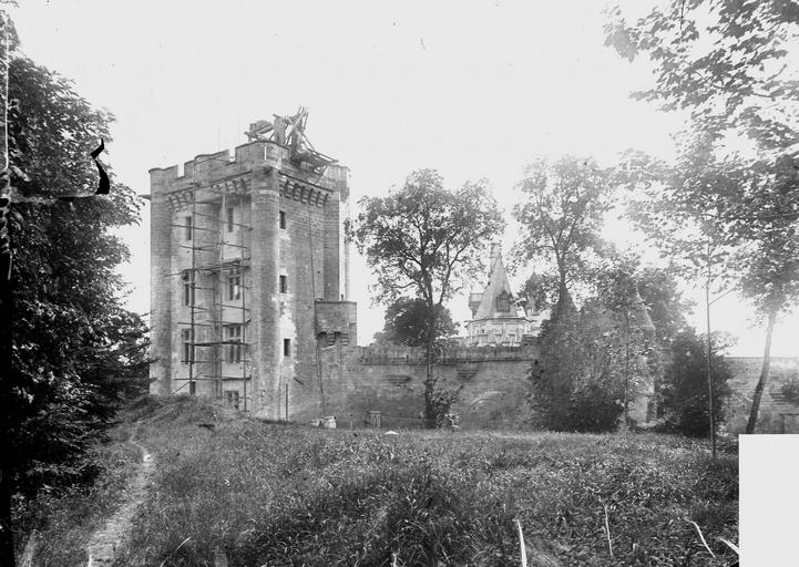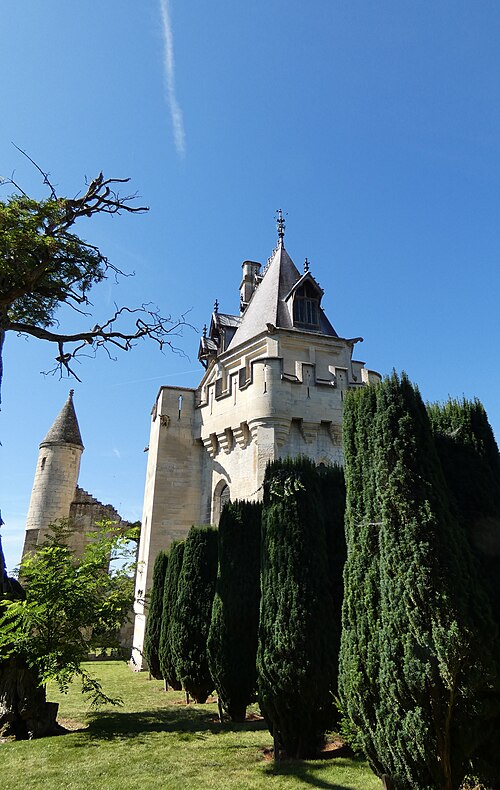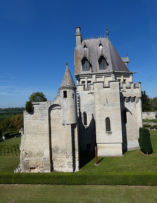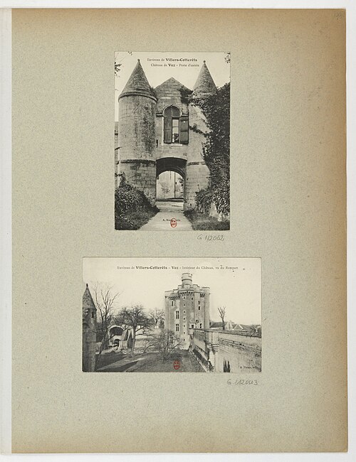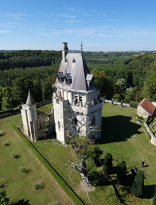 Le château de Vez, dominant la vallée de l'Automne sur la commune de Vez (Oise), est surtout connu sous le nom de donjon de Vez. Il s'élève au nord du village, en surplomb de la vallée, à proximité de l'entrée ouest du bourg. Les historiens anciens ont parfois prêté au site des origines princières non étayées par les sources archéologiques. Vez dépendait des comtes de Crépy‑en‑Valois puis passa au domaine royal lorsque Philippe Auguste annexa le Valois; la seigneurie fut ensuite donnée en fief à Raoul d'Estrées. Le premier château, probablement commencé à la fin du XIIIe siècle, fut incendié lors de la Grande Jacquerie en 1358 et rasé avant d'être reconstruit. Hector d'Estrées entreprit la reconstruction dès 1360 et fit creuser des douves; le logis issu de cette campagne, daté vers 1360‑1390, est aujourd'hui en ruines. Le donjon, de plan pentagonal, a été élevé entre 1390 et 1410 par Jean de Vez, probablement avec l'appui de son beau‑frère Robert de Saint‑Clair, et il a un programme essentiellement résidentiel. Si le duc Louis d'Orléans n'en fut jamais propriétaire, la qualité de l'architecture incite à penser que Jean de Vez fit appel à un architecte de l'entourage royal ou ducal, peut‑être Jean Lenoir. Le donjon associe un carré auquel est adossé, au sud, un triangle isocèle; il est flanqué de tourelles circulaires et d'une tour d'escalier angulaire abritant l'escalier en colimaçon. L'empreinte au sol mesure environ 17 m du nord au sud et 8,60 m d'est en ouest; la hauteur atteint près de 30 m et l'édifice comprend quatre étages habitables séparés par des planchers en bois. L'accès actuel se fait de plain‑pied depuis l'enceinte, à côté de la tour d'escalier; l'entrée originelle passait par cette tour. Les pièces, généreusement éclairées par des fenêtres à meneaux et croisillons, ont vu ces baies agrandies lors de la restauration du début du XXe siècle. L'intérieur a été profondément remanié lors de ces travaux, si bien que peu d'éléments anciens subsistent en l'état. Au‑dessus du dernier étage, une terrasse remplace la toiture primitive; le chemin de ronde repose sur une ceinture de mâchicoulis finement moulurés, qui constituent les seuls éléments défensifs véritables du donjon. Le crénelage actuel et la tourelle de guet prolongeant la tour d'escalier résultent d'interventions effectuées au début du XXe siècle selon un dessin publié par Eugène Viollet‑le‑Duc. Le donjon est implanté à l'extrémité orientale d'une enceinte en losange d'environ 70 m sur 63 m; la courtine sud‑est, contemporaine du donjon, partage le même soin d'exécution alors que les autres courtines sont postérieures et hétérogènes. La courtine nord‑est présente une poterne flanquée de deux petites tours rondes et, en partie basse, des fentes qui semblent liées à l'évacuation des eaux plutôt qu'à un rôle militaire. La courtine sud‑est, soignée, présente un glacis et des mâchicoulis analogues à ceux du donjon; des encorbellements et balcons ménagent des plates‑formes sur le chemin de ronde. Une petite tour rectangulaire, dite « tour Jeanne d'Arc », subsiste dans la courtine nord‑ouest; l'attache de ce nom à l'héroïne relève d'une tradition locale. La chapelle, de plan hexagonal résultant de l'addition d'un trapèze et d'un rectangle, a été restaurée de façon très radicale sous Léon Dru au début du XXe siècle et présente aujourd'hui une physionomie éloignée de l'édifice d'origine. Elle est adossée au mur gouttereau nord de l'ancien logis, comporte au rez‑de‑chaussée un local de service et, à l'étage, la chapelle proprement dite éclairée par trois hautes baies en tiers‑point; un portail Renaissance y a été ajouté au XVIe siècle et Léon Dru a aménagé un caveau familial. L'ancien logis, construit pour Hector de Vez entre 1360 et 1390, comprenait deux niveaux chauffés par des cheminées superposées; il ne subsiste aujourd'hui que le mur gouttereau nord‑est et une grande partie du mur pignon sud‑est. Les façades présentent des échauguettes en encorbellement coiffées de toits coniques en pierre, des arcs de décharge et des moulures, traits cohérents avec une datation dans la seconde moitié du XIVe siècle. À la fin du XIXe siècle le château était partiellement en ruine; racheté en 1890 par Léon Dru, il fit l'objet d'une restauration inspirée par Viollet‑le‑Duc, et en 1904 il fut classé au titre des monuments historiques. En 1988 Francis Briest acquit le site; les propriétaires actuels, Caroline et Francis Briest, ont poursuivi des travaux et ouvert le lieu à l'art contemporain. Le parc, labellisé « jardin remarquable », comprend un jardin contemporain conçu par Pascal Cribier et accueille de nombreuses œuvres d'art moderne et contemporain, parmi lesquelles des bronzes, des installations et des vitraux, des sculptures monumentales et des interventions in situ dans la chapelle et le donjon. Chaque année des œuvres sont installées dans le donjon et les jardins, et des expositions d'art moderne et contemporain y sont régulièrement organisées. Le site se visite les dimanches et jours fériés de début avril à fin octobre, ainsi que tous les jours de début juillet à la mi‑septembre, de 14 h à 18 h, moyennant un droit d'entrée.