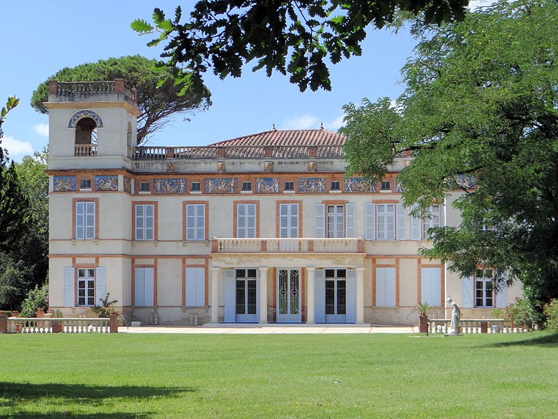Le château de Villebrumier, situé à Villebrumier entre Montauban et Toulouse, présente une histoire et une architecture résultant de plusieurs campagnes de travaux. L'édifice originel, bâti au début du XIXe siècle, a été érigé par Pierre Gerla entre 1809 et 1815, qui réutilisa les fondations d'un bâtiment agricole antérieur. Propriété de sa famille puis des Bénaïs jusqu'en 1877, il connut au cours du siècle des surélévations et des embellissements intérieurs et extérieurs. Cédé en 1877 au comte et à la comtesse de Marigny, il fut profondément transformé entre 1890 et 1908 par Jean de Marigny, avec la collaboration de l'architecte J. Rocher. Ces travaux comprirent le remaniement des façades, la surélévation des tours, la création d'un péristyle et l'ornementation par des frises en faïence polychrome de Gaston Virebent. Virebent signa également le décor d'une grande salle de réception, dont le plafond en faïence et la cheminée monumentale figurent parmi les éléments remarquables. L'épouse de Jean de Marigny réalisa des peintures murales sur des thèmes de chasse et de nature, et le château accueillit de nombreux artistes, dont le sculpteur Antoine Bourdelle. Après le décès de Jean de Marigny en 1927, le domaine passa à la famille du docteur Azam, puis à ses héritiers ; il fut parfois mal entretenu et servit d'hôpital temporaire pendant la Seconde Guerre mondiale. Dans les années 1960, une partie du parc fut exploitée comme verger et pour l'élevage de porcs, puis, en 1989, une portion fut cédée à la commune pour une maison de retraite. À partir de 1996, la famille Laporte entreprit d'importantes restaurations et extensions, et le château fut inscrit à l'inventaire supplémentaire des monuments historiques. Le plan de l'édifice est essentiellement carré, cantonné de deux tours en façade, et le rez-de-chaussée conserve un décor daté des années 1890, notamment une salle à l'italienne. On y trouve des mosaïques et décors en faïence de Gaston Virebent, tant à l'intérieur qu'à l'extérieur. Propriété privée, le château n'est pas ouvert à la visite courante mais accueille des manifestations scientifiques et des événements privés tels que concerts, séminaires et mariages.