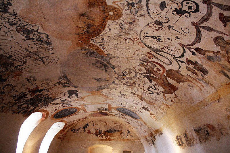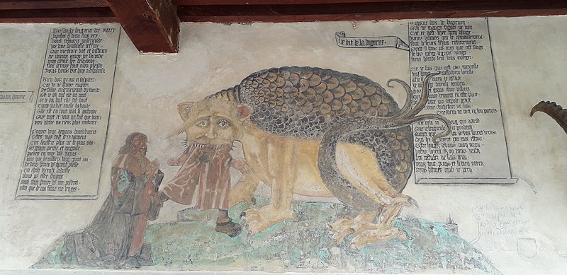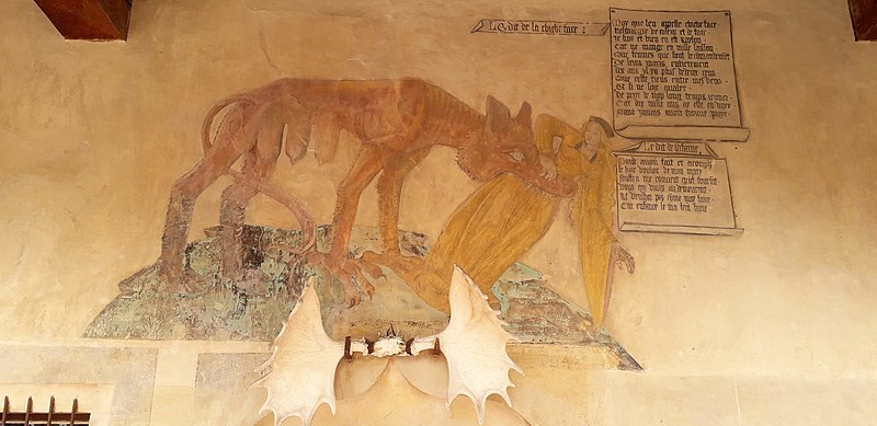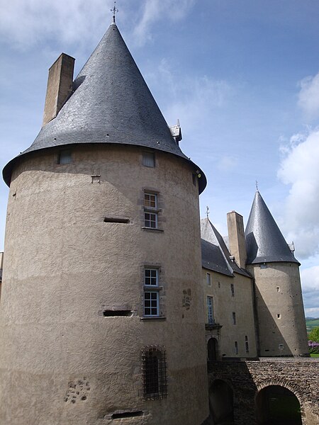 Le château de Villeneuve-Lembron est situé à Villeneuve, entre Clermont-Ferrand et Saint-Flour, dans le Puy-de-Dôme. Il a été édifié à la fin du XVe siècle pour Rigaud d’Aureille, bailli des montagnes d’Auvergne, maître d’hôtel des rois Louis XI, Charles VIII, Louis XII et François Ier et ambassadeur auprès de Maximilien d’Autriche. L’édifice se présente comme un ensemble formé de trois corps de logis flanqués de quatre tours cylindriques autour d’une cour carrée dont le quatrième côté est une terrasse, l’ensemble étant entouré de fossés. On accède à l’enceinte intérieure par une porte en anse de panier qui ouvre sur une basse cour. Le château, de caractère transitoire entre Moyen Âge et Renaissance, allie des éléments défensifs — tours rondes et larges fossés — à un aménagement intérieur conçu comme une résidence de plaisance. Sous Louis XIII, les ailes Est et Ouest furent construites et portes et fenêtres furent refaites ; la même période voit d’autres aménagements intérieurs. Les menuiseries et serrureries conservées dans les logis datent du XVe siècle. Les peintures murales comptent parmi les richesses du château : sous la galerie du rez-de-chaussée de la cour intérieure se lisent des fresques humoristiques comprenant notamment le « dit de l’astrologue », le « dit du vieux maître d’hôtel », le « dit de la Bigorne », le « dit de la Chiche-face » et une légende sur les maris trompés, ainsi qu’un portrait de Rigaud d’Aureille. Les successeurs de Rigaud d’Aureille enrichirent le décor à la Renaissance : la voûte des grandes écuries est ornée de peintures opposant le bien et le mal, et les embrasures des fenêtres présentent des personnages de la mythologie romaine. Au début du XVIe siècle, la terre de Villeneuve passa à la famille des Montmorin ; Gaspard de Montmorin fit ajouter des décors peints encore visibles dans la salle d’apparat et les grandes écuries. En 1643, Isaac Dufour, trésorier de France au bureau des finances de la généralité de Riom, acquit le domaine, transforma la cour intérieure, fit aménager une galerie à portique et décora les plafonds et les cheminées du premier étage. Par alliances et successions, le château revint ensuite aux Pellissier de Féligonde puis, par mariage, aux barons de Thuret, qui le conservèrent jusqu’en 1919. Le dernier propriétaire privé, Georges Tixier, fit don du château à l’État en 1937. Le monument, ses fossés, la porte d’entrée de la ferme voisine, la décoration intérieure et la salle voûtée peinte sont classés au titre des monuments historiques depuis le 25 mai 1926. L’État a confié la gestion du château au Centre des monuments nationaux, qui a engagé d’importants travaux de restauration et ouvert le site à la visite ; un ensemble de huit portraits de la famille Pellissier de Féligonde a été racheté pour réinstaller ces œuvres dans le salon blanc.