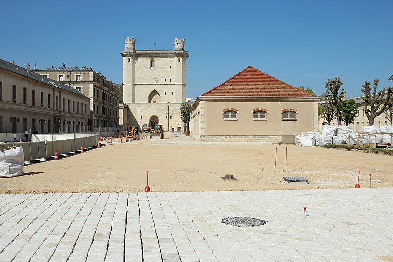 Le château de Vincennes, forteresse royale située à Vincennes à l'est de Paris, a été construit entre le XIVe et le XVIIe siècle. Il est le plus grand château fort royal subsistant en France et, en raison de la hauteur de son donjon, l’une des plus hautes forteresses de plaine d’Europe. Facilement accessible depuis Paris, il est desservi par la gare de Vincennes (RER A) et par la ligne 1 du métro à la station Château de Vincennes. Le site occupe la plus grande part d’un quadrilatère bordé par la rue de Paris au nord, le cours des Maréchaux à l’est, l’esplanade Saint-Louis au sud et l’avenue Carnot à l’ouest, avec des voies partant de l’esplanade vers Paris et à travers le bois de Vincennes. Implanté sur un plateau calcaire et non sur une éminence, le château était alimenté en eau par le ru de Montreuil, dont le trop-plein se jetait dans le lac de Saint-Mandé, et s’insérait jadis dans une forêt giboyeuse dont ne subsiste qu’une partie dans le bois de Vincennes. D’abord résidence de loisir médiévale aménagée sous Louis VII et Philippe Auguste, le site devint une forteresse à partir des travaux engagés par Philippe VI et poursuivis par Charles V, qui y transféra une part de son gouvernement. Le donjon, élevé au XIVe siècle et haut de 52 mètres, et l’enceinte monumentale avec ses portes et ses tours caractérisent la physionomie défensive du lieu. La Sainte-Chapelle de Vincennes, commencée à la fin du XIVe siècle pour abriter une relique, connut des chantiers intermittents et des achèvements sous les souverains suivants. Sous les Valois et la Renaissance, les bâtiments furent réaménagés par des architectes comme Philibert Delorme et accueillèrent la manufacture de porcelaine qui contribuera plus tard à la création de Sèvres. Louis Le Vau aménagea des pavillons et Le Nôtre dessina des jardins à la française ; le château fut cependant délaissé comme résidence principale lorsque Versailles devint le siège royal. À partir du XVIIe siècle le donjon servit de prison d’État pour des détenus de haute naissance, tandis que d’autres bâtiments accueillirent différentes fonctions industrielles et militaires. Révolution, Empire et XIXe siècle marquent la transformation du site en arsenal et en établissement militaire ; le château abrite depuis 1796 la section historique de la Défense. Le lieu a été le théâtre d’événements dramatiques : tentatives de démolition révolutionnaire, exécutions et fusillades, dont celle de Mata Hari en 1917, et des destructions et incendies liés aux combats de 1944 qui endommagèrent des bâtiments et des collections. Des campagnes de restauration engagées à la fin du XXe siècle ont conduit à la fermeture du donjon en 1995 puis à sa réouverture au public après consolidation en 2007 ; la chapelle royale a fait l’objet d’un important chantier après la tempête de 1999. Des fouilles programmées menées dans les années 1990 et des interventions ultérieures, dont celles de l’INRAP en 2016, ont mis au jour des éléments du manoir médiéval, des carreaux du XIVe siècle et de nombreuses marques lapidaires témoignant de l’organisation du chantier. Architectoniquement, la forteresse se présente comme une vaste résidence royale fortifiée : une enceinte quadrangulaire d’un peu plus d’un kilomètre protège un espace de plusieurs hectares, flanqué de portes et de tours, tandis que le donjon, isolé dans la cour, comprend des niveaux destinés aux réserves, aux appartements royaux et aux services. Aujourd’hui le château relève à la fois du ministère de la Culture et du ministère des Armées ; il est classé au titre des monuments historiques et abrite le service historique de la Défense. Un important programme de rénovation engagé depuis 1988 et des initiatives locales de gouvernance et de mécénat contribuent au rayonnement et à la valorisation du site.