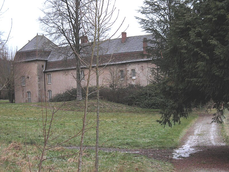 À peu de distance à l'est s'élève le château construit en 1885 par l'architecte Ernest Sanson, également auteur du château de Rochefort en Côte-d'Or. Son plan rectangulaire est cantonné d'une tour ronde et de deux tours carrées et s'organise autour d'un vestibule central abritant l'escalier. L'édifice, élevé en granite sur deux étages, repose sur un socle saillant; les murs présentent un petit appareil irrégulier ponctué d'un bandeau saillant entre chaque étage et des angles appareillés en harpe. Les décorations témoignent d'un grand soin dans l'exécution : encadrements de fenêtres surmontés d'un bandeau mouluré, petites moulures dans les ébrasements et consoles portant la cheminée en encorbellement de la tour ronde. Le toit de tuiles à forte pente, agrémenté de lucarnes à fronton triangulaire, de hautes cheminées, de crêtes et d'épis de faîtage, évoque le style du XVIe siècle.