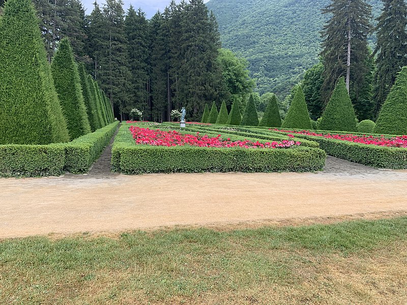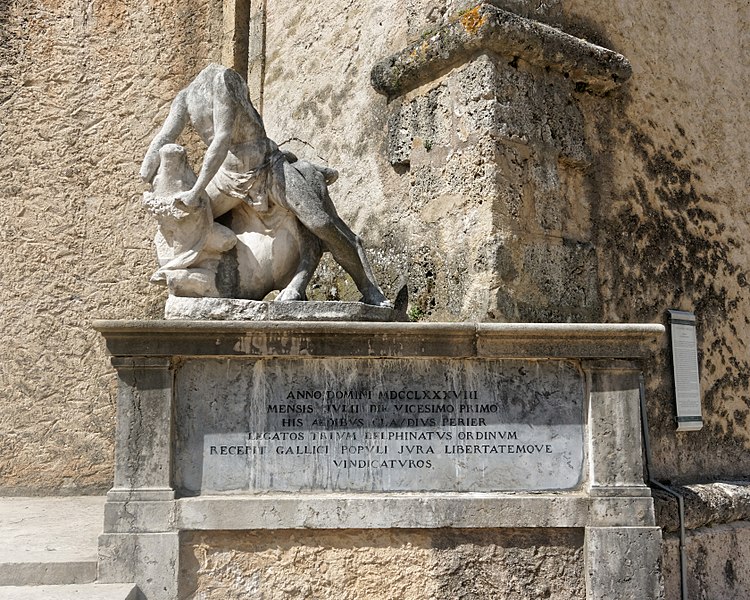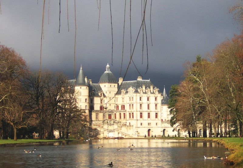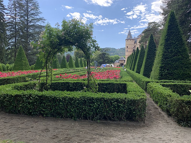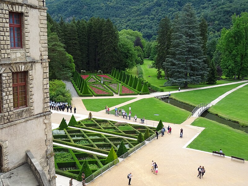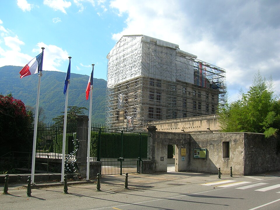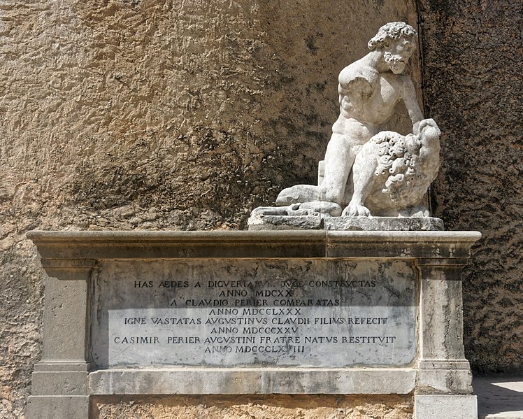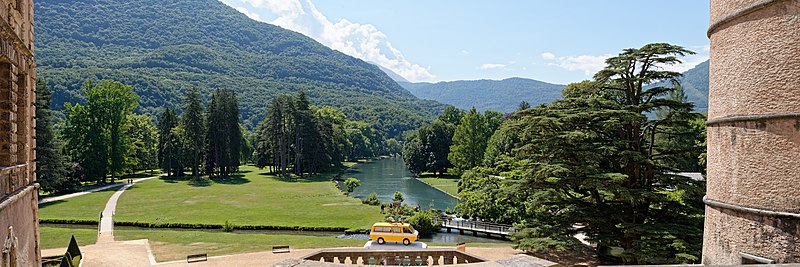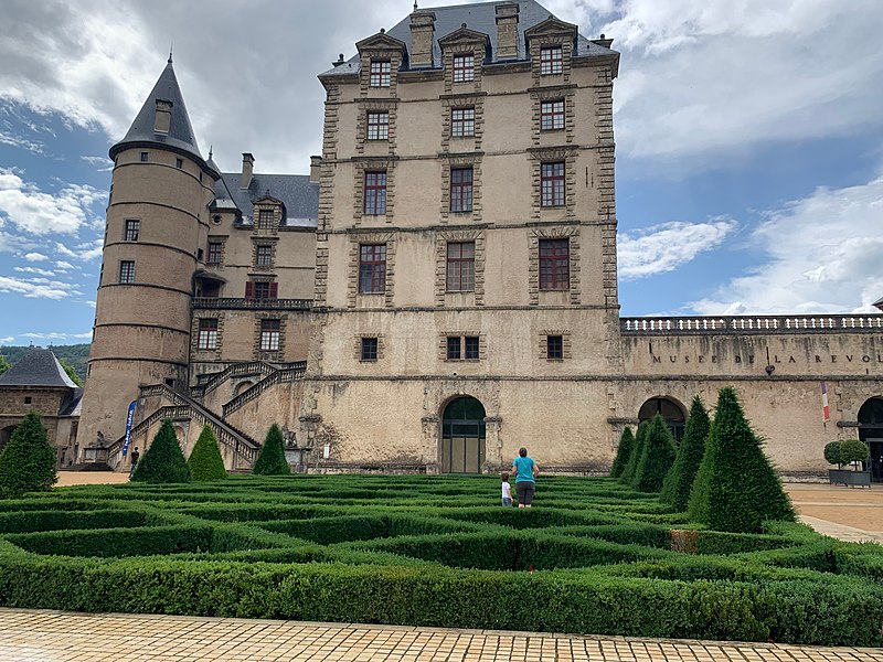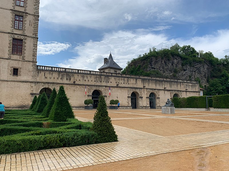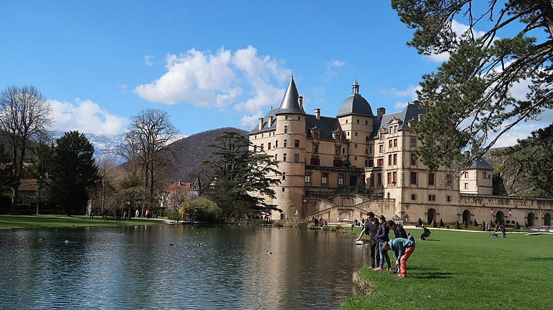Le Domaine du château de Lesdiguières, dit château de Vizille ou Domaine départemental de Vizille, est un parc de cent hectares à Vizille (Isère) où s'élève un château du XVIIe siècle abritant le musée de la Révolution française. Le site, situé au centre du bourg à environ 16 km au sud‑est de Grenoble, repose sur une colline percée d'un tunnel au début du XIXe siècle. Le château fut aménagé au début du XVIIe siècle par François de Bonne, premier duc de Lesdiguières, qui acquit les terres en 1593 et y fit ériger une demeure. À partir de 1600 le domaine fut agrandi sous la direction des architectes Pierre La Cuisse puis Guillaume Le Moyne; un parc à la française y fut créé, comprenant une pièce d'eau rectiligne et un grand canal de 800 mètres face au château. Le parvis était structuré par quatre parterres séparés par des canaux en croix autour d'un bassin ovale orné d'un jet d'eau et d'une statue d'Hercule. Le château resta la propriété successive des ducs de Lesdiguières puis, faute de descendance directe, passa à Paule Marguerite de Gondi puis aux membres de la famille Neufville de Villeroy, qui le vendirent en 1780. Claude Perier, banquier et industriel, acheta alors le domaine et installa dans une aile une manufacture d'impression sur tissu. En juillet 1788 il reçut dans la salle du jeu de paume l'assemblée des trois ordres du Dauphiné, réunion interdite à Grenoble et qui participa aux événements conduisant à la Révolution française. Le domaine resta dans la famille Perier puis passa, après diverses transmissions et une adjudication en 1862, à Henry‑Frédéric Fontenilliat, puis retourna dans la famille Casimir‑Perier. Un incendie en 1865 détruisit notamment la salle du jeu de paume et la grande galerie des batailles, qui furent définitivement démolies l'année suivante. En 1924 l'État fit l'acquisition du château pour préserver ce lieu d'histoire et de tradition républicaine, qui a accueilli des visites de personnalités comme La Fayette, Casimir Perier, Adolphe Thiers, Sadi Carnot et Jean Jaurès. Cinq présidents de la République y séjournèrent entre 1925 et 1960; le général de Gaulle y effectua un passage nocturne en octobre 1960. Le domaine fut cédé au conseil général de l'Isère en 1973; en 1983 les collections du Musée de la Révolution française y furent installées en vue du bicentenaire. Le château a également accueilli des événements institutionnels, comme la cérémonie des vœux du 13 janvier 2014 liée au regroupement intercommunal ayant préparé la création de la métropole Grenoble Alpes Métropole. Une légende locale rapporte que le mur d'enceinte aurait été bâti en une nuit par le diable pour un pacte avec le duc de Lesdiguières, que celui‑ci aurait déjoué en franchissant le mur à cheval au prix d'un morceau de queue arraché au quadrupède. Le parc et ses jardins, classés au titre des monuments historiques par arrêté du 23 août 1991, sont labellisés « jardin remarquable » depuis 2005 et attirent plus de 800 000 visiteurs par an. Ce classement comprend le mur de clôture, les clôtures de jardins, l'allée, la pièce d'eau et son escalier; la maison et le moulin proches ainsi que le mur d'enceinte ont fait l'objet d'une inscription en 1989. Dessiné au XIXe siècle et redessiné en partie à l'anglaise en 1834, le parc comporte une roseraie réaménagée après l'acquisition par l'État et qui accueille depuis 2008 une copie en bronze de la statue dite d'Hercule Lesdiguières, l'original étant conservé au musée de Grenoble. Les points d'eau sont alimentés par les sources de la Dhuy et de la Reine; le parc abrite plusieurs centaines de variétés d'arbres ornementaux, dont une soixantaine considérée comme rare, tels des cèdres et des liquidambars. Une prairie de soixante hectares sert d'enclos pour des hardes de cervidés — cerf élaphe, cerf Sika et daim — tandis que bassins et enclos accueillent cygnes, canards, bernaches du Canada, truites, carpes, chèvres, moutons, poules et trois paons bleus. Le parc comprend aussi une maison de l'apiculture et un parc animalier; les gestionnaires font face à une prolifération récente de pigeons. Depuis 2011 le parc reçoit tous les deux ans une biennale d'art contemporain qui installe des œuvres in situ; parmi les éditions figurent Invitation au labyrinthe de Marie Goussé (2011), Scansions de Mireille Fulpius (2013), Rose palace de Viviane Rabaud (2015), Filigrane du collectif FLCDa (2017) et, en 2019, Bien commun et Les sentinelles de Victoria Klotz ainsi que Mémoire d'eau de Cyrille André. Les archives du château et de la famille Perier représentent aujourd'hui 125 mètres linéaires de cartons conservés aux Archives départementales de l'Isère. Le domaine a également servi de lieu de tournage extérieur pour Jean Cocteau dans L'Aigle à deux têtes en 1948. Vizille se situe à 16 kilomètres de Grenoble et est desservi par des routes via Le Pont‑de‑Claix, Brié‑et‑Angonnes ou Uriage‑les‑Bains; un service d'autocars Transisère dessert la commune et un parking gratuit se trouve à l'entrée de Vizille.