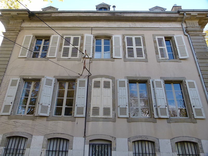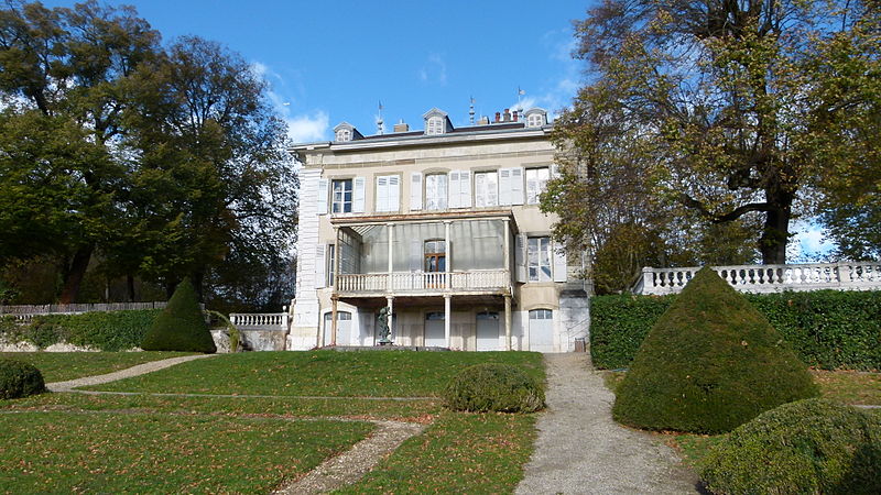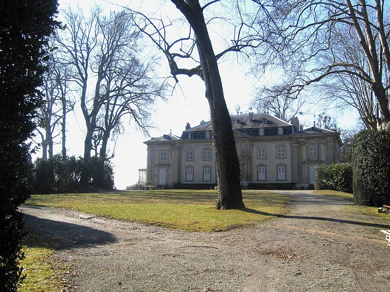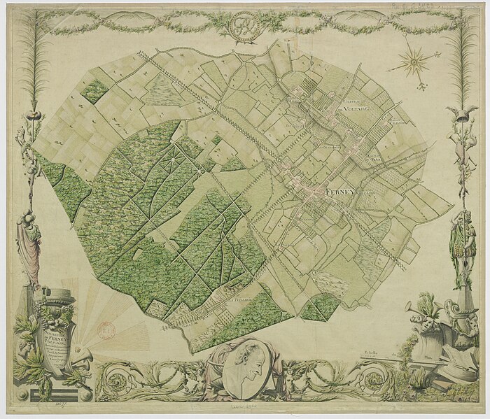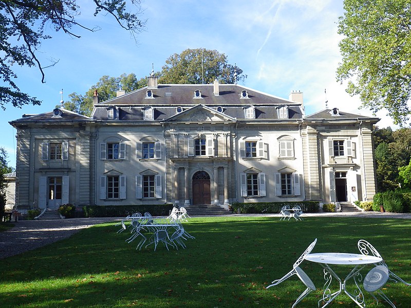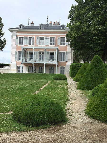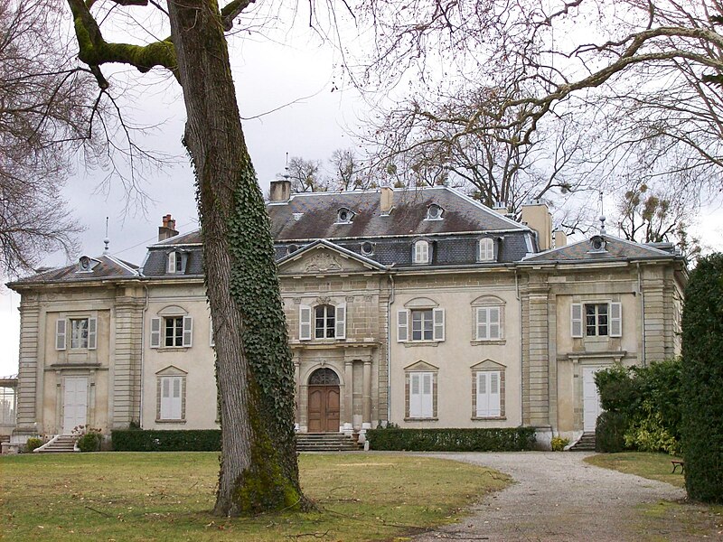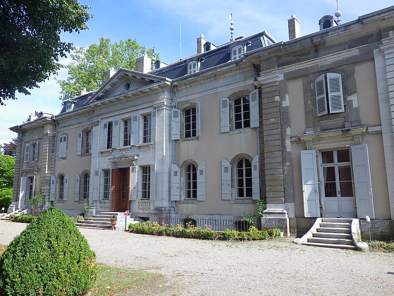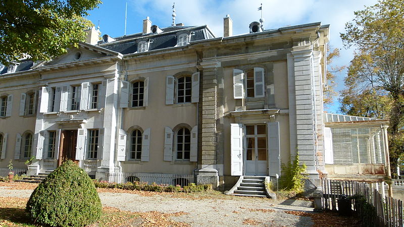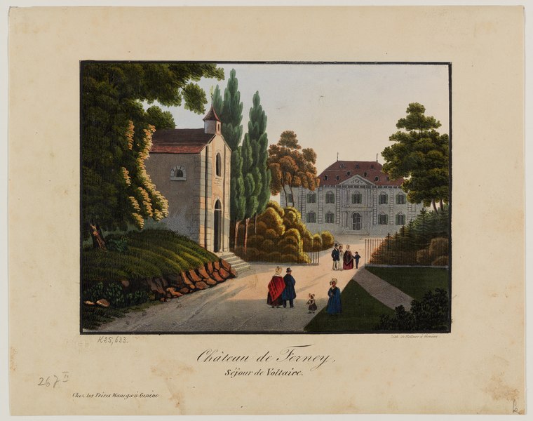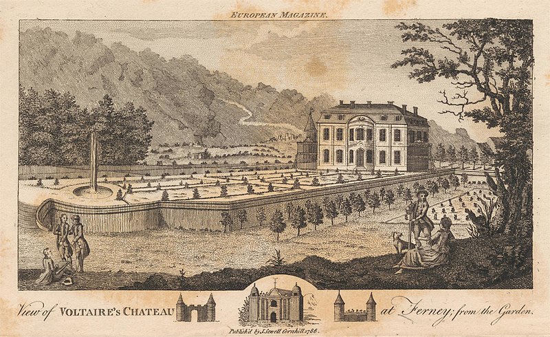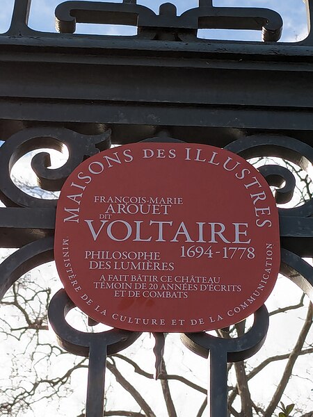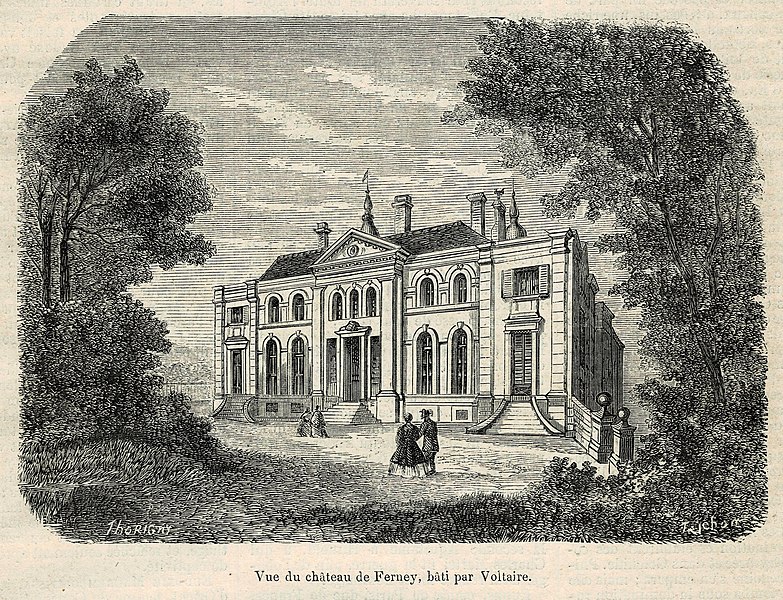 Le château de Voltaire, demeure du XVIIIe siècle située à Ferney‑Voltaire dans le Pays de Gex (Ain) près de la frontière genevoise, fut la résidence de François‑Marie Arouet dit Voltaire pendant vingt ans. Installé dès 1755 près du Léman, il acquit d’abord Les Délices puis racheta le domaine de Ferney en 1758 au nom de sa nièce et entreprit d’importantes transformations. Il fit raser la bâtisse antérieure, fit édifier le corps principal avec l’architecte genevois Jean‑Michel Billon pour s’y installer en 1761, puis fit ajouter des ailes par Léonard Racle en 1766, supprimant tours et enceinte et donnant au château son aspect extérieur général. Le rez‑de‑chaussée réunit les pièces de réception, au sud l’antichambre, le salon, la chambre de Voltaire et une bibliothèque d’environ 7 000 ouvrages, au nord le cabinet des tableaux et les appartements de Mme Denis ; les cuisines et réserves occupent le rez‑de‑jardin, les étages accueillent chambres d’invités, logements de domestiques et combles. Après la mort de Voltaire, Mme Denis vendit le domaine au marquis de Villette qui en fit un mémorial ; le mobilier fut dispersé et la bibliothèque rachetée par Catherine II pour Saint‑Pétersbourg. Au XIXe siècle, la famille Lambert adapta les intérieurs, réunissant notamment salle à manger et bibliothèque en un vaste salon avec véranda offrant une vue sur les Alpes, et transforma une partie des cuisines en laboratoire. L’État a racheté le château en 1998, son patrimoine a rejoint le ministère de la Culture, et le Centre des monuments nationaux, gestionnaire depuis 2007, a conduit des restaurations (orangerie 2012, chapelle 2013) puis une campagne exceptionnelle de 2015 à 2018 avant la réouverture du site. Voltaire fit également reconstruire la chapelle en 1761 et y apposa la plaque « Deo erexit Voltaire » ; il y fit édifier un tombeau pyramidal qui n’accueillit toutefois pas son corps. Aujourd’hui ouvert au public tout au long de l’année, le domaine propose visites historiques, expositions et manifestations culturelles, accueille des jardins en permaculture gérés par une association d’insertion et s’est engagé dans une démarche de conservation de la biodiversité (label refuge LPO).
