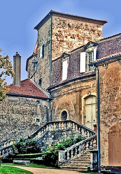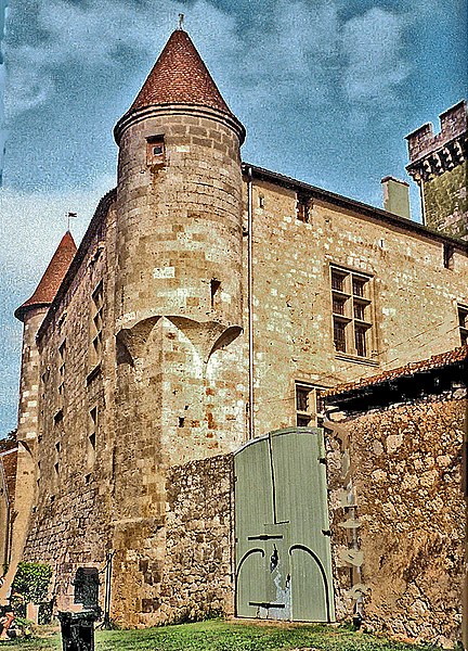 Le château de Xaintrailles, situé dans la commune éponyme du Lot-et-Garonne, est classé monument historique depuis 1840. Le site est occupé dès le début du XIIIe siècle : un castrum y est mentionné en 1259 et la basse-cour médiévale, le donjon et les talus des murs sud et ouest sont encore conservés, datables de la fin du XIIIe ou du début du XIVe siècle selon J. Gardelles. Le château a été bâti et transformé à plusieurs reprises, notamment sous l'autorité de Pothon (Jean Poton) de Xaintrailles, mort en 1461, et de ses successeurs. Les petits corps de logis forment trois côtés d'un carré ; aux angles se placent des tourelles et les extrémités de deux côtés parallèles sont occupées par deux tours carrées. Le bâtiment principal est centré par un donjon carré qui conserve ses mâchicoulis, bien que ses créneaux aient été détruits ; des ouvertures y ont été percées au XVe siècle. Le corps de logis nord, élevé au XVe siècle, comporte un étage principal, des combles et un toit en croupe à longs pans, couvert de tuiles plates ; comme le donjon, il est doté d'un escalier hors-œuvre. Le bâtiment sud, réaménagé pour accueillir les cuisines, présente un niveau d'habitation avec combles et tourelles ; l'aile ouest est encadrée par deux tours. À l'élévation sud, des tourelles en encorbellement sur trompe en éventail ont été ajoutées au XVIe siècle. Des fossés et un pont-levis sont mentionnés en 1539, bien que les fossés aient été comblés à la fin du XVIIIe siècle lors des aménagements d'Armand de Lau, marquis de Lusignan. Celui-ci a également créé un nouvel accès à l'ouest avec une cour de dépendances, aménagé l'escalier en U et ouvert le vestibule. Les intérieurs ont été largement refaits au XVIIIe siècle ; en 1824, des pièces du nord-est se sont effondrées. Les projets de restauration du donjon établis en 1843 par l'architecte départemental Gustave Bourières ont été partiellement réalisés et la pièce orientale de l'aile sud-est a été rénovée au début du XXe siècle dans un style inspiré de la fin du Moyen Âge. Les jardins, initialement organisés en terrasses successives avec un bois en étoile et une ménagerie aux XVIIe-XVIIIe siècles, ont été partiellement réaménagés au XIXe siècle en jardins à l'anglaise, s'étendant autour du château jusqu'aux limites du bois. Par transmission et mariages, la seigneurie passa aux Montesquiou en 1570 puis à la famille de Lau de Lusignan en 1724. Viollet-le-Duc a présenté le château comme un modèle de manoir-château fort français.