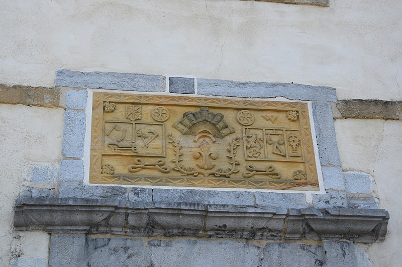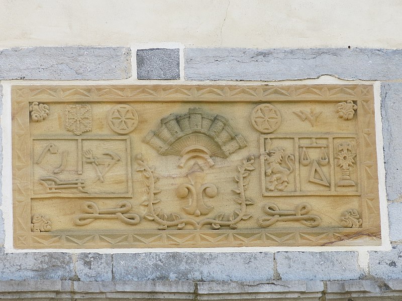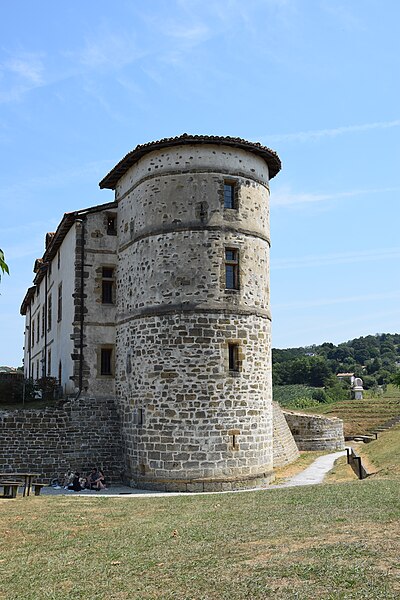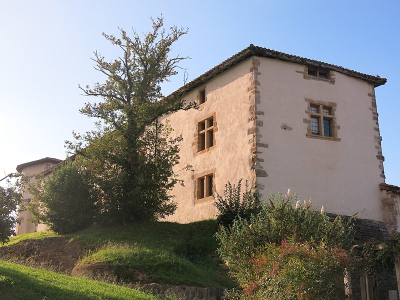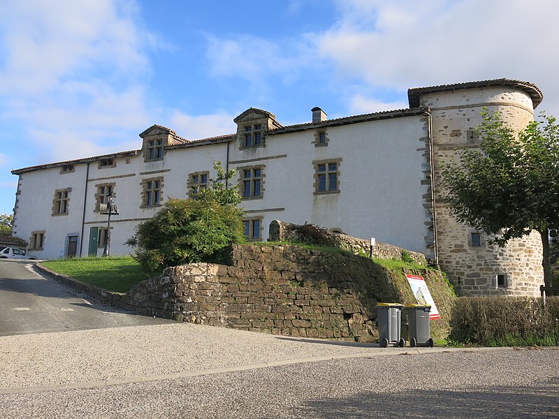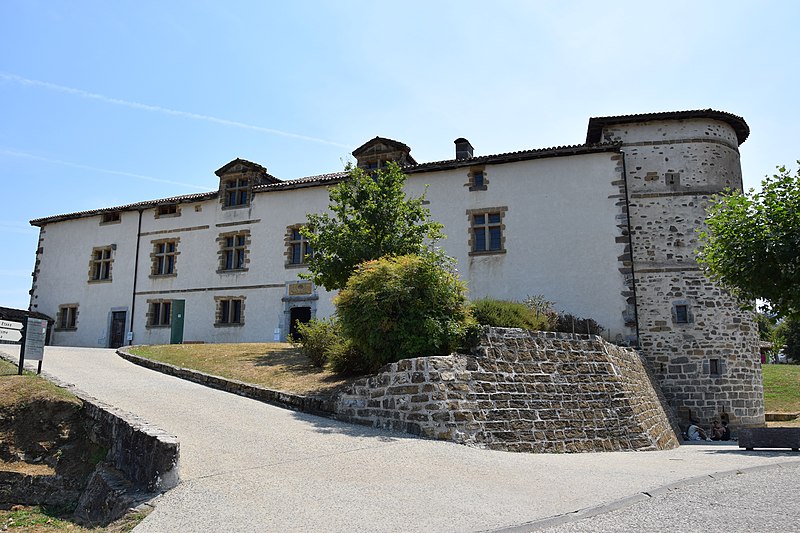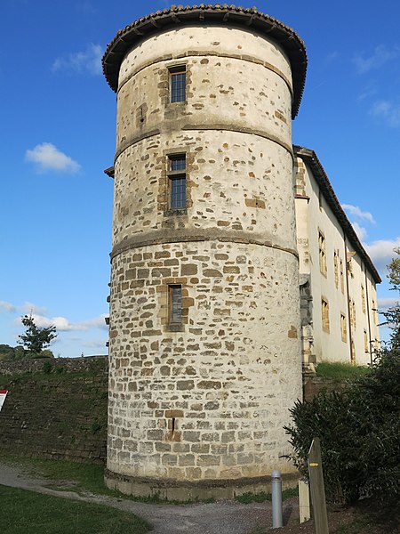 La famille est mentionnée dès le milieu du XIIIe siècle. Le château primitif fut remplacé, vers 1480, par une forteresse polygonale flanquée de cinq tours semi‑circulaires adaptées à l'artillerie. L'édifice fut détruit vers 1640 en représailles d'une trahison, puis un logis du XVIIe siècle fut bâti à son emplacement après 1640. Le bâtiment fut légué à la paroisse en 1694. Le château occupait tout le quartier qui entoure aujourd'hui ses vestiges, réduits à une tour d'angle de plan barlong se terminant en demi‑cercle. À partir du second niveau, trois bandeaux délimitent des étages de hauteur décroissante, le dernier servant de corniche ; aux troisième et quatrième niveaux, des bouches à feu s'ouvrent vers le nord‑ouest. Une échauguette partiellement détruite subsiste au second niveau. Dans son état actuel, la tour doit dater de travaux du XVIe siècle. Le corps de logis qui la prolonge présente au sud un long fragment de muraille, et au nord des frontons triangulaires qui doivent remonter au milieu du XVIIe siècle. La porte d'entrée, placée au centre, est encadrée de pilastres.