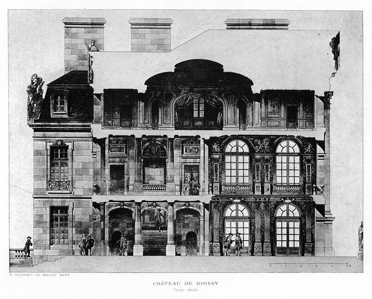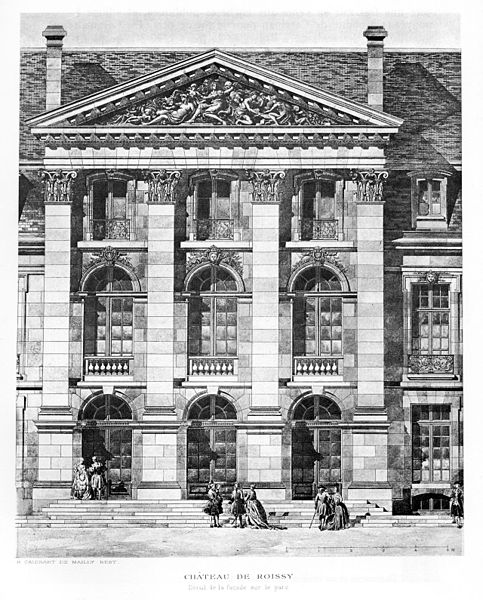 Le château des Caramans, dit aussi château de Roissy, se trouvait à Roissy-en-France (Val-d'Oise). Plusieurs résidences se sont succédé sur le site depuis le Moyen Âge. Pendant les XVIe et XVIIe siècles, la seigneurie appartenait à la famille de Mesmes. Un château flanqué de tours rondes, attesté au début du XVe siècle, fut démoli à la fin du XVIIe siècle. Au début du XVIIIe siècle un nouvel édifice fut élevé d'après les plans de l'architecte suédois Nicodème Tessin ; certaines sources situent la construction entre 1703 et 1709 par Claude de Mesme, d'autres indiquent qu'elle fut commencée pour Jean-Antoine de Mesmes à partir de 1704. En 1715, Piganiol de la Force signale un beau jardin et un grand parc, sans eaux. À partir de 1730, le marquis de Caraman semble avoir complété l'ensemble. Le château était précédé d'une avant-cour bordée de deux bâtiments à avant-corps : à l'est, l'orangerie qui servit d'habitation jusqu'au début du XXe siècle et dont subsistent quelques vestiges ; à l'ouest, des écuries détruites en 1835 après avoir abrité une sucrerie. Le parc, de tracé régulier, fut enrichi au XVIIIe siècle de bosquets à l'anglaise dont il ne reste que quelques éléments végétaux ; il est connu grâce aux plans gravés par Lerouge. Le château fut détruit pendant la Révolution selon certains témoignages (1794), d'autres sources évoquent une disparition au début du XIXe siècle. Des vestiges subsistent : le mur oriental et la porte sud de l'orangerie, ainsi que des murs de façade conservés à mi-hauteur. Les moellons irréguliers affleurent aujourd'hui et des pilastres en pierre appareillée scandent encore la façade. La porte présente un arc en plein cintre retombant sur de courts bandeaux plats et une moulure plate doublée ; le pignon oriental de l'orangerie est précédé d'un avant-corps cantonné de faux chaînages en bossage. Le corps central, surmonté d'un fronton triangulaire, porte un tympan sculpté avec des figures féminines autour d'un vase de fleurs et de fruits, et, sous le larmier, un bas-relief montrant deux chérubins tenant des grappes de raisin autour d'une conque. La clé de voûte de l'arc en anse de panier est ornée d'une griffe et de feuilles de vigne ; cet ensemble sculptural, daté de 1703–1709, est attribué à René Chauveau. Un bas-relief provenant du pignon ouest est aujourd'hui conservé dans une propriété privée rue de Paris ; il représente des armes autrefois attribuées par erreur à Claude de Mesmes. Le site est inscrit au titre des monuments historiques depuis le 21 octobre 1925.