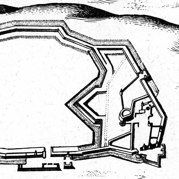 L'hôpital, implanté en avant des bâtiments du château et adossé au rempart, présente un plan en U classique, avec une cour intérieure ornée de parterres, d'un bassin et d'un puits, fermée par un portail et une grille. Au rez‑de‑chaussée, des arcades en plein cintre forment une galerie couverte ; de grandes fenêtres éclairent l'étage. L'avant‑corps central montre trois arcades et trois baies en plein cintre surmontées d'un fronton triangulaire portant une horloge, l'ensemble étant coiffé d'une arcade avec cloche et d'une croix en fer forgé. Un grand escalier mène à l'étage, complété par deux petits escaliers en bois aux extrémités des ailes ; la chapelle, accessible depuis l'angle sud‑ouest de la galerie, conserve une abside semi‑circulaire visible du côté des remparts. Une vaste galerie voûtée au sous‑sol, qui abritait les ateliers où travaillaient les nécessiteux, fut ensuite affectée à des locaux techniques et de service, témoignant de l'attention portée à la fonctionnalité propre au siècle des Lumières. Le site associe ainsi l'intérêt des vestiges du château fort et celui de l'hôpital‑manufacture, édifice d'un grand intérêt architectural et d'une vocation sociale marquée.