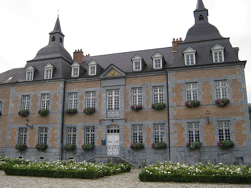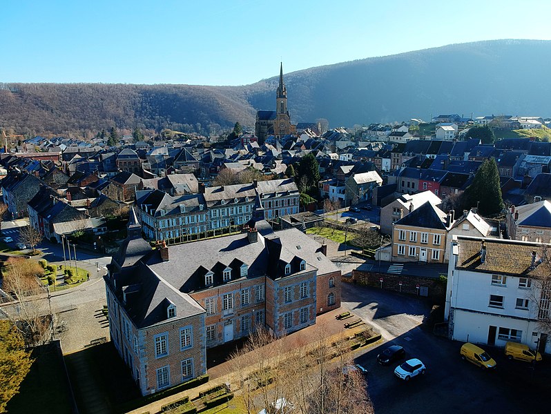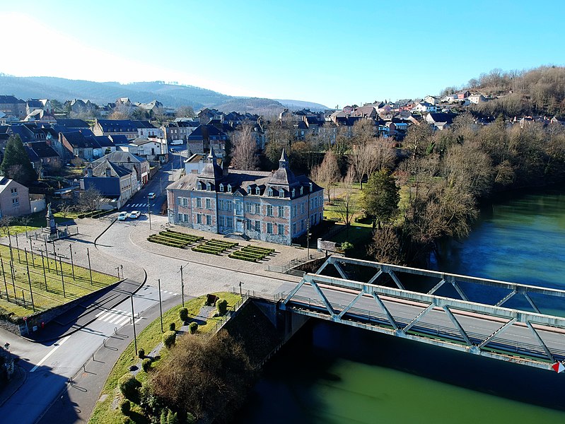 Le château des comtes de Bryas se situe à Fumay, dans le département des Ardennes. Sa façade principale, en briques, est rythmée par des chaînes en pierre bleue et la travée centrale est coiffée d'un fronton triangulaire. Les pavillons latéraux sont surmontés de toits en tulipe renversée, dotés de dômes à pans, de lanternons aveugles et de flèches octogonales. Le toit est couvert d'ardoises violettes de Fumay. Le bâtiment présente des façades orientées nord-est et sud-ouest. Un chemin, accessible en descendant les marches à droite du château, permettait aux mineurs d'atteindre l'ardoisière du Moulin Sainte-Anne ; en le longeant, on aperçoit, de l'autre côté de la Meuse, les murs de soutènement de l'ardoisière Belle-Rose. Le château occupe l'emplacement d'un ancien fort rasé sous Louis XIII ; une salle voûtée subsiste sous le terre-plein actuel. Il a été construit par la famille de Bryas, seigneur de Fumay, dans le quatrième quart du XVIIe siècle. En 1815, il est vendu à un entrepreneur local qui y installe une fabrique de céruse. La Société ardoisière du Moulin Sainte-Anne l'acquiert en 1835 et en fait son siège jusqu'à la vente des biens de la société en 1946. La commune de Fumay devient propriétaire en 1952 et le bâtiment abrite alors des services communaux, notamment la poste et la perception. L'édifice est inscrit au titre des monuments historiques en 1972.