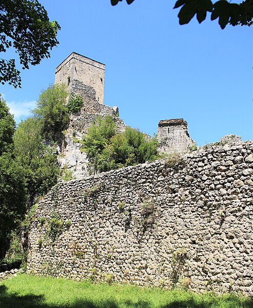 Le château des comtes de Comminges, implanté sur la commune de Bramevaque dans les Hautes-Pyrénées (Occitanie), occupe un promontoire à environ 150 mètres au sud du village, en Barousse. Édifié aux XIIe et XIIIe siècles, il présente aujourd’hui des vestiges dont le donjon conserve encore une silhouette imposante, tandis que l’enceinte et la chapelle sont en ruine. Une première enceinte s’ouvre sur une seconde qui conserve les restes d’une grande construction terminée par deux pignons. Contre cette seconde enceinte se trouvent les vestiges d’une chapelle romane dont l’abside a perdu sa voûte en cul-de-four ; la voûte en berceau de la nef subsiste, constituée d’un blocage de pierres plates au-dessus d’une archivolte ornée d’arcatures, de damiers et de billettes caractéristiques de l’époque romane. Les restes du donjon, au sommet du massif et au centre d’une terrasse, se composent de deux salles carrées voûtées en berceau et superposées. Un escalier, réparti en sept volées dans l’épaisseur du mur, s’élève autour de ces salles et débouche sur la terrasse par une porte en plein cintre. Chaque salle est éclairée par une meurtrière et aménagée d’une loge dans le mur ainsi que d’un évier. La terrasse sommitale existe encore, mais son parapet a disparu. Les ruines (donjon, enceinte et chapelle) sont inscrites au titre des monuments historiques depuis le 13 décembre 1950.